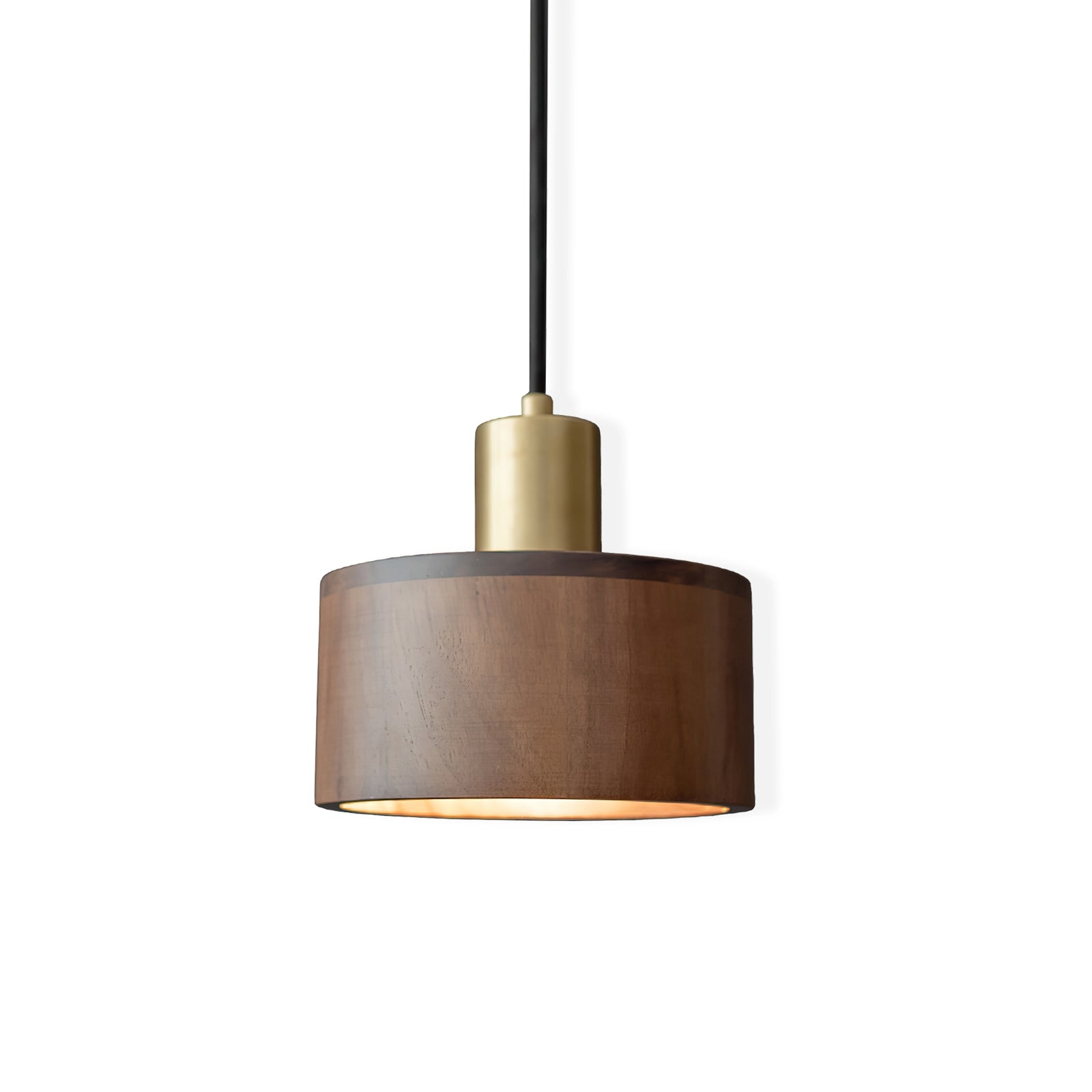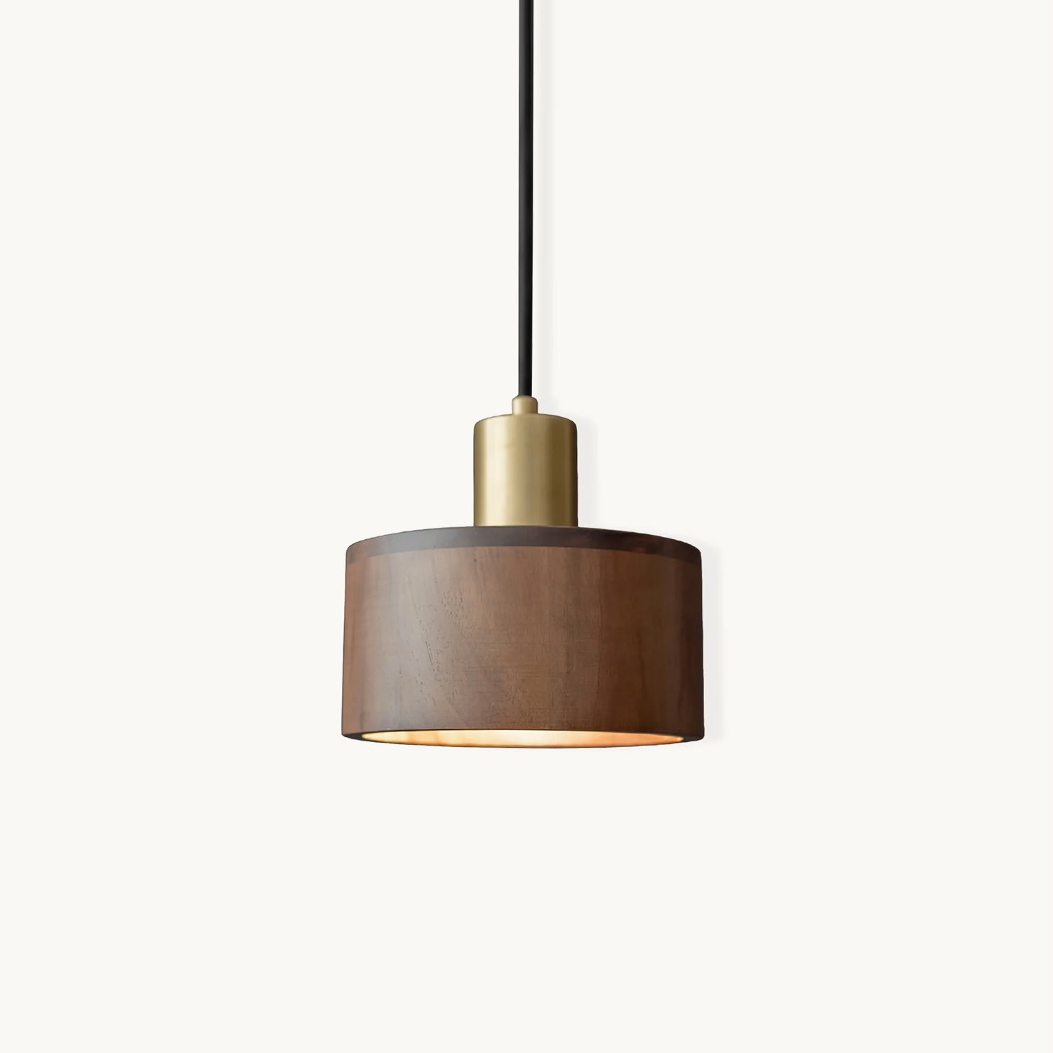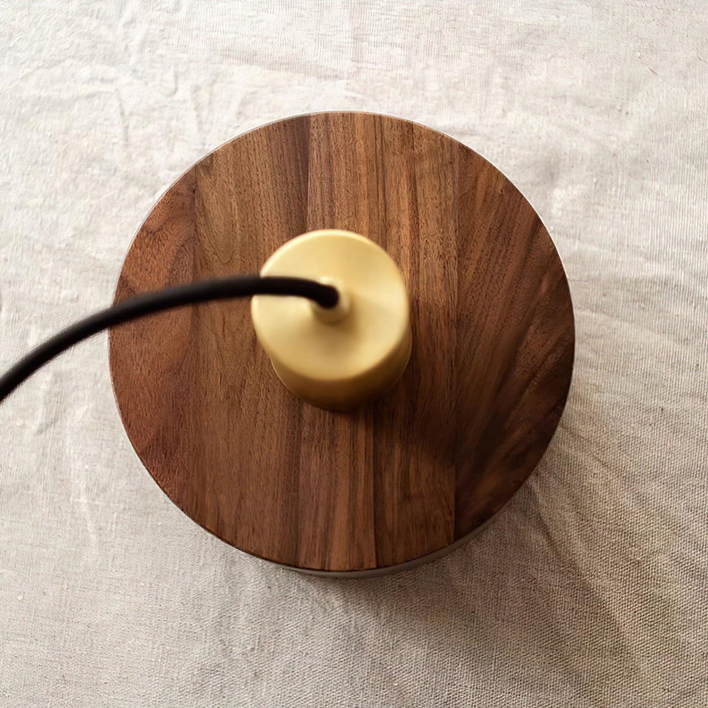 Elegant, sustainably sourced walnut wood layers shed warm light all around, wrapping the bulb like a veil and letting the organic woodgrain take center stage. The plywood internal structure delicately supports the simple wooden layers, fixed by brass screws, creating a soft cylindrical pool of light. Light and elegant, this lamp adds style to tranquil retreats such as bedrooms and living spaces, infusing the beauty of nature and creating a sense of harmony.
