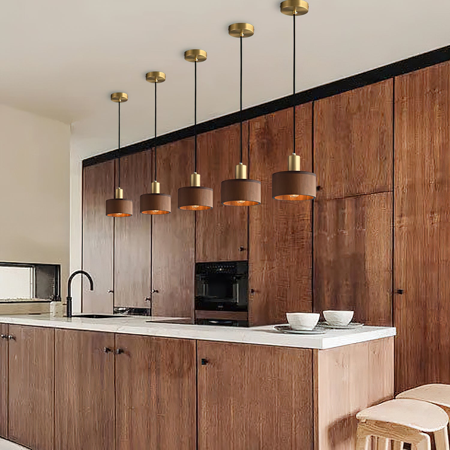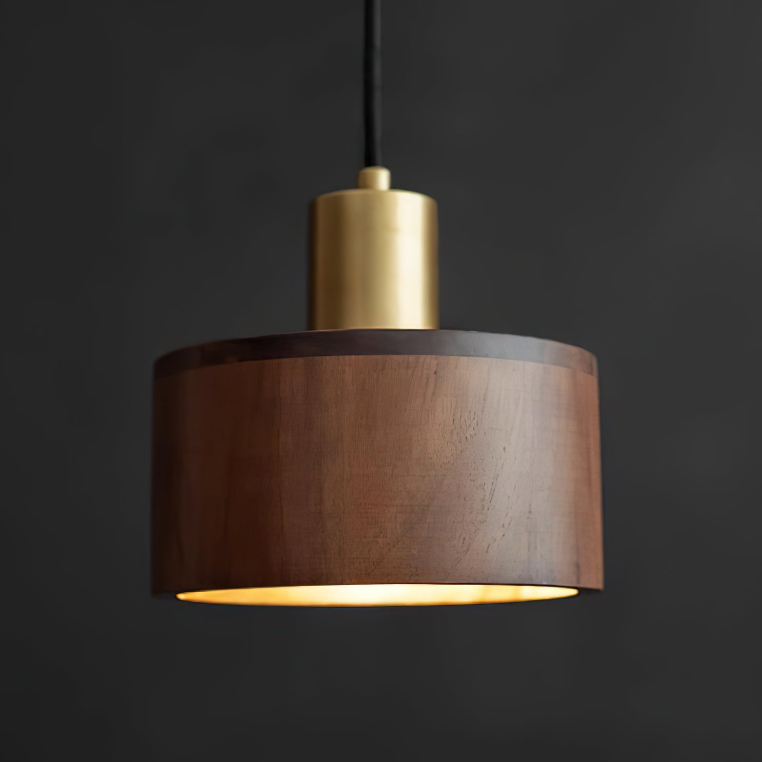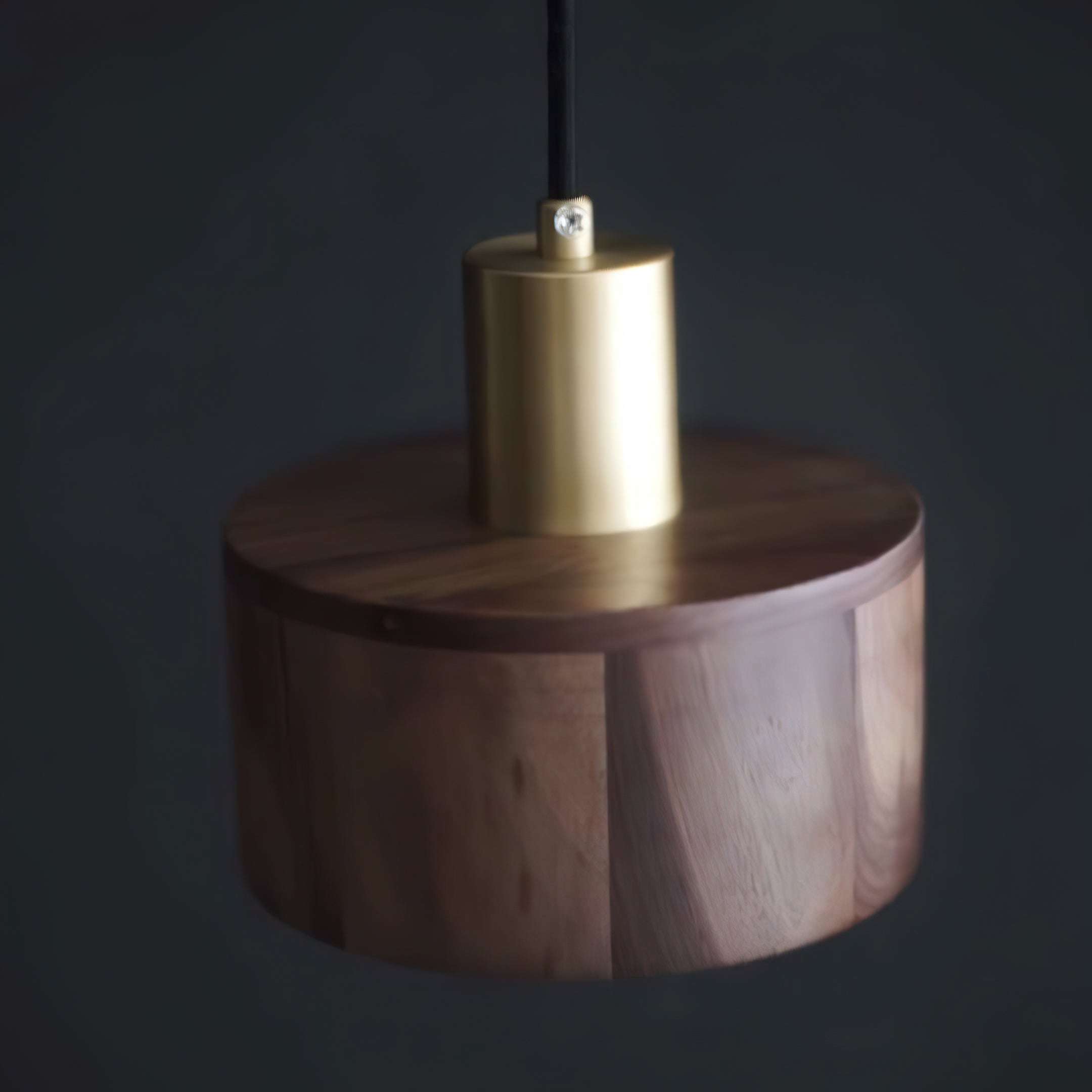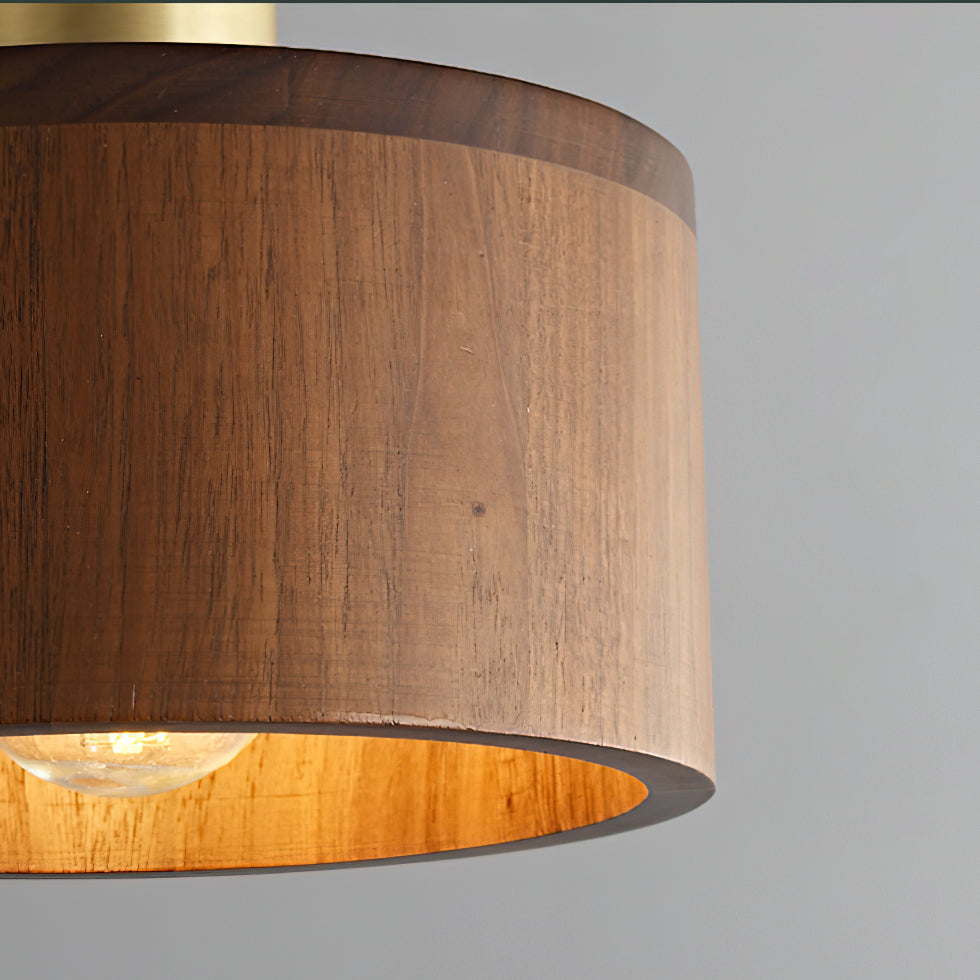 Elegant, sustainably sourced walnut wood layers shed warm light all around, wrapping the bulb like a veil and letting the organic woodgrain take center stage. The plywood internal structure delicately supports the simple wooden layers, fixed by brass screws, creating a soft cylindrical pool of light. Light and elegant, this lamp adds style to tranquil retreats such as bedrooms and living spaces, infusing the beauty of nature and creating a sense of harmony.