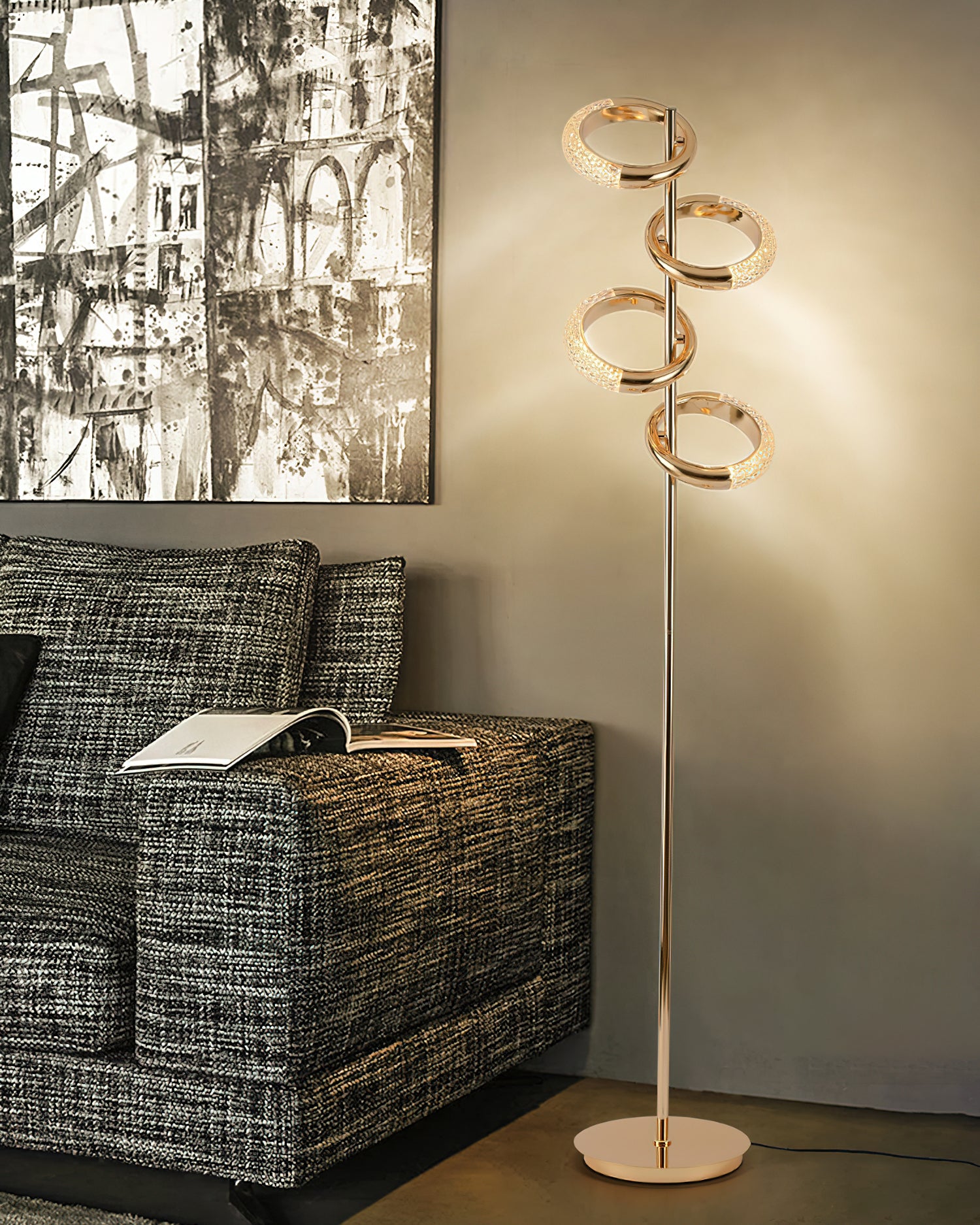 Brighten up any room with our Shiny Earrings Floor Lamp. It's versatile adjustable angles and durable hardware gold lamp body make it perfect for customizing any space. Easily rotate it in every direction to get the perfect angle. Plus, its creative ring shape diamond pattern reflects bright light and shadow for a modern touch. Experience quality life with this floor lamp!