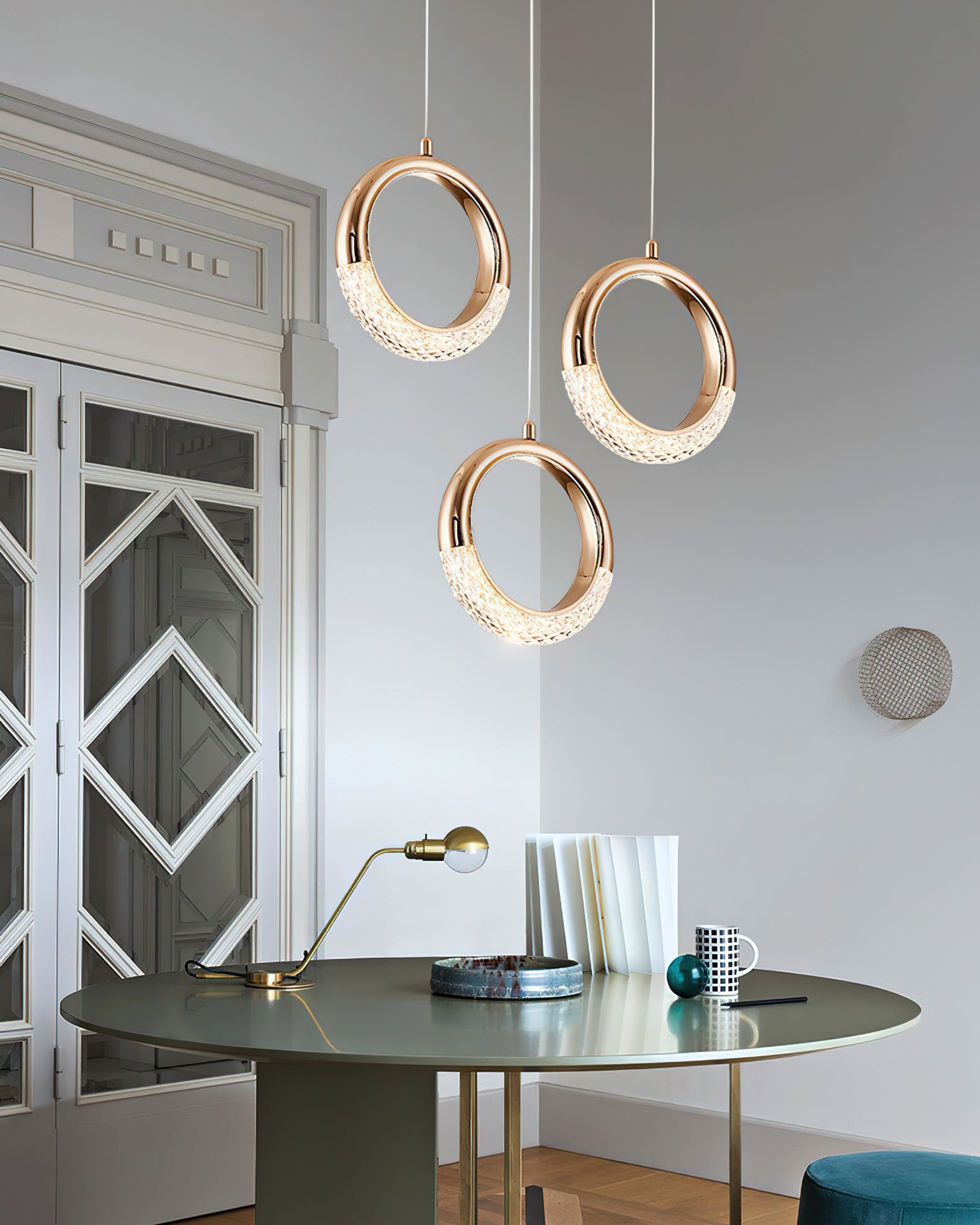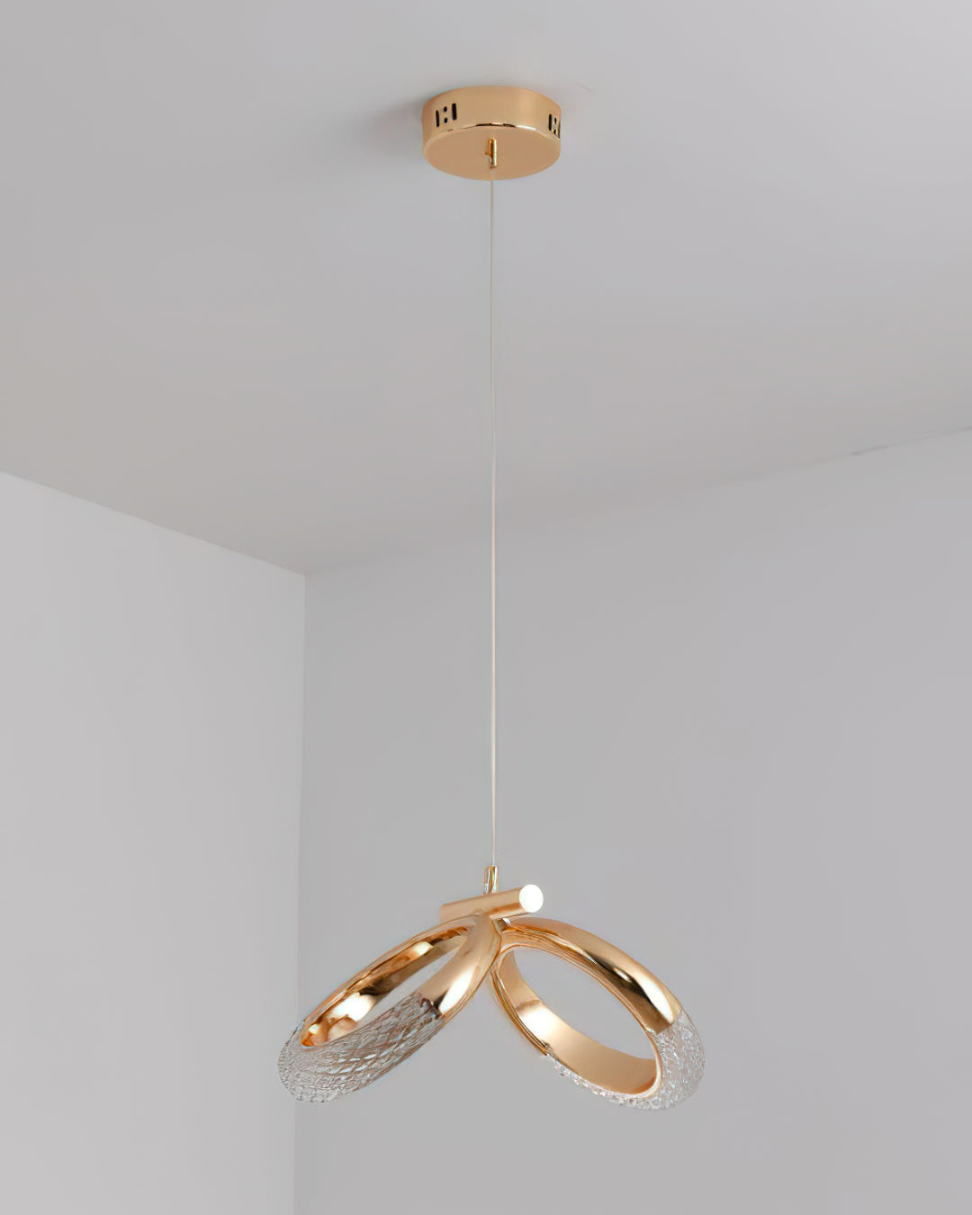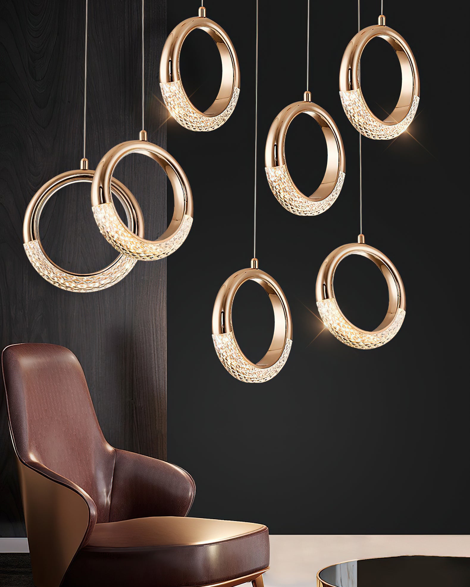 Illuminate your home with these beautiful Shiny Earrings Pendant Lamps! Crafted from a combination of solid and stable hardware and nano-electroplated gold, these lamps have a diamond pattern that reflects bright light and shadow. Enjoy a quality, fashionable life with these creative, laser-engraved rings!