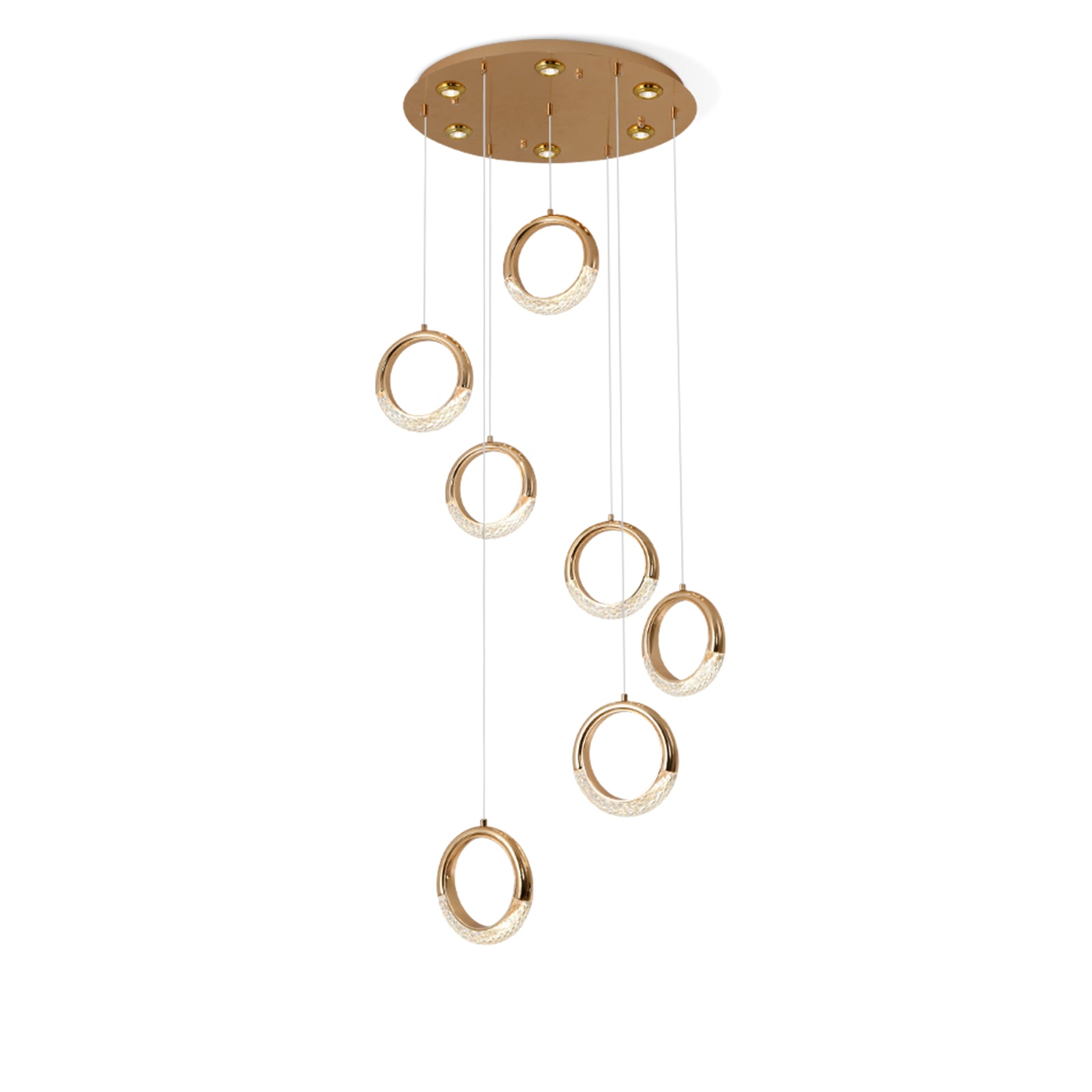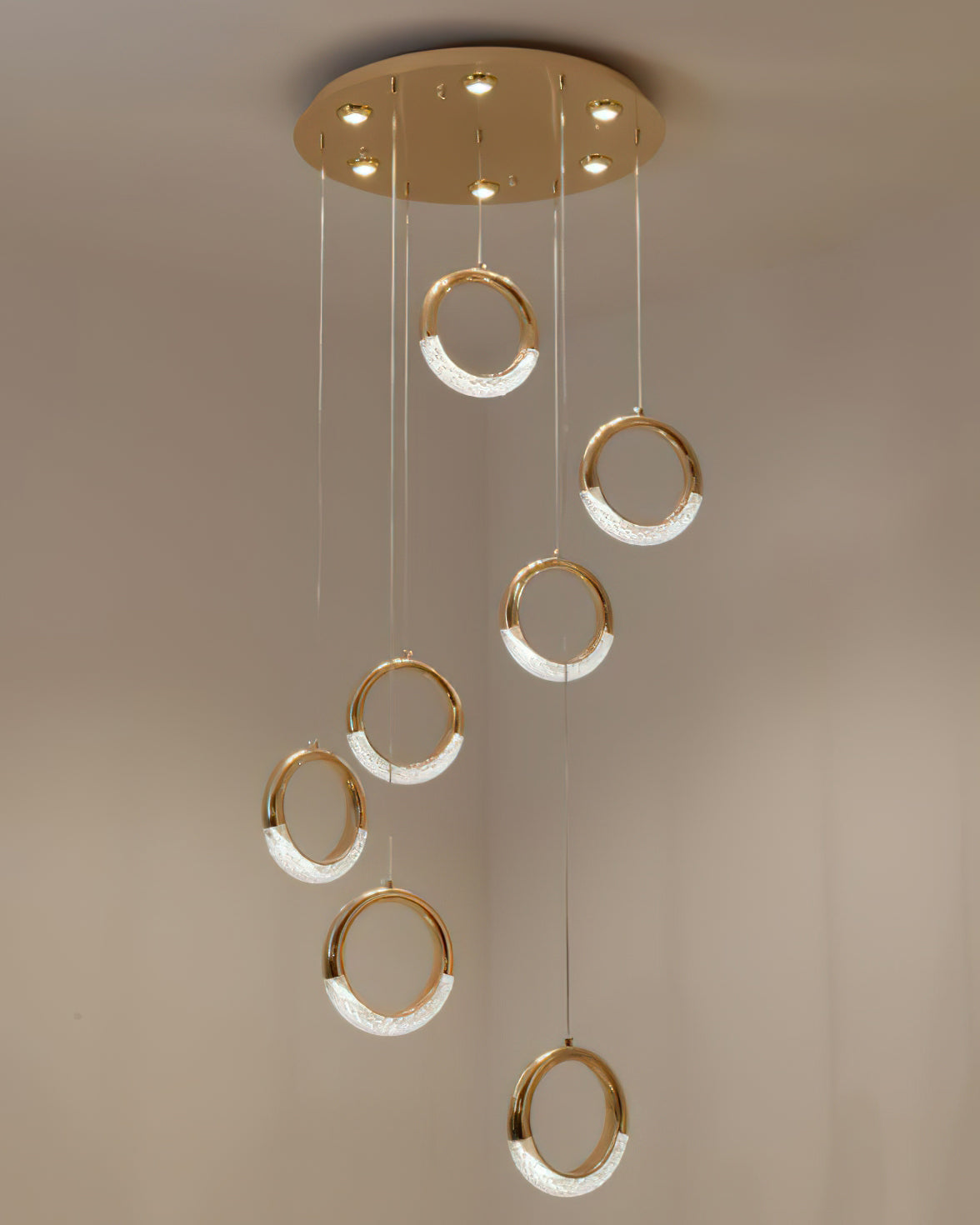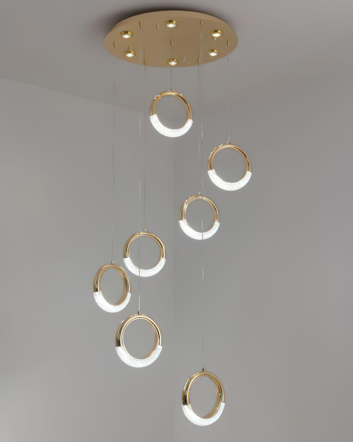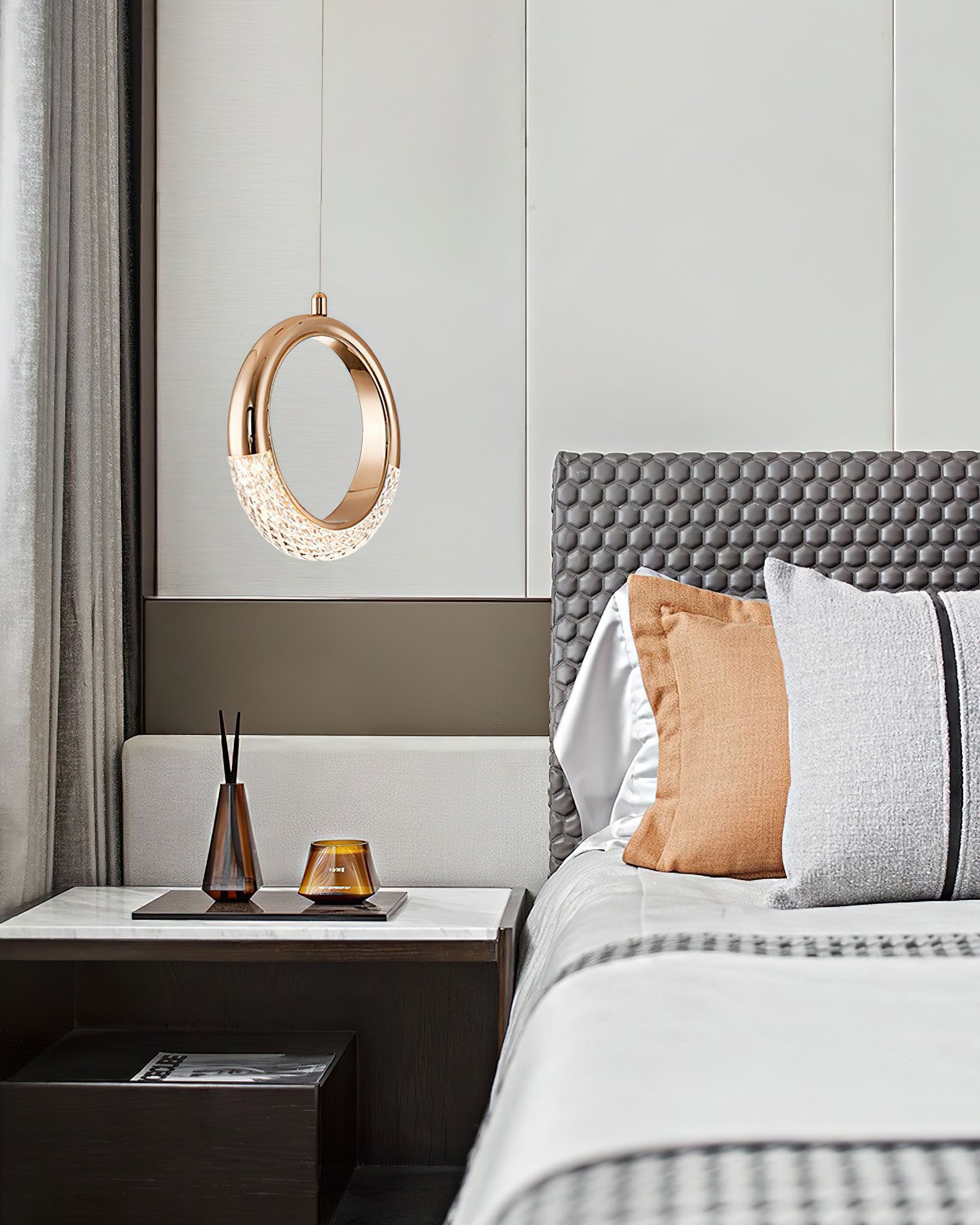 Illuminate your home with these beautiful Shiny Earrings Pendant Lamps! Crafted from a combination of solid and stable hardware and nano-electroplated gold, these lamps have a diamond pattern that reflects bright light and shadow. Enjoy a quality, fashionable life with these creative, laser-engraved rings!