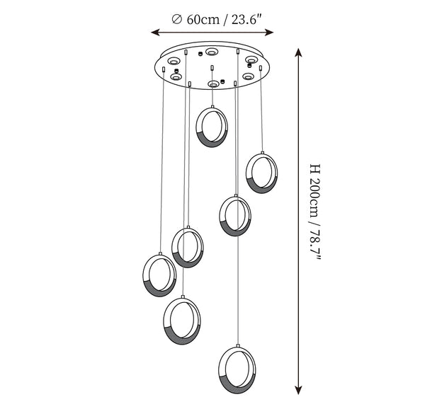 - 7Heads Size: Dia 60cm x H 200cm / ∅ 23.6″ x H 78.7″