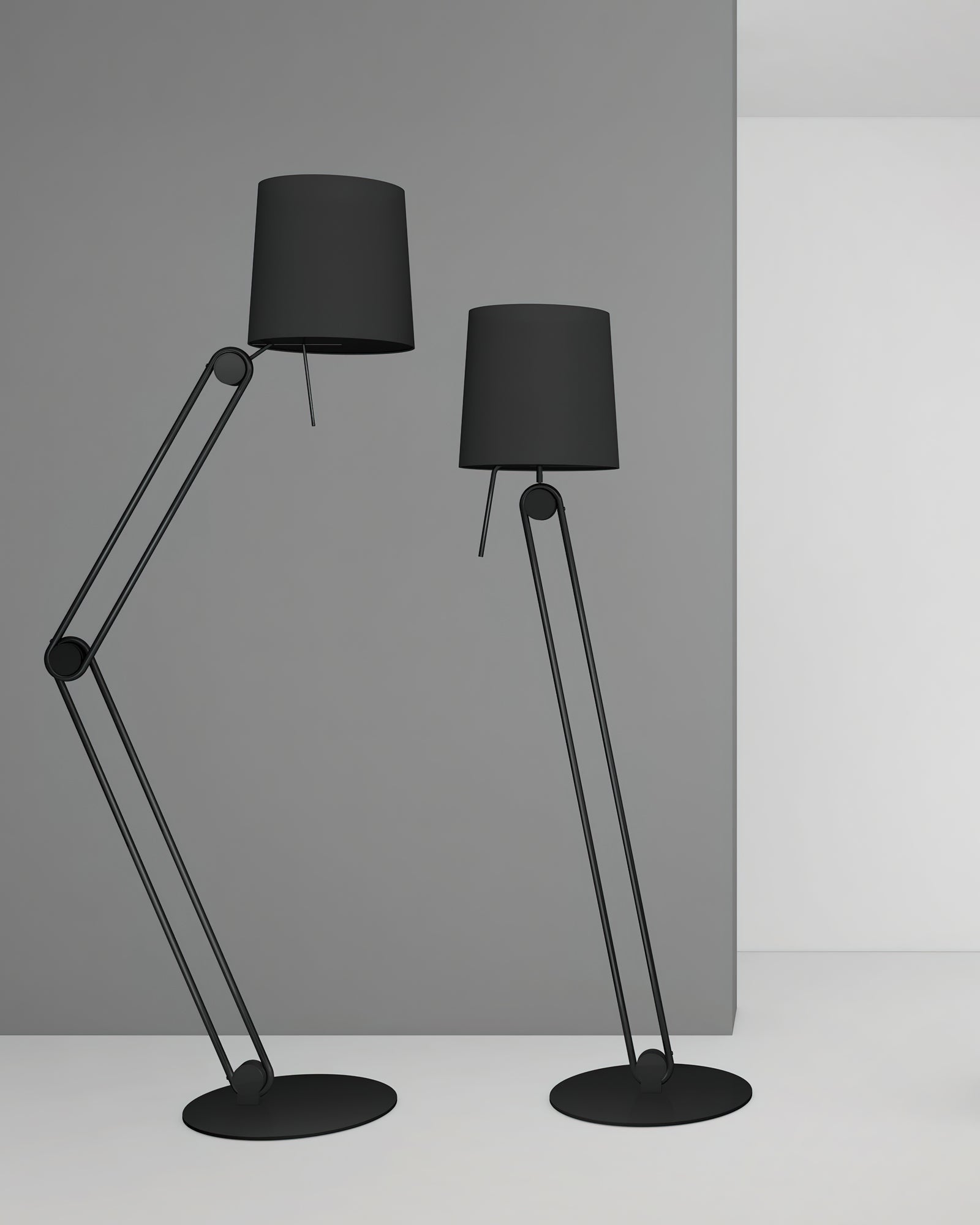 The Sibaca Floor Lamp offers a modern feel to any space. With its adjustable structure and fabric lampshade - black on the outside and white on the inside - it produces a diffused light perfect for any room. It's an ideal choice for creating a warm and cozy ambiance.