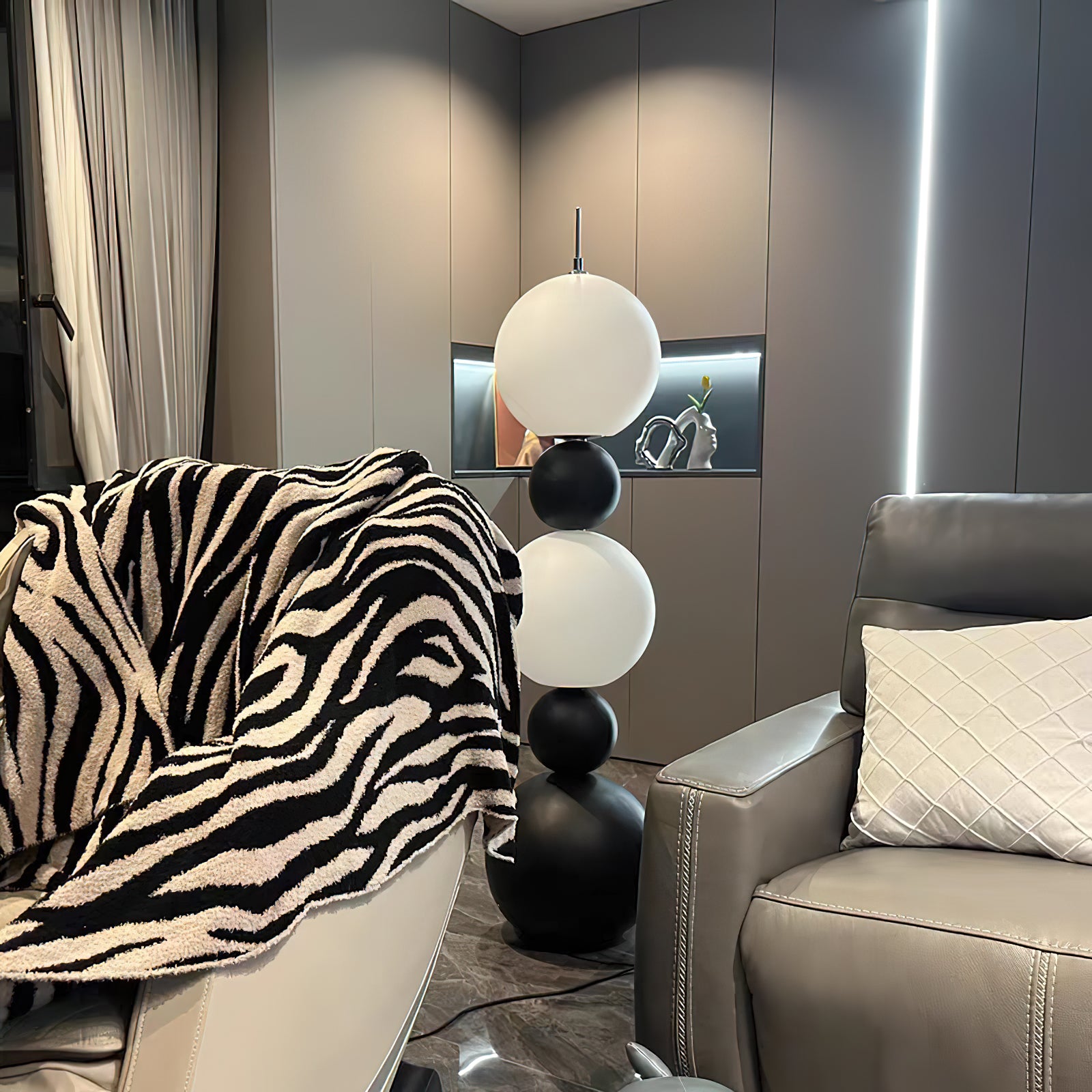 Brighten up your room with this modern minimalist Gourd Floor Lamp, a classic style in the shape of a traditional gourd paired with a classic black and white color scheme that radiates a warm glow for a timeless and sophisticated look. The lamp is made of PE rolling plastic and resin. Its elegant design is perfect for a bedroom, living room or corner. Provides reliable lighting for any room for years to come.