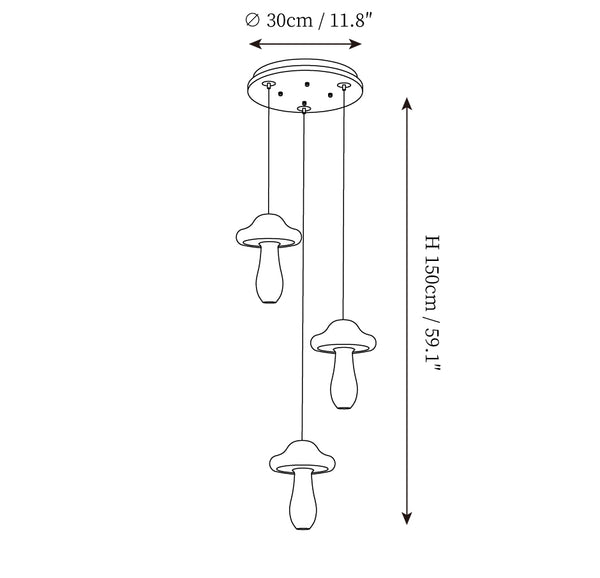- 3Heads Size: Dia 30cm x H 150cm / ∅ 11.8″ x H 59.1″