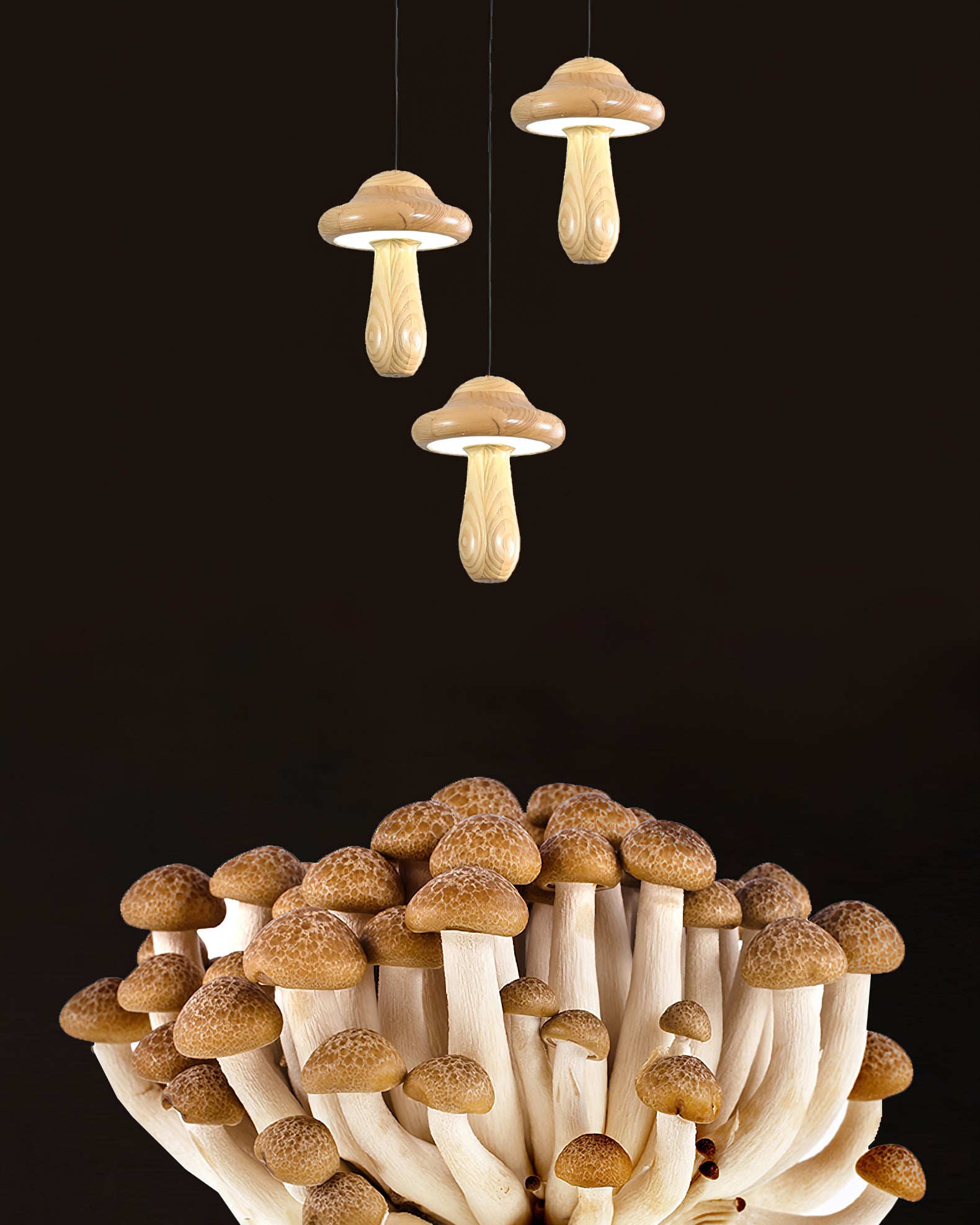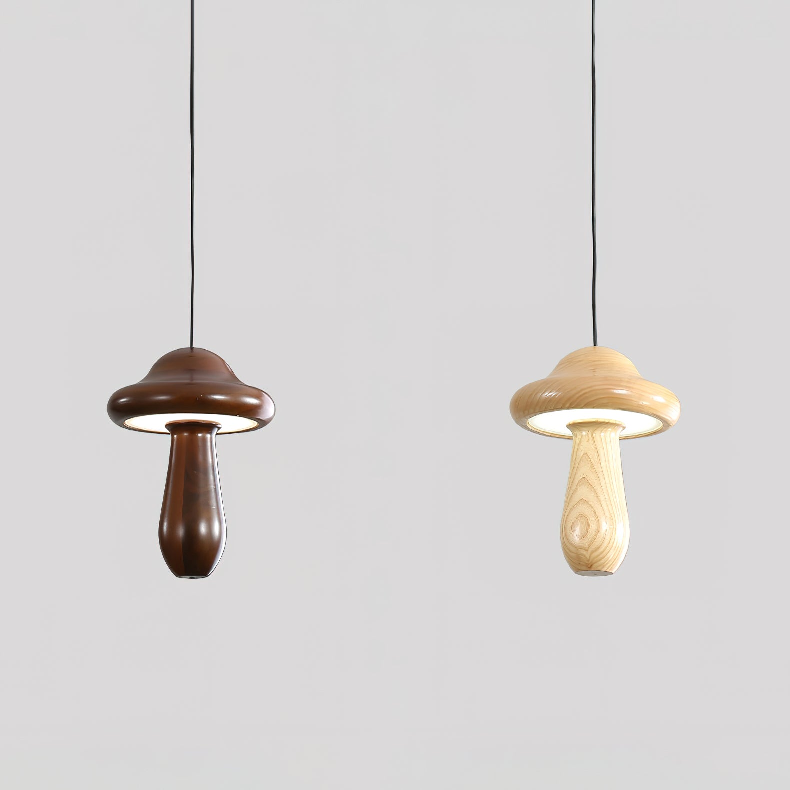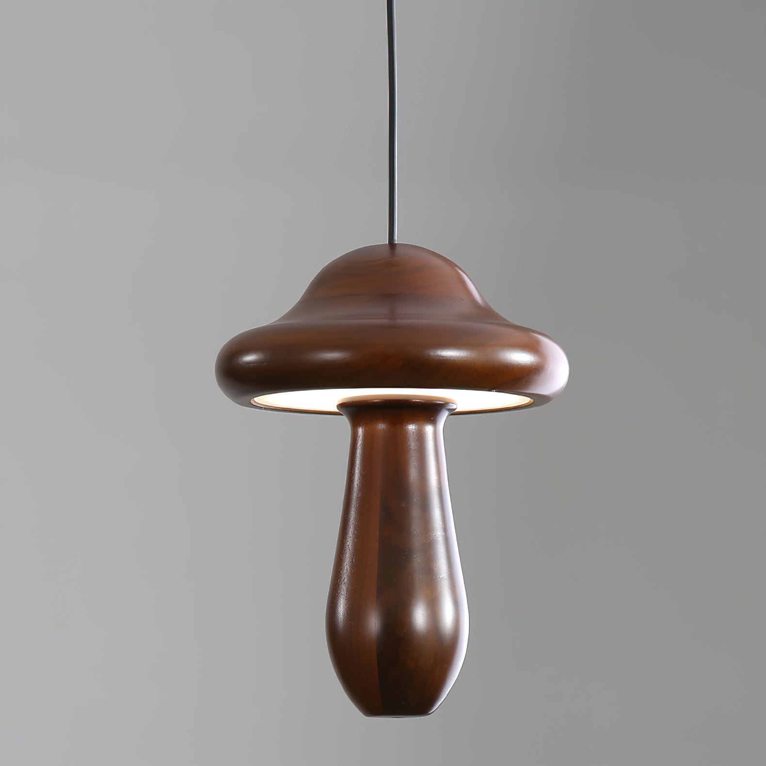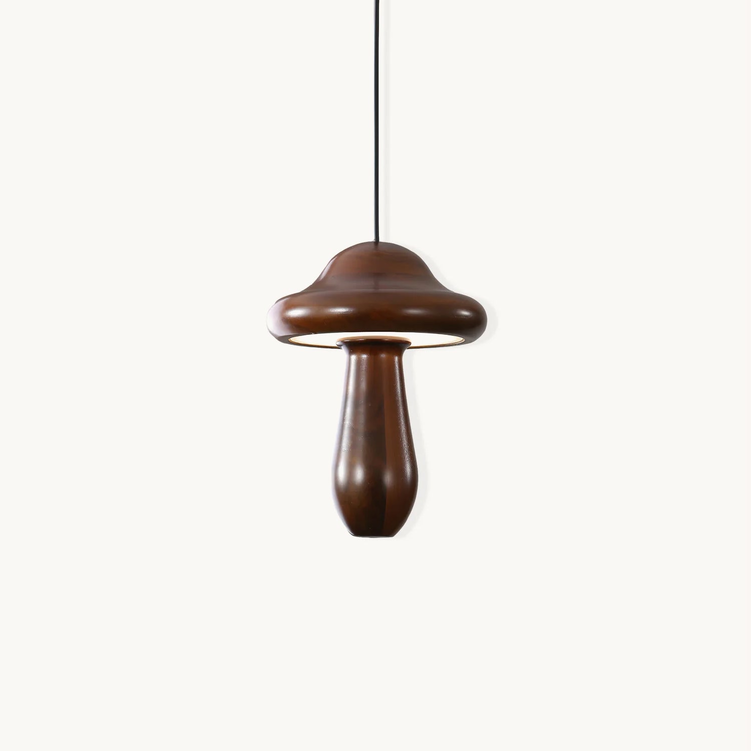 Introducing the Small Mushroom Pendant Lamp—a sophisticated addition to your home. Crafted with a minimalist geometric design, this timeless piece combines ash wood in a classic black walnut finish and subtle, lifelike wood texture embellishments for an elegant and exclusive look. Enjoy a touch of nature with its natural log base, and anti-corrosive paint for lasting durability. Perfect for any room, the Small Mushroom Pendant Lamp is the perfect blend of beauty and sophistication.