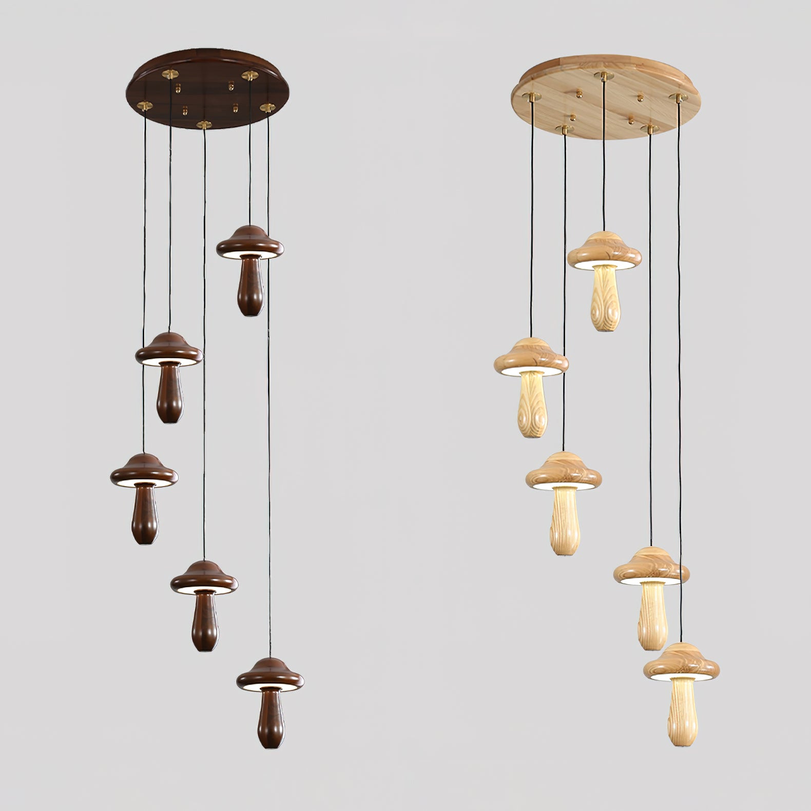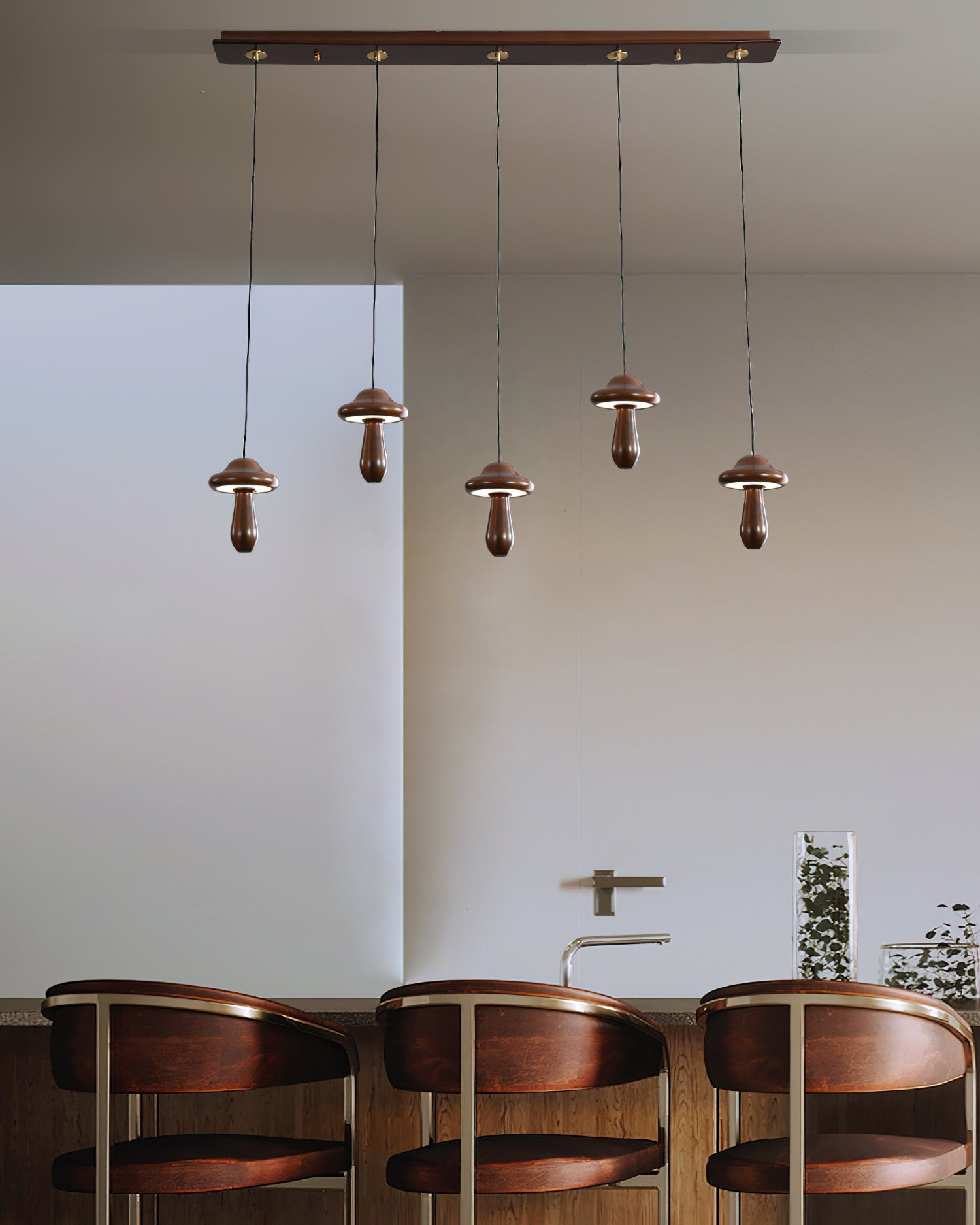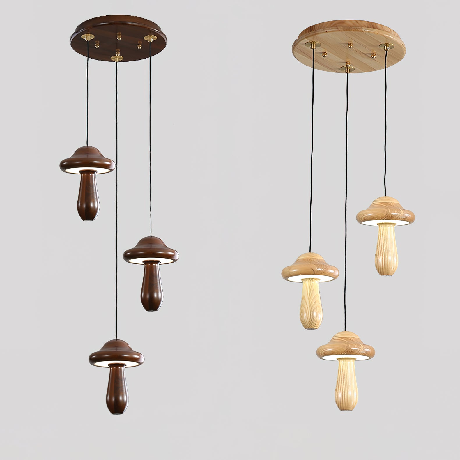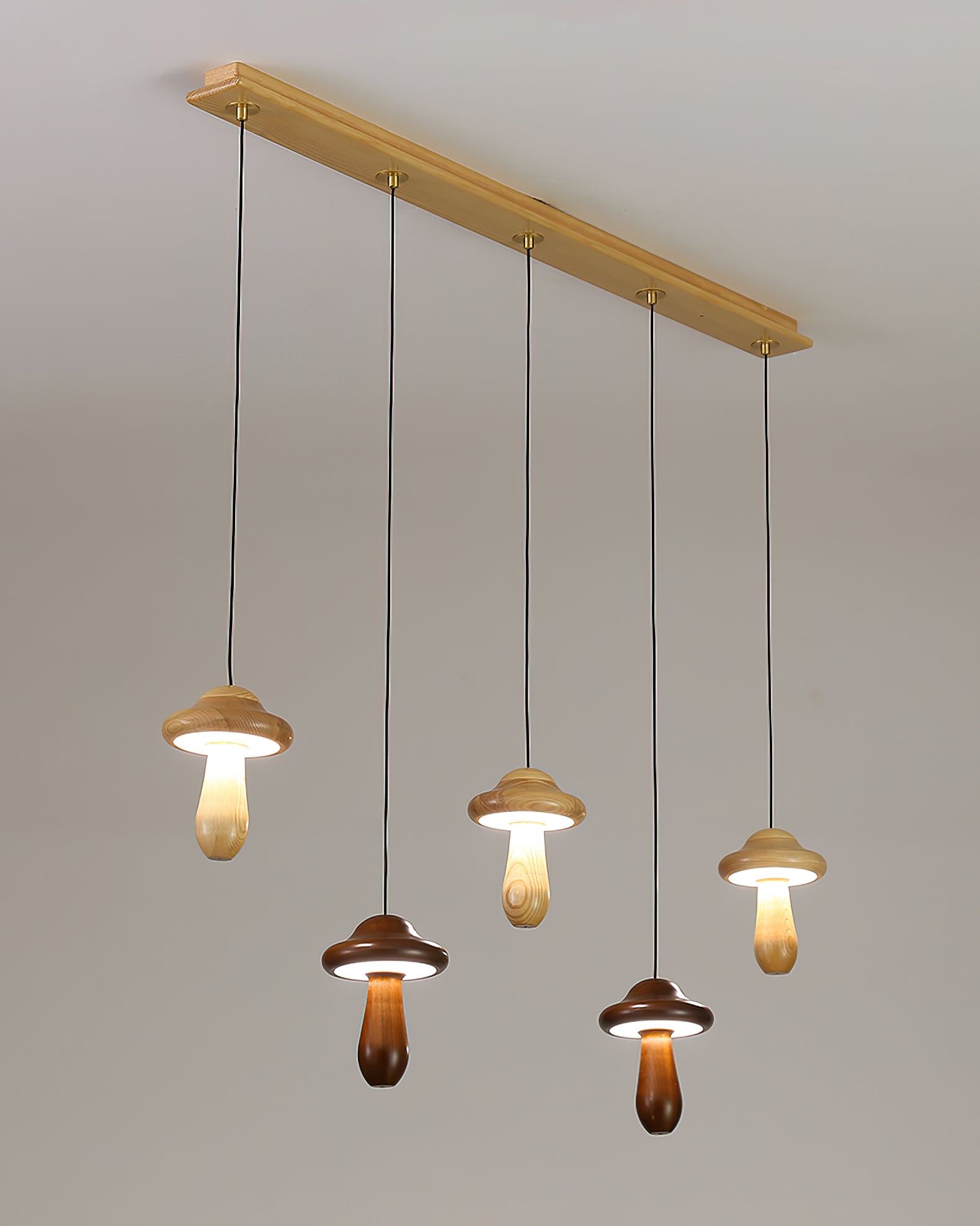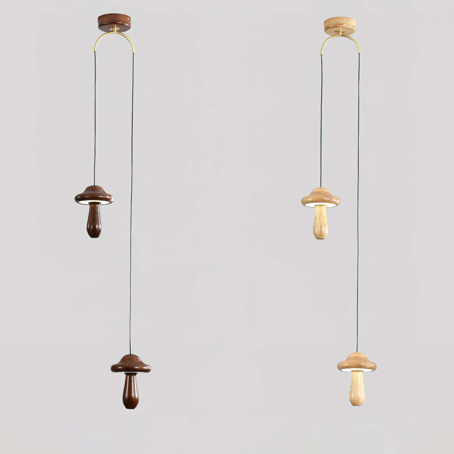 Introducing the Small Mushroom Pendant Lamp—a sophisticated addition to your home. Crafted with a minimalist geometric design, this timeless piece combines ash wood in a classic black walnut finish and subtle, lifelike wood texture embellishments for an elegant and exclusive look. Enjoy a touch of nature with its natural log base, and anti-corrosive paint for lasting durability. Perfect for any room, the Small Mushroom Pendant Lamp is the perfect blend of beauty and sophistication.