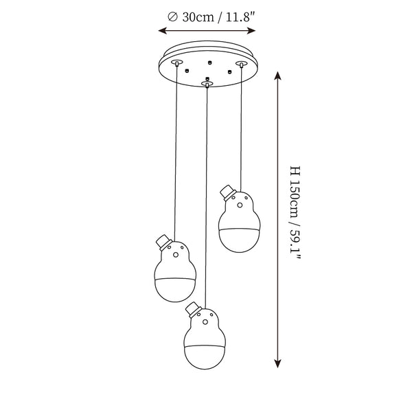 - Model A 3Heads Size: Dia 30cm x H 150cm / ∅ 11.8″ x H 59.1″