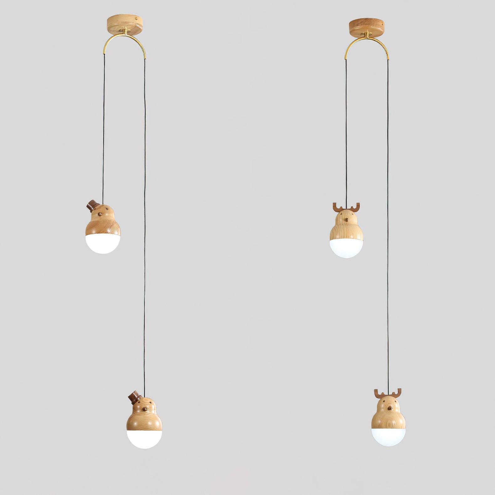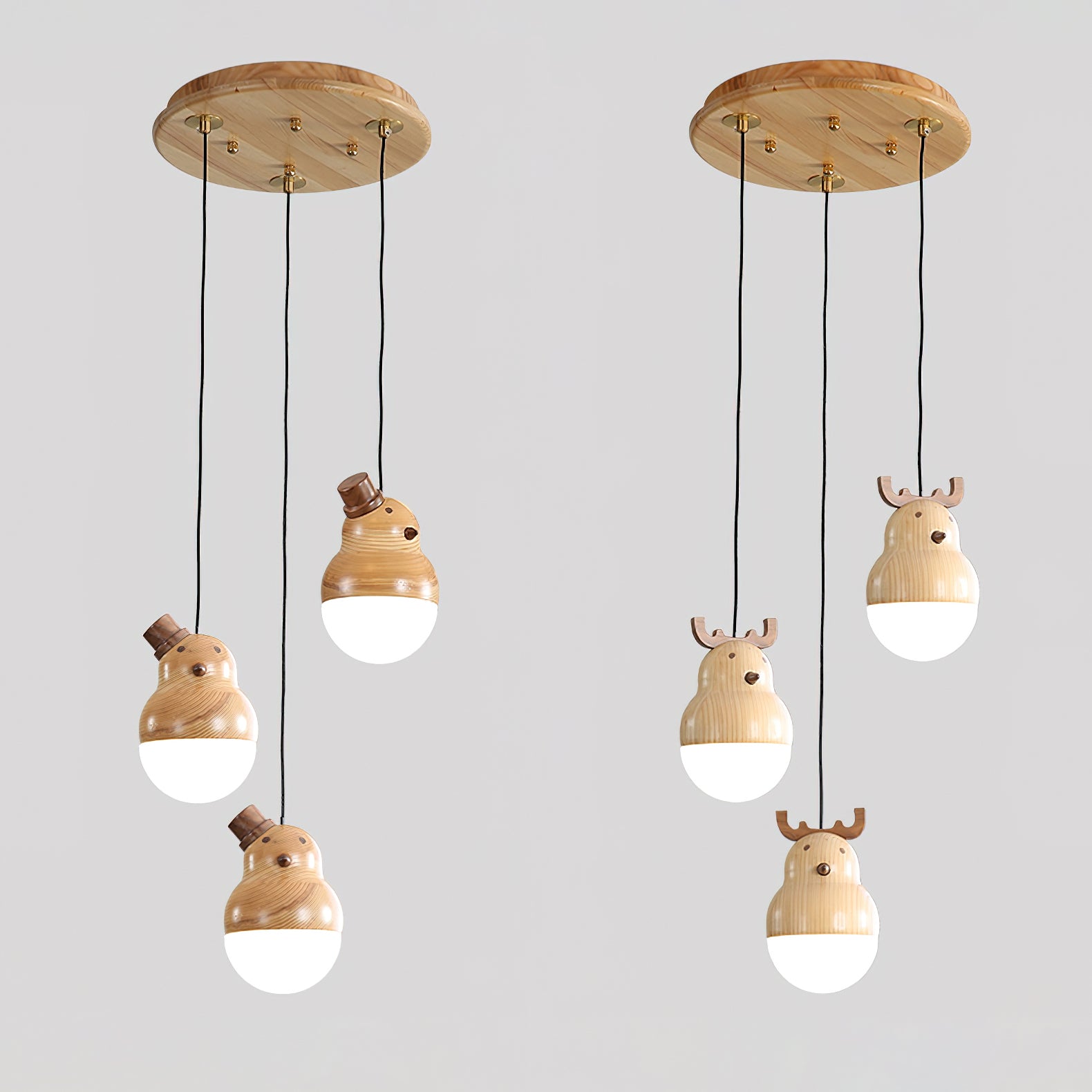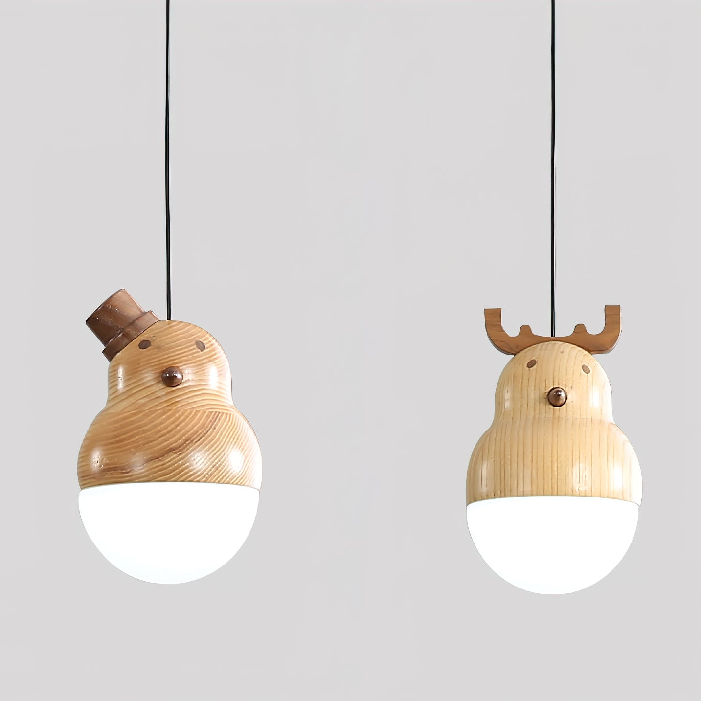 A perfect addition to your home, this Snowman And Deer pendant lamp stands out with its minimalistic geometric design. Crafted from ash wood and black walnut for corrosion-resistant longevity, it is adorned with intricate lifelike wood texture embellishments. Appearing as if it originated in the mountains and forests, this elegant piece adds a touch of nature to your living space.
