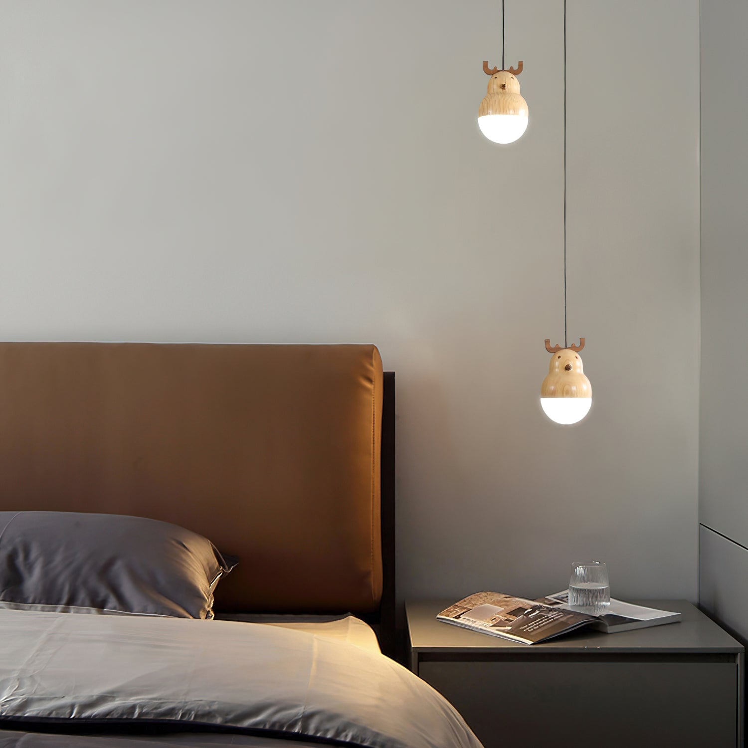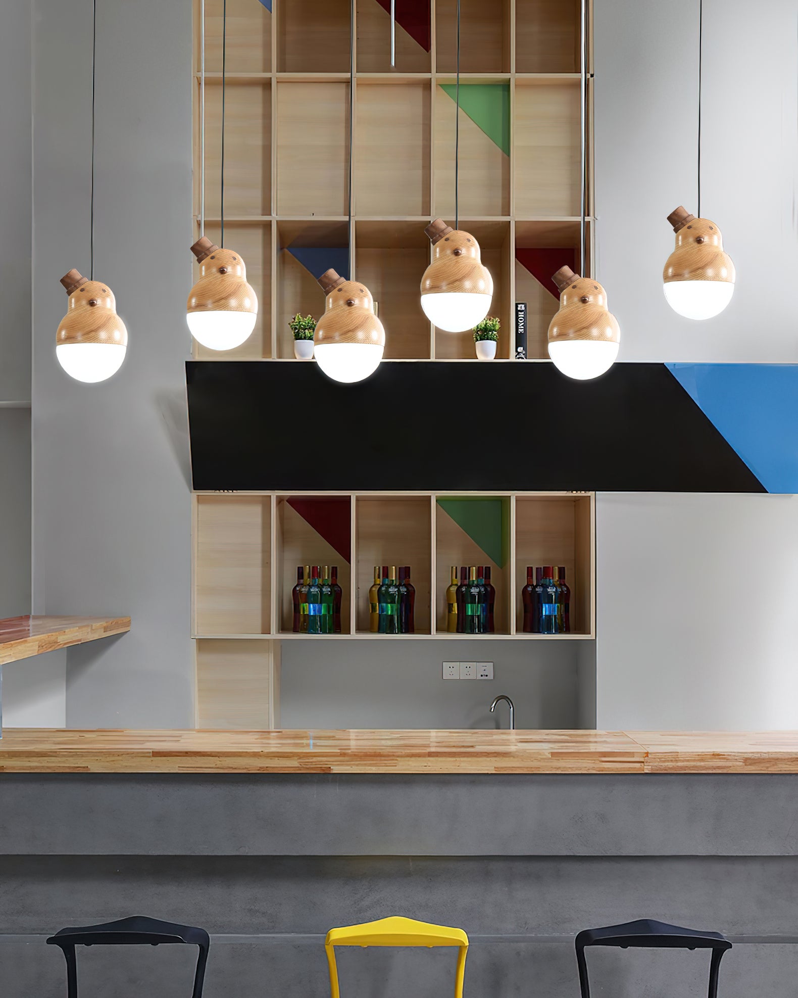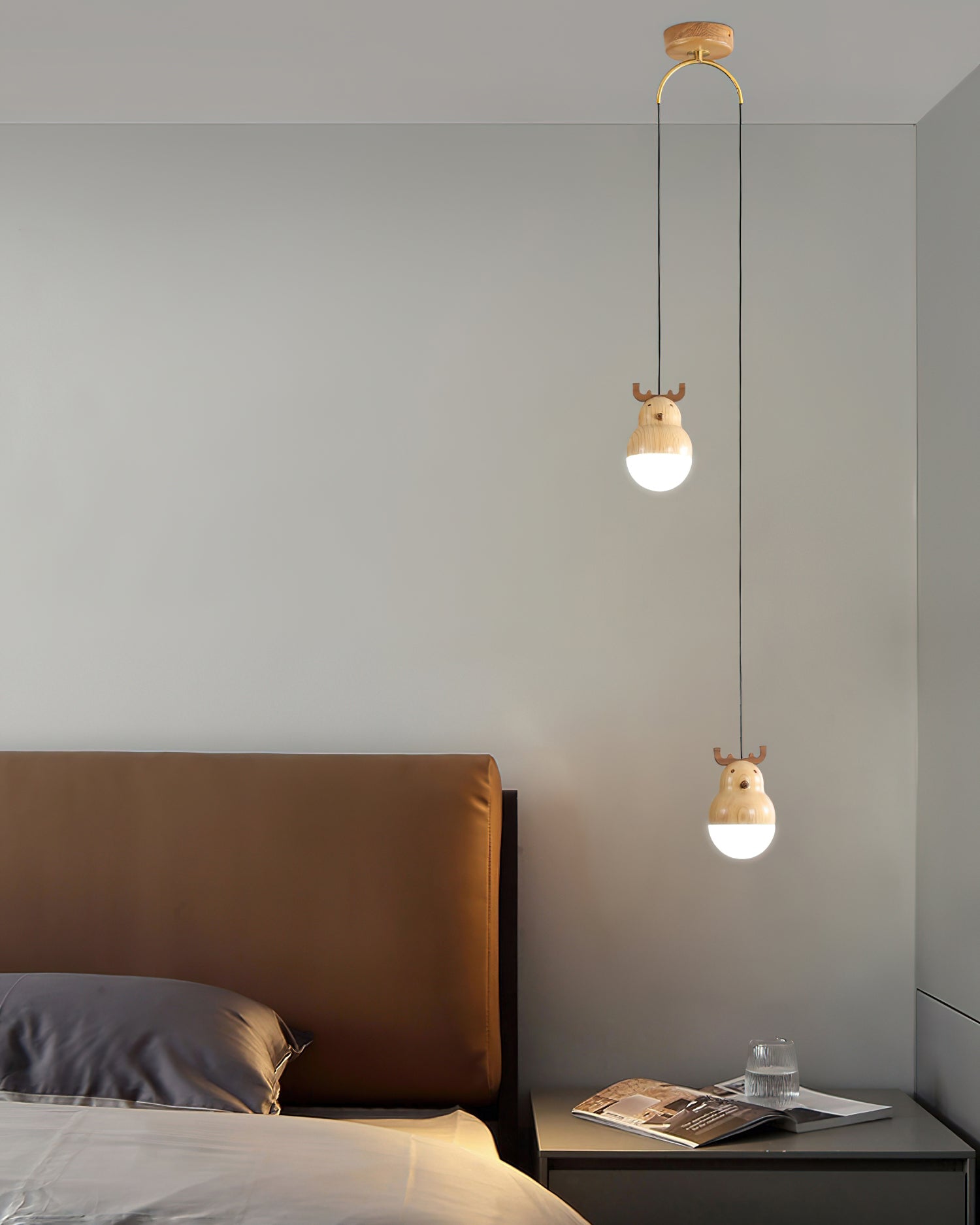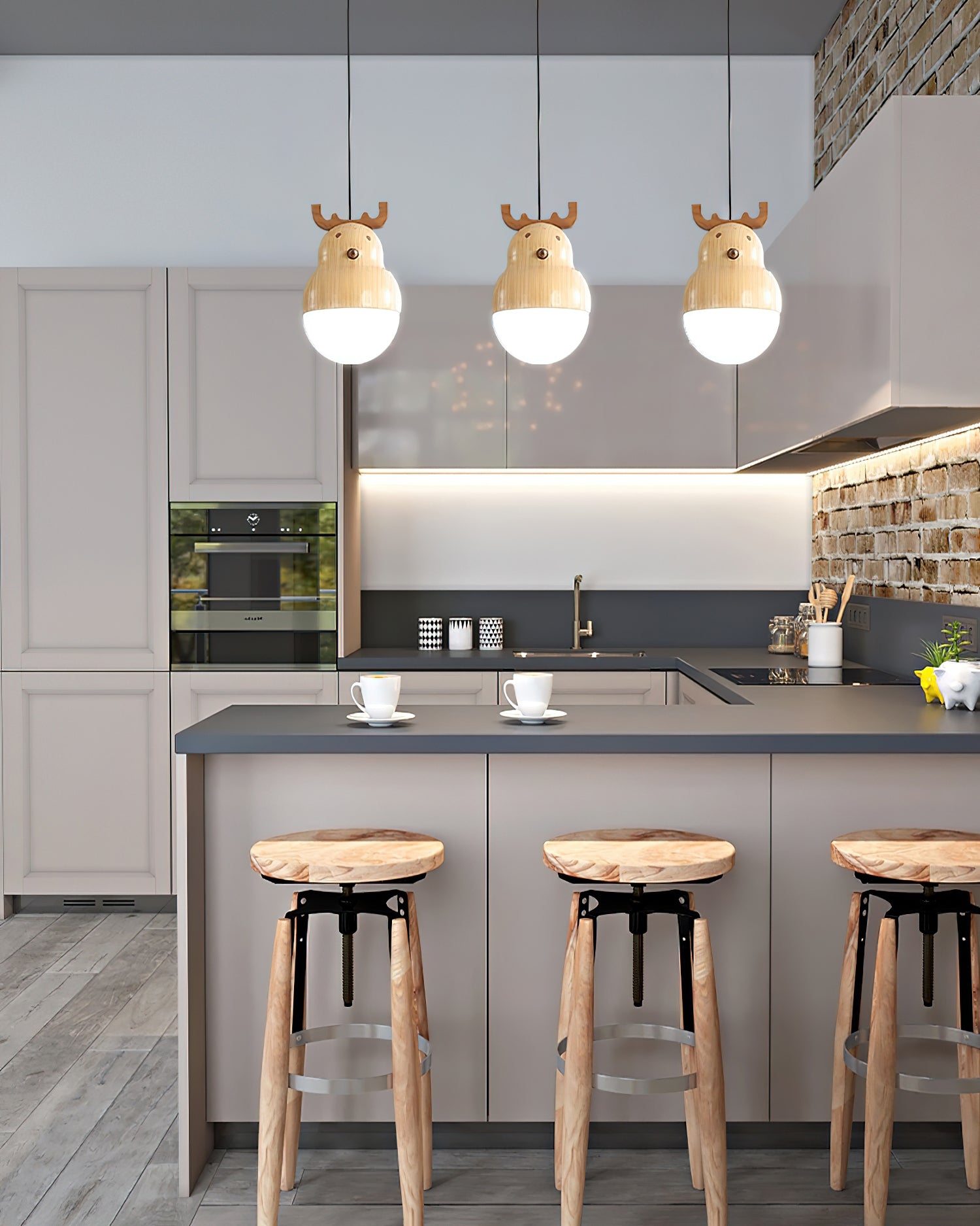 A perfect addition to your home, this Snowman And Deer pendant lamp stands out with its minimalistic geometric design. Crafted from ash wood and black walnut for corrosion-resistant longevity, it is adorned with intricate lifelike wood texture embellishments. Appearing as if it originated in the mountains and forests, this elegant piece adds a touch of nature to your living space.