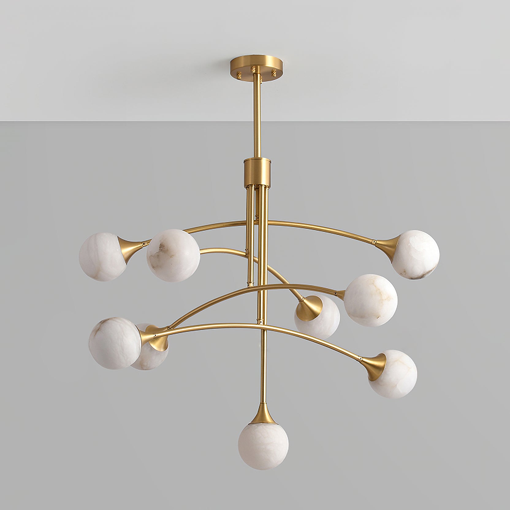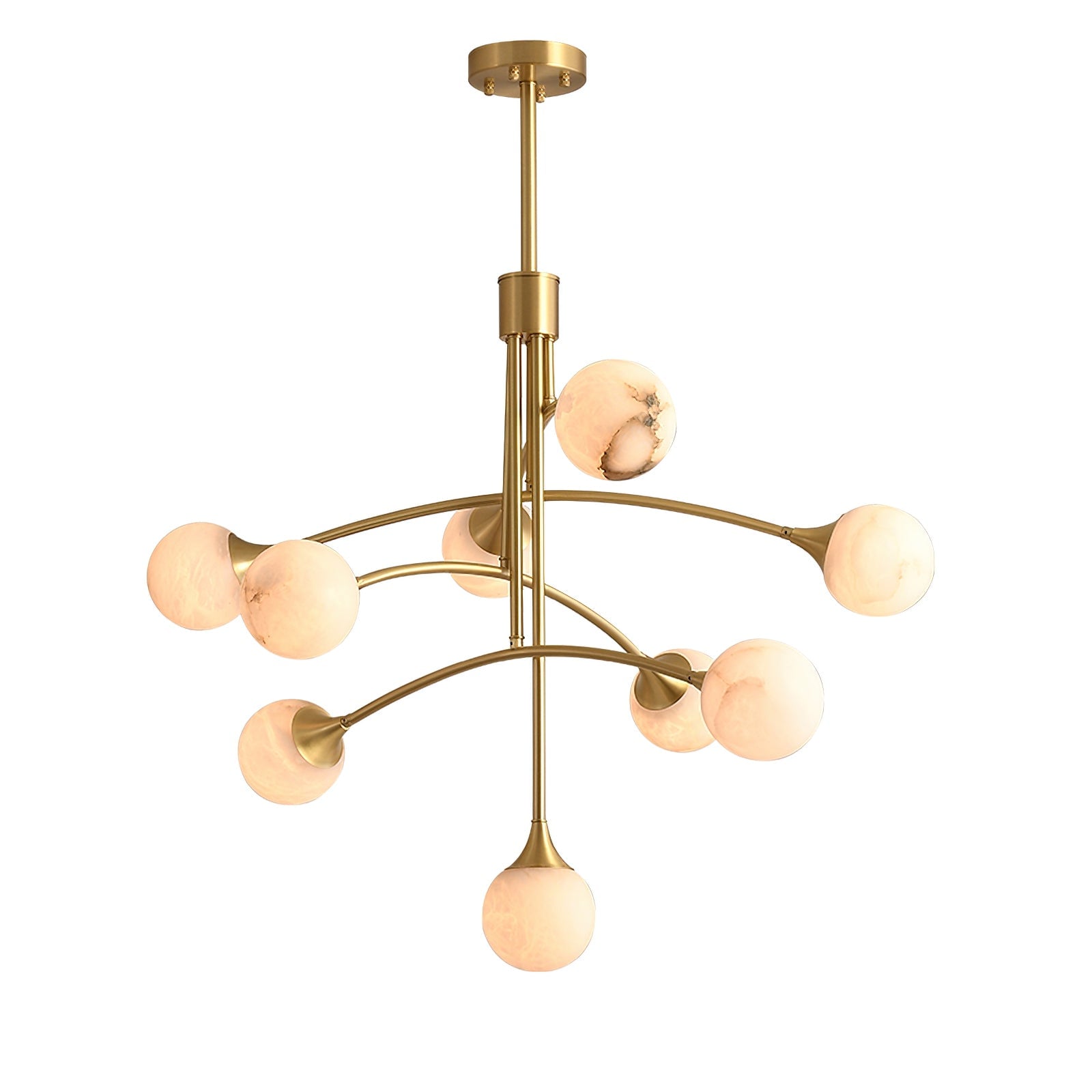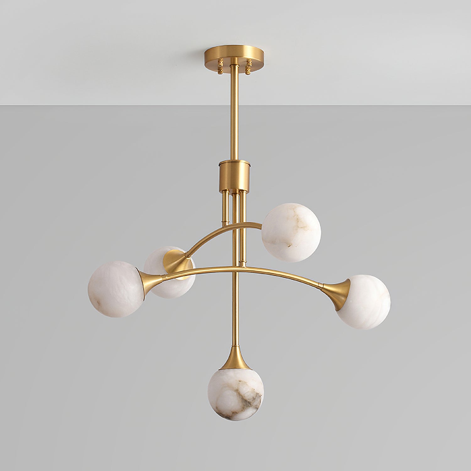 The Solaire Chandelier from Mooijane exudes elegance with its smooth white alabaster globe, slender brass arms, and refined structure. Designed to elevate any space, it offers a soft, ambient glow and a timeless silhouette—making it a striking centerpiece for dining rooms, living areas, or entryways.