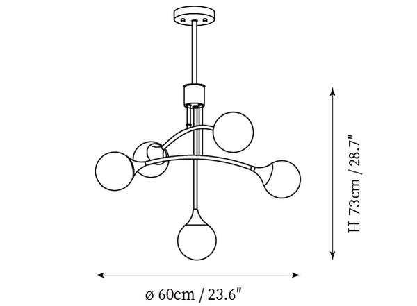 - 5-Lights Size: Dia 60cm x H 73cm / ∅ 23.6″ x H 28.7″