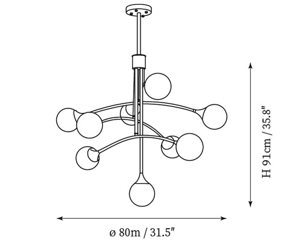 - 9-Lights Size: Dia 80cm x H 91cm / ∅ 31.5″ x H 35.8″