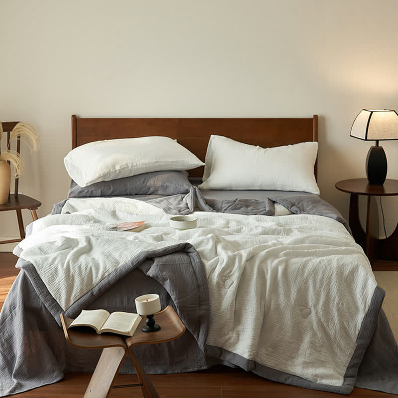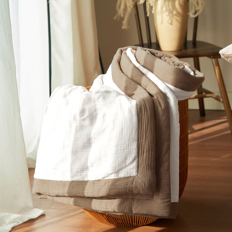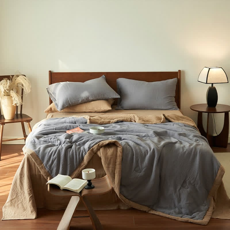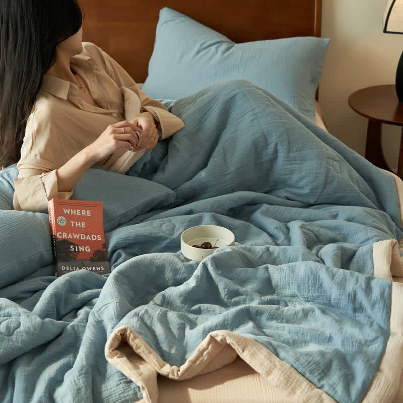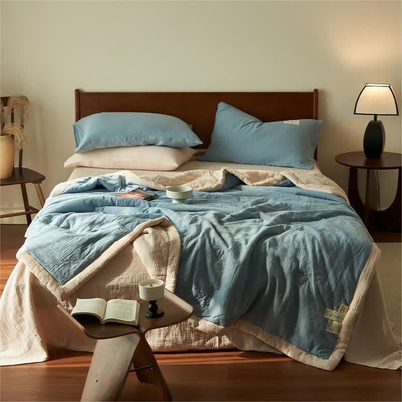 Presented in solid colors, this quilt exudes a fresh, organic look that will bring a new aesthetic to your bedroom decor. It's made from high-quality cotton with double layers of gauze and soy fiber filling, providing the ideal balance between comfort and breathability to ensure a good night's sleep. There are a variety of combinations to meet your daily needs and ensure a perfect sleep experience.
