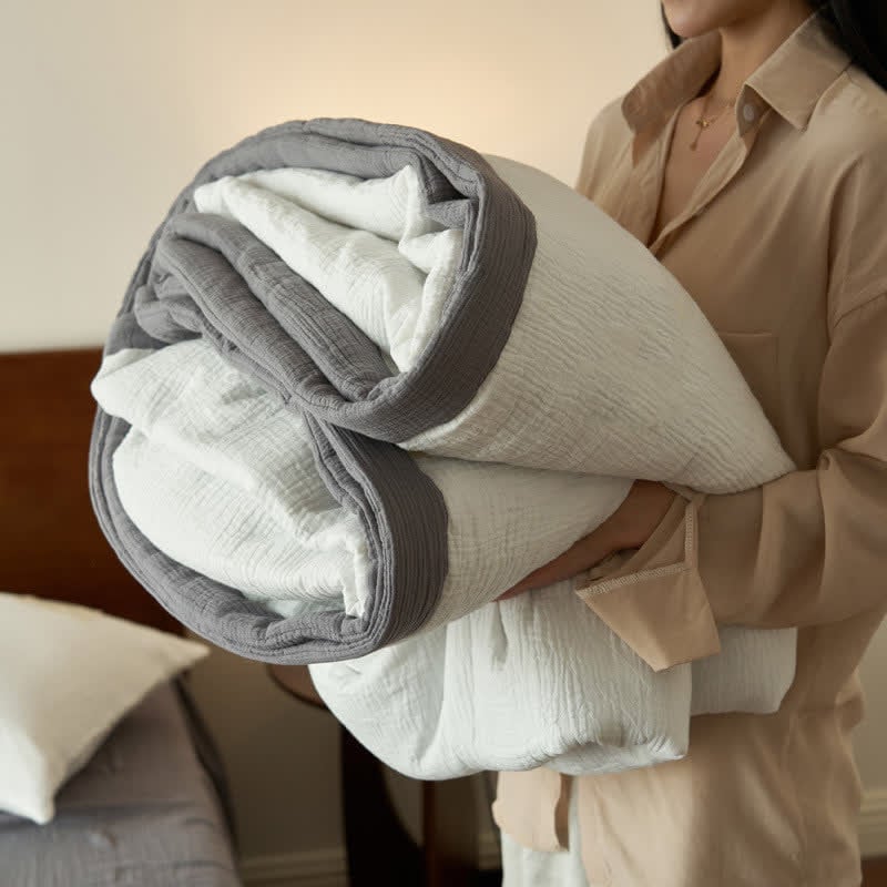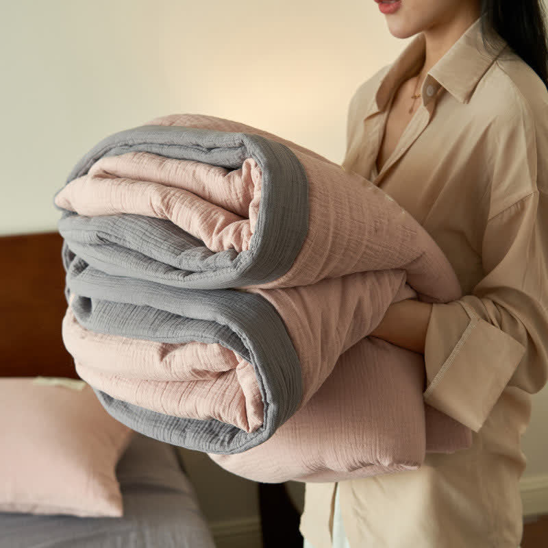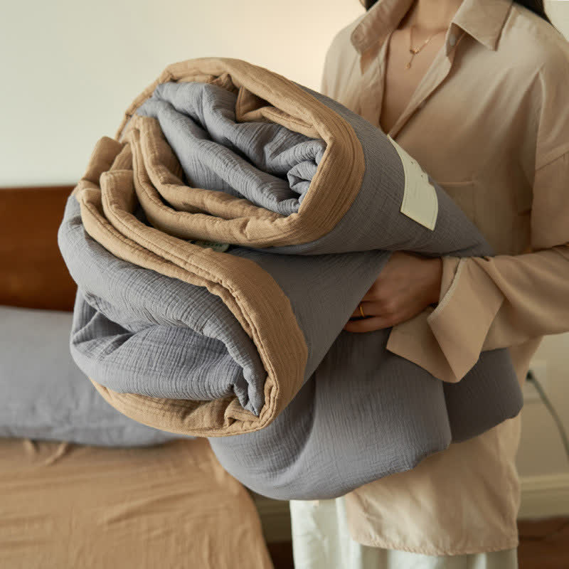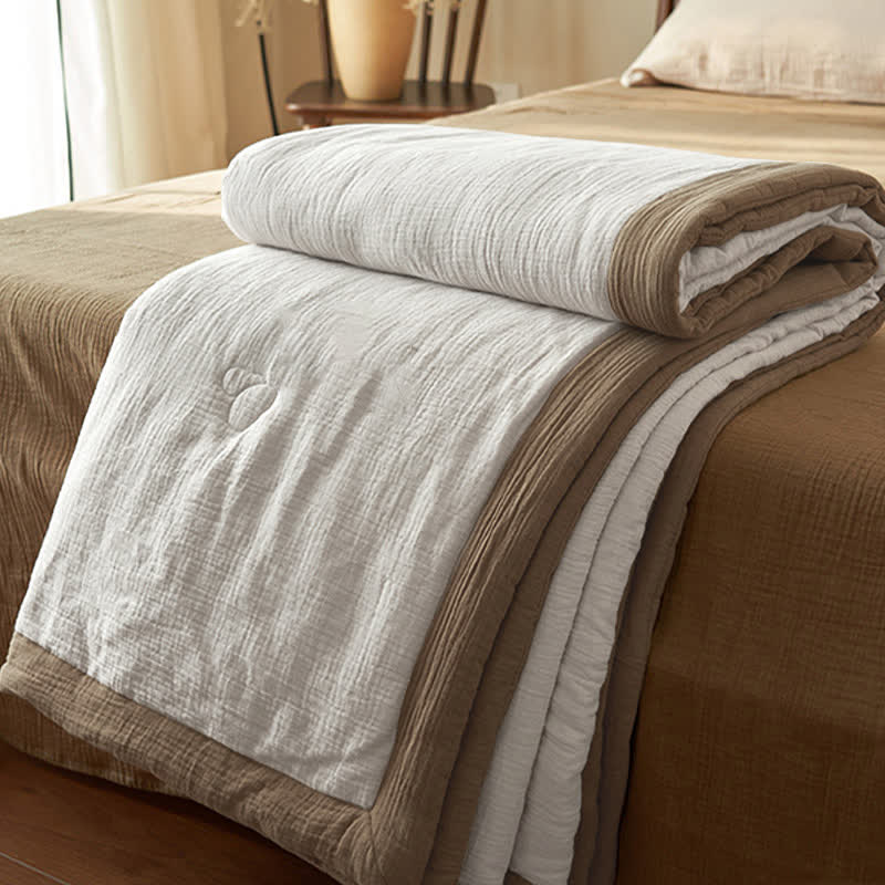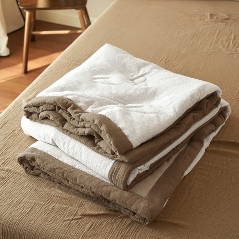 Presented in solid colors, this quilt exudes a fresh, organic look that will bring a new aesthetic to your bedroom decor. It's made from high-quality cotton with double layers of gauze and soy fiber filling, providing the ideal balance between comfort and breathability to ensure a good night's sleep. There are a variety of combinations to meet your daily needs and ensure a perfect sleep experience.