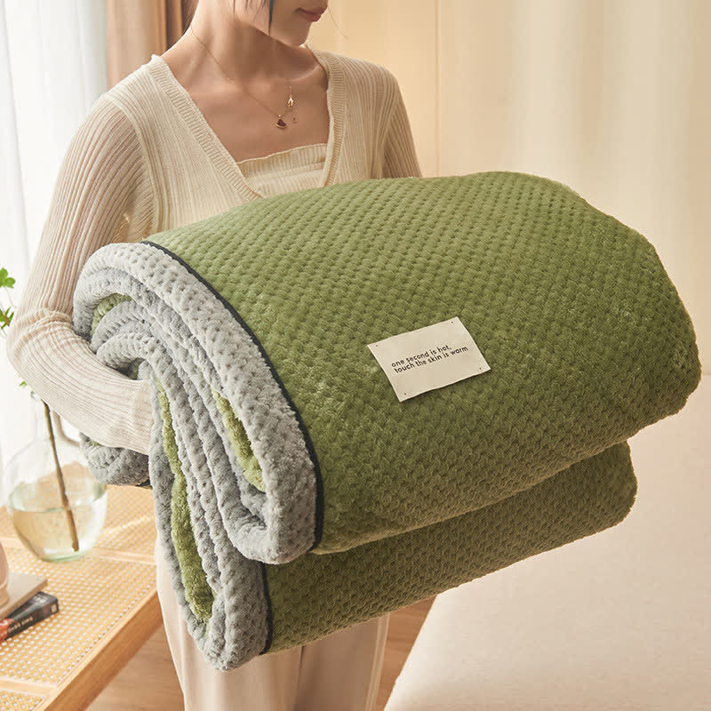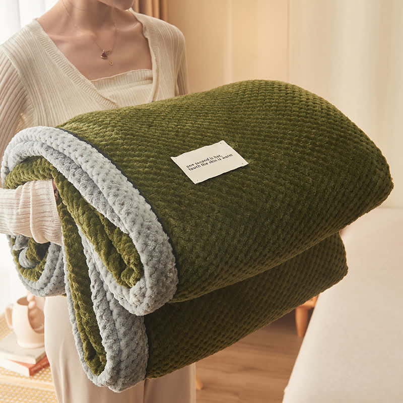 With solid color, this throw blanket is classic and elegant. Made of microfiber coral fleece, it is extremely soft and cozy, providing a comfortable and velvety touch against the skin. What's more, adopted environmentally friendly reactive printing, it features resistance to fade and pilling which ensures its long-lasting use.