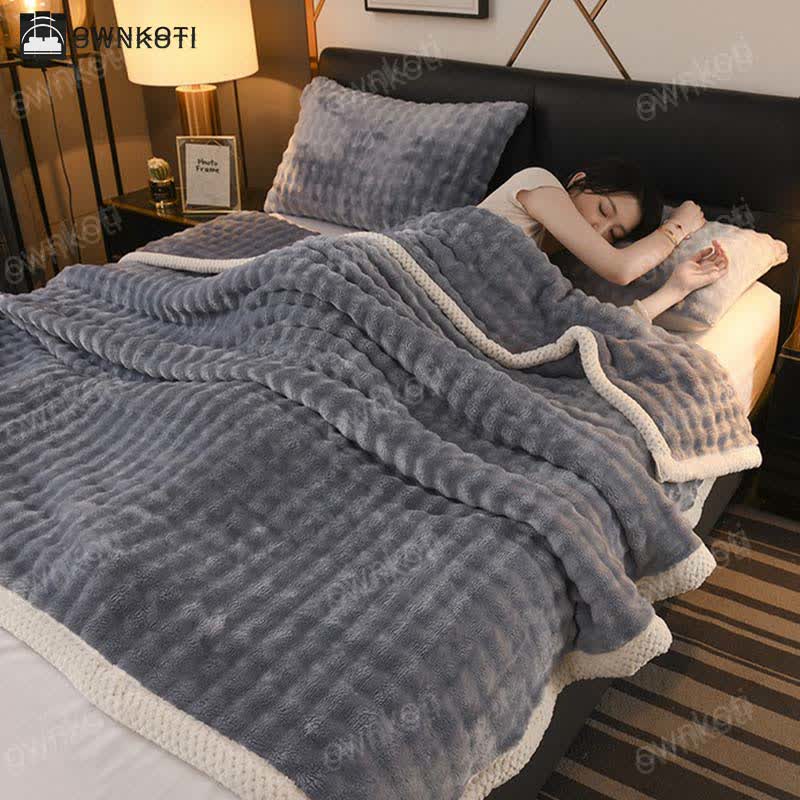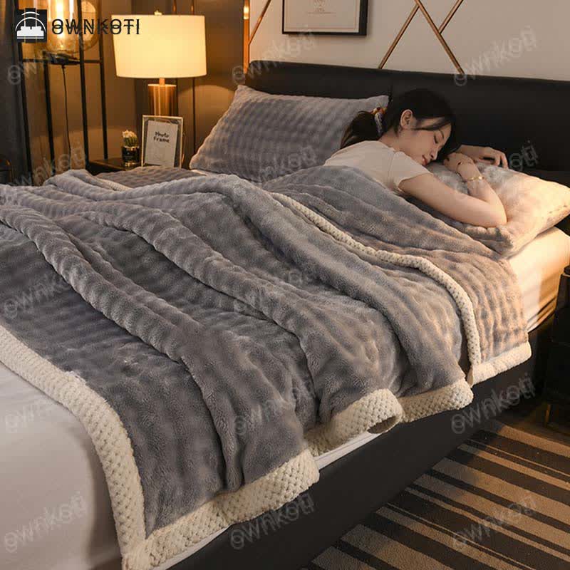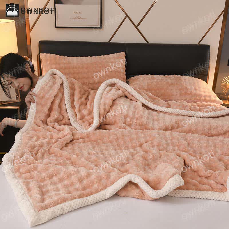 This solid-color blanket features exquisite edging and is made from a soft, comfortable, and durable fabric that promotes restful sleep. Its versatile design makes it suitable for year-round use. Indulge in warmth and style with our cozy blanket.