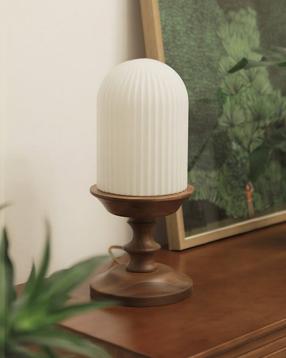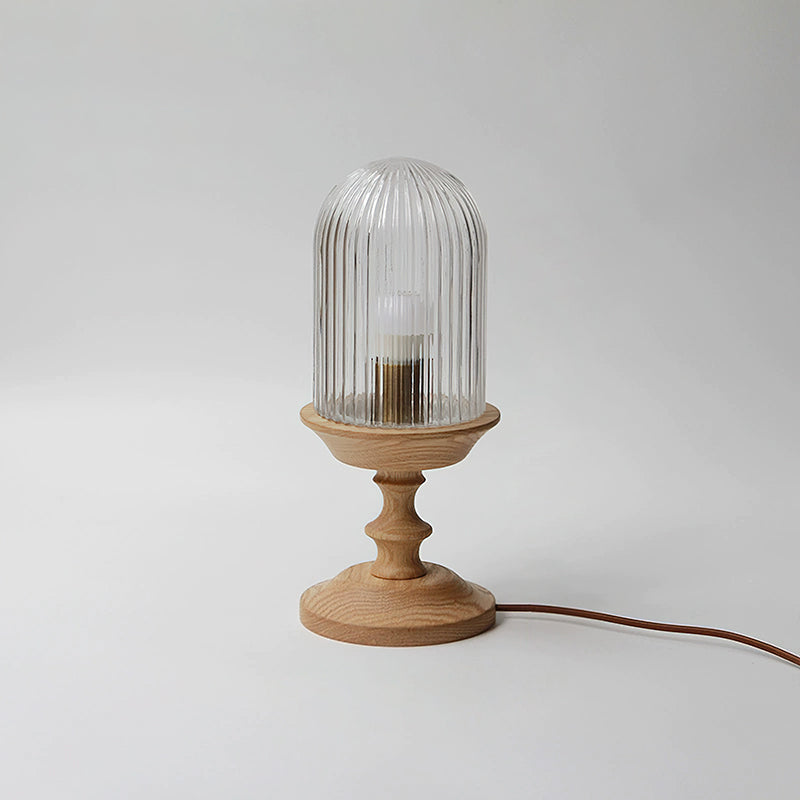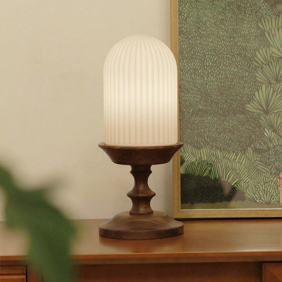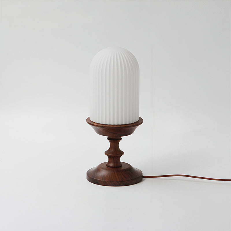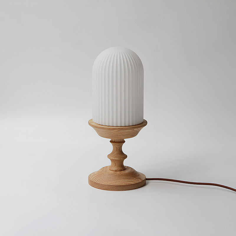 The Solklint Table Lamp by Mooijane pairs a delicately carved solid wood base, shaped into soft, layered curves, with a rounded opaline glass shade featuring vertical textures. The warm wood grain brings a natural touch, while the softly diffused light creates a calm, inviting atmosphere. Perfect for bedside tables, desks, or living room corners, it offers a refined blend of modern-retro charm and timeless elegance.