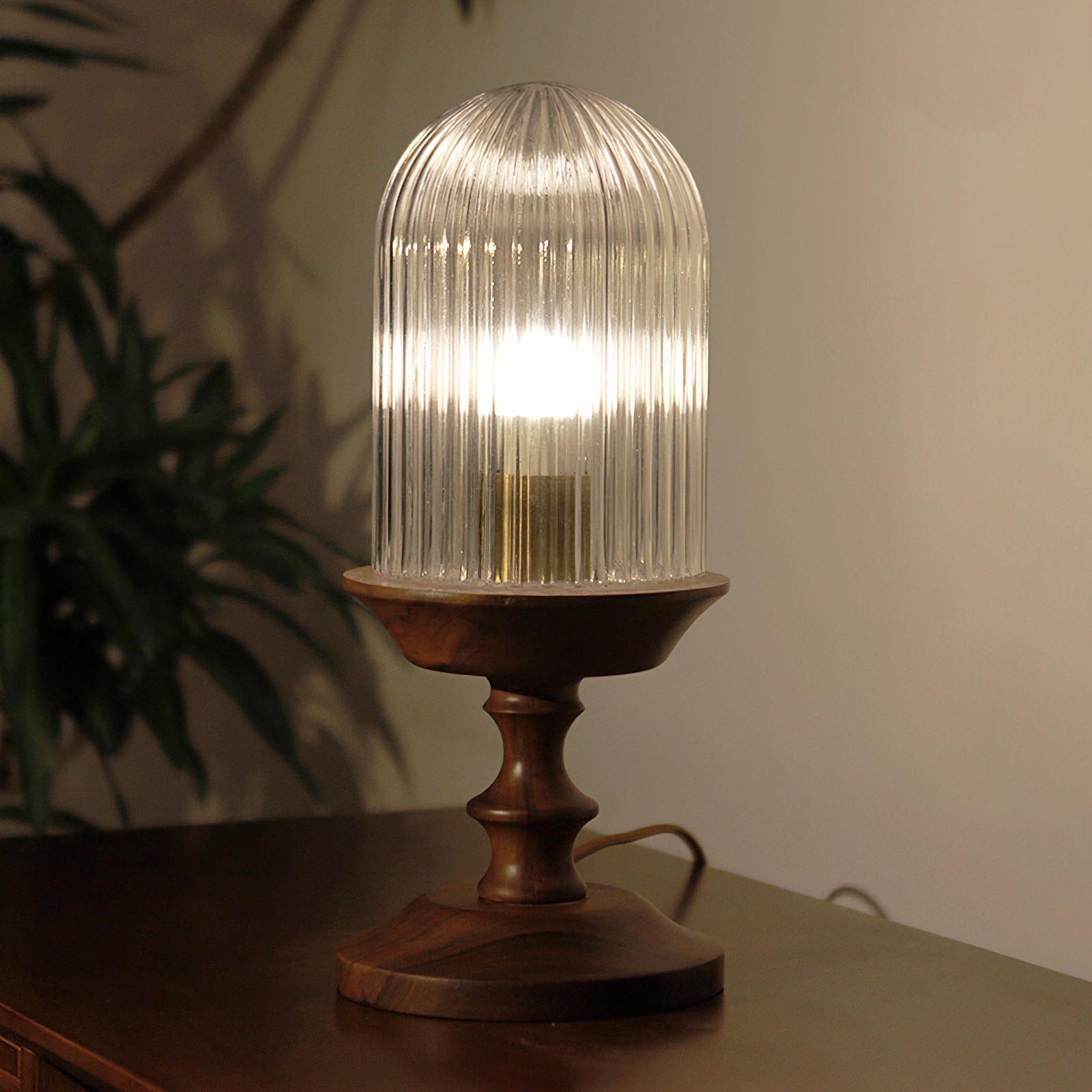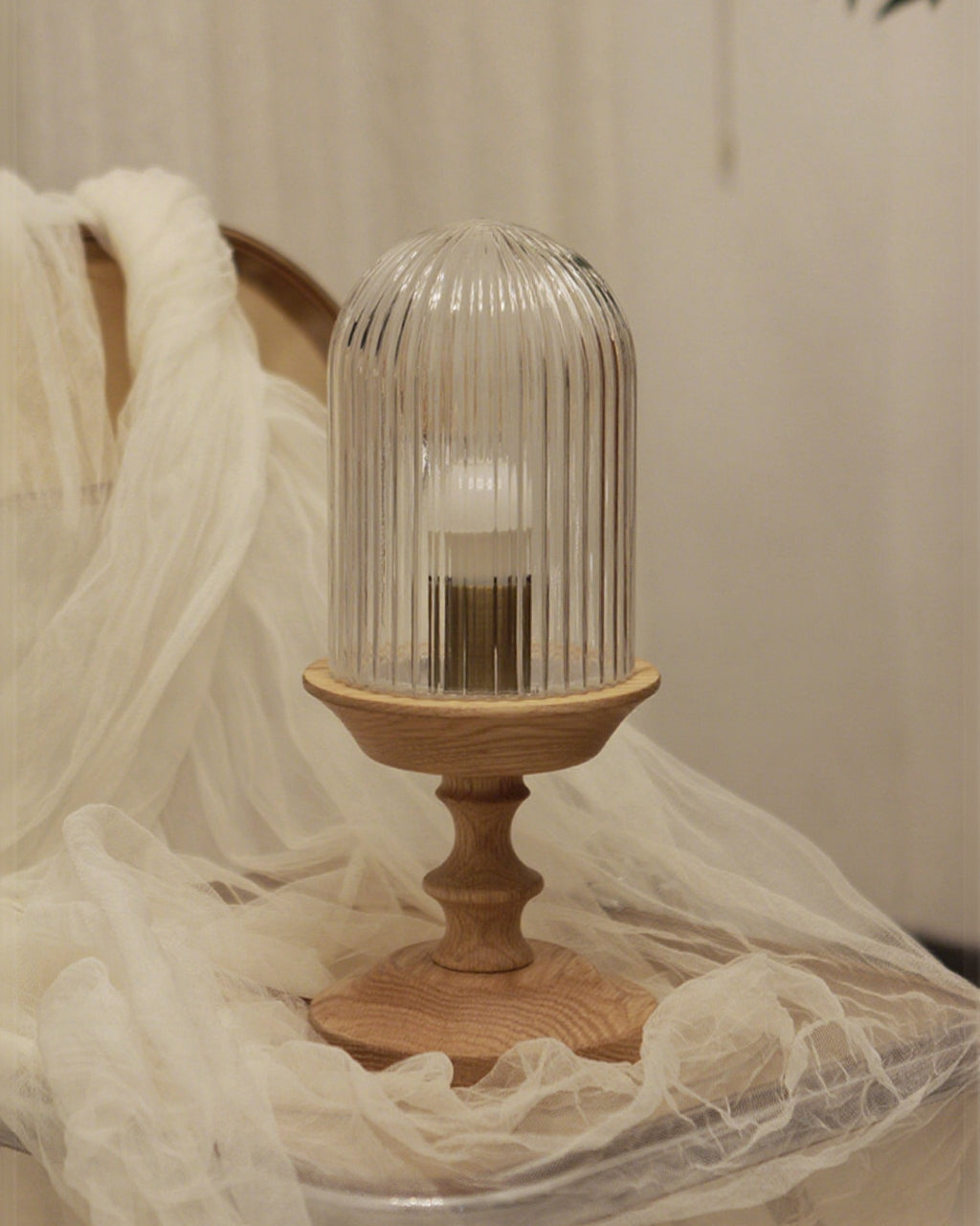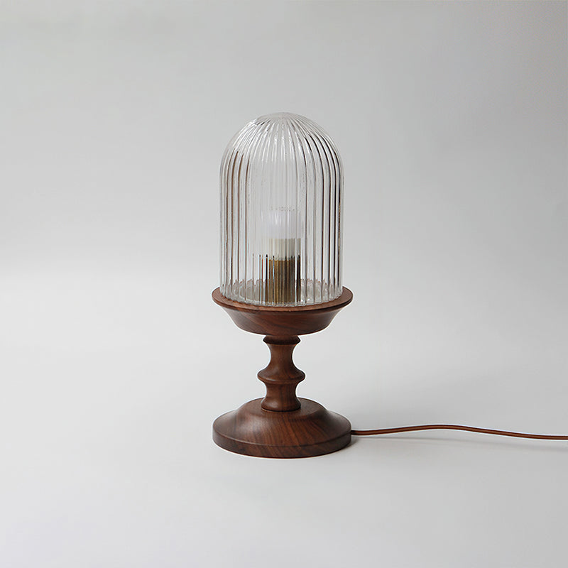 The Solklint Table Lamp by Mooijane pairs a delicately carved solid wood base, shaped into soft, layered curves, with a rounded opaline glass shade featuring vertical textures. The warm wood grain brings a natural touch, while the softly diffused light creates a calm, inviting atmosphere. Perfect for bedside tables, desks, or living room corners, it offers a refined blend of modern-retro charm and timeless elegance.