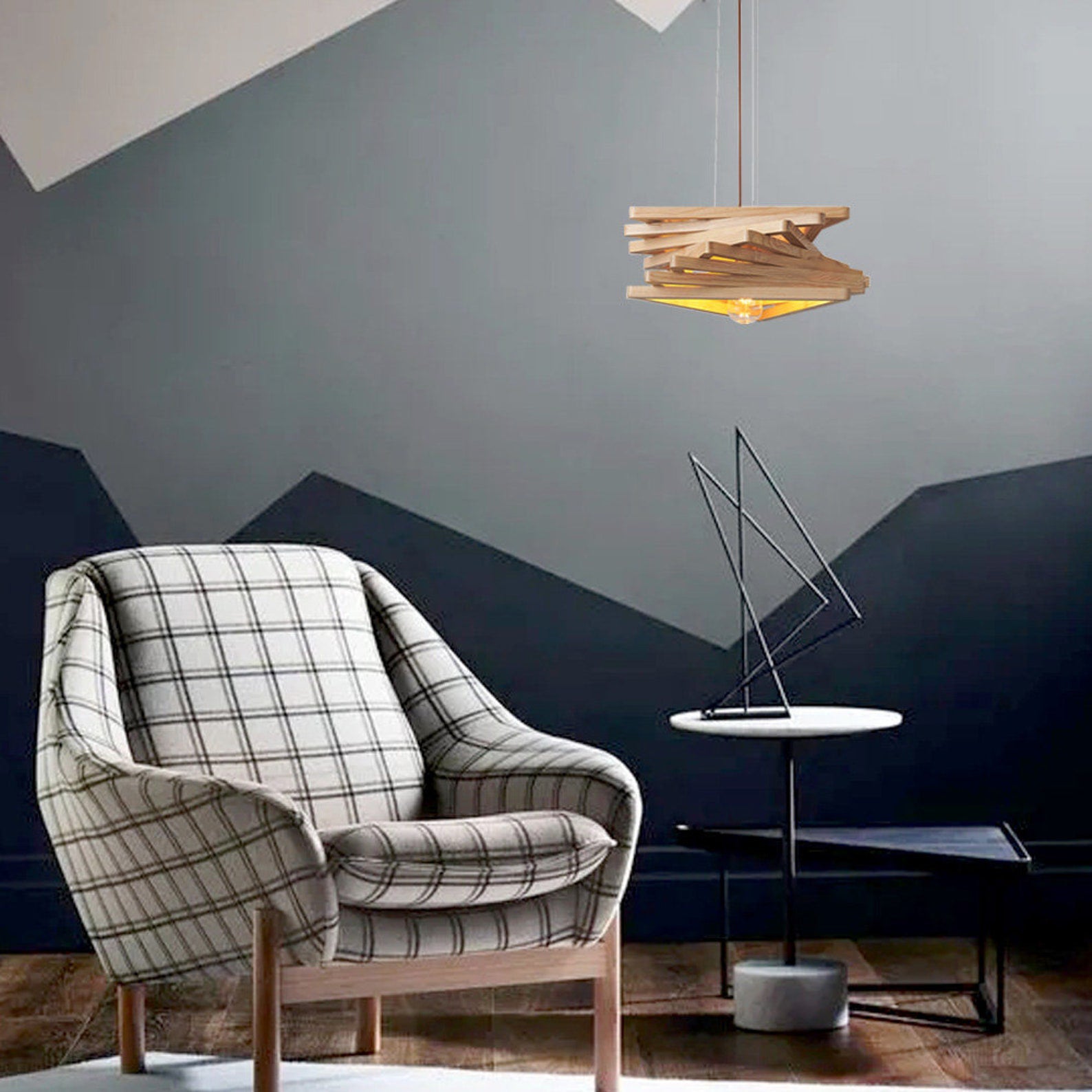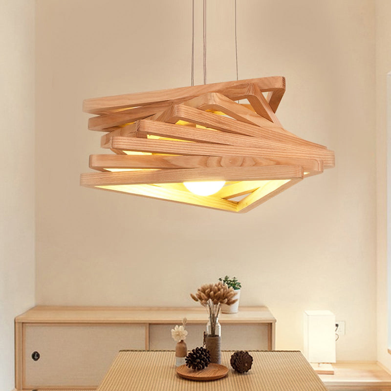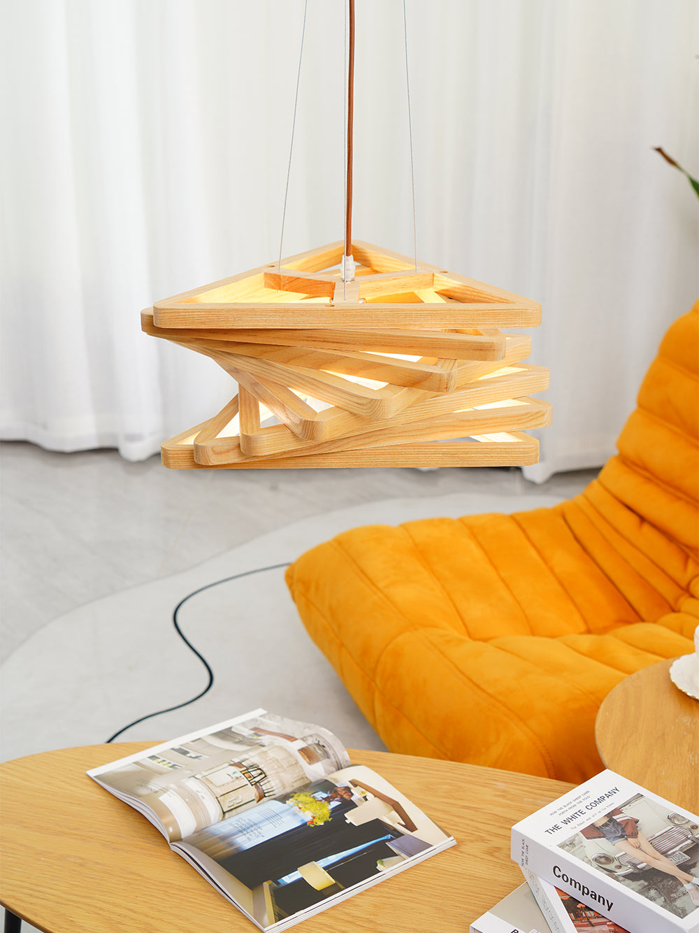 The Spiral Triangle Pendant Light logs are used in the high-end color design unique to nature, which is simple and quiet, showing a new state of beauty, rough in appearance, and perfect inwardly. With the rustic and romantic lamp shade to decorate your home.