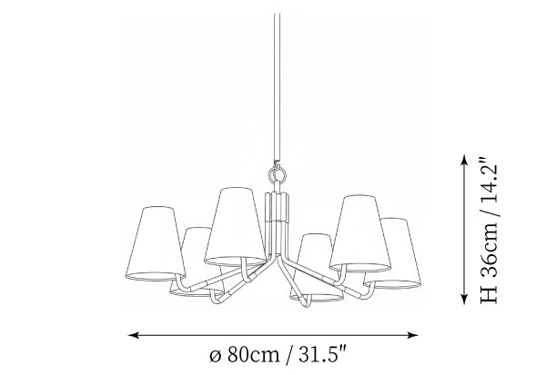 - 6-Lights Size: Dia 80cm x H 36cm / ∅ 31.5″ x H 14.2″