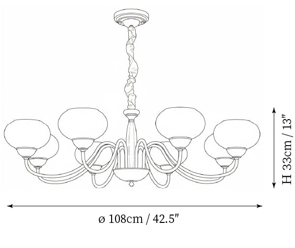 - 8-Lights Size: Dia 108cm x H 33cm / ∅ 42.5″ x H 13″