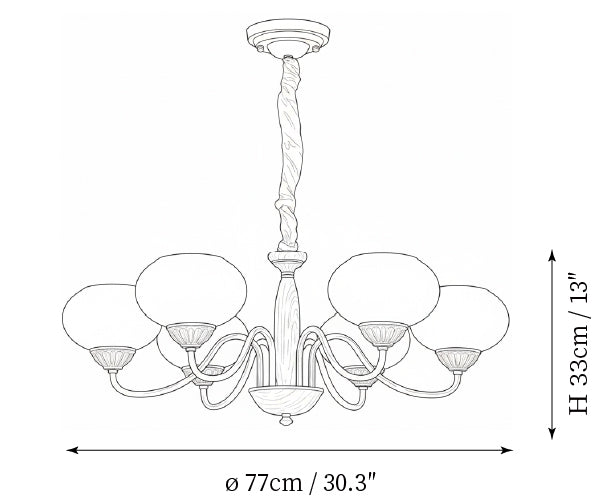 - 6-Lights Size: Dia 77cm x H 33cm / ∅ 30.3″ x H 13″