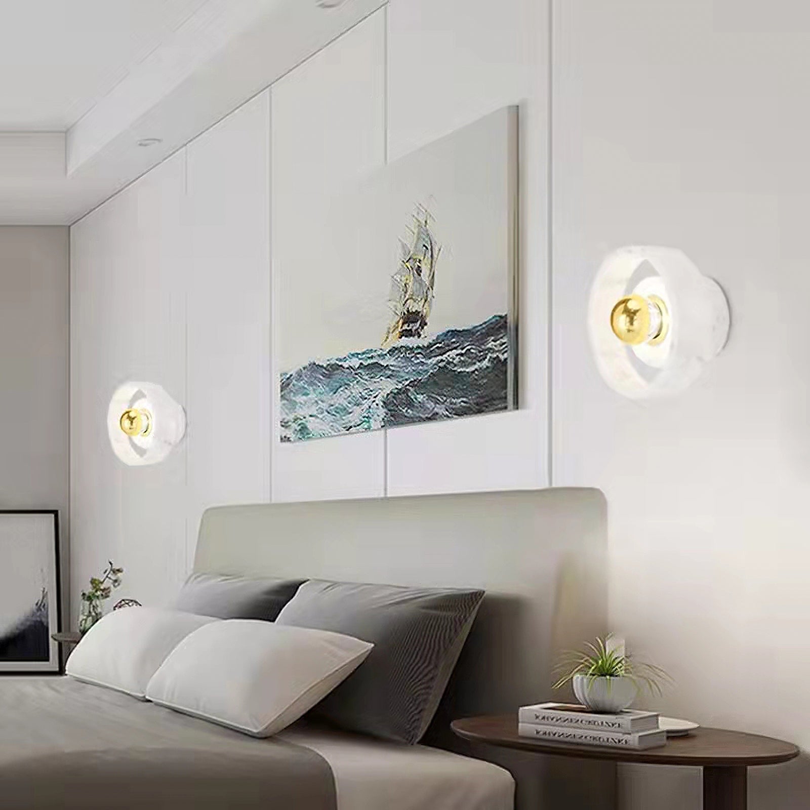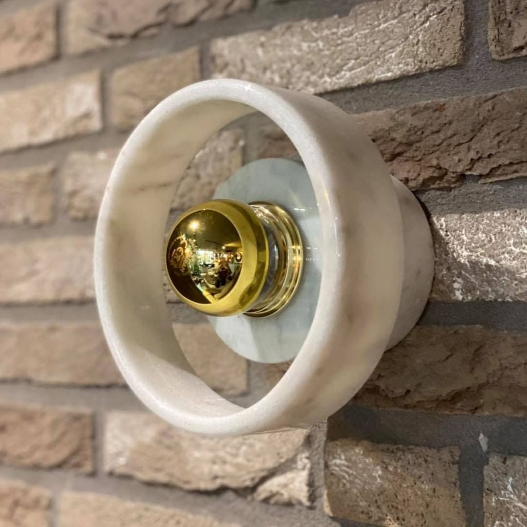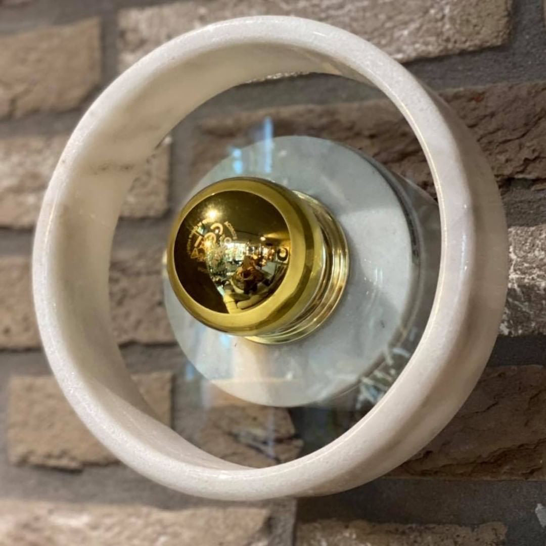 The Stone Wall Lamp is carved from white marble, giving it a hard, semi-precious surface. This gives it touches of architecture, sculpture, and design inspired by thousands of years of these practices. It has a polished finish, The Stone Wall Lamp makes any room look more polished and chic. Perfect for the lavish loving homeowners, and for the fond of art and architecture. Every piece of marble has unique textures and stripes, making each piece completely unique.