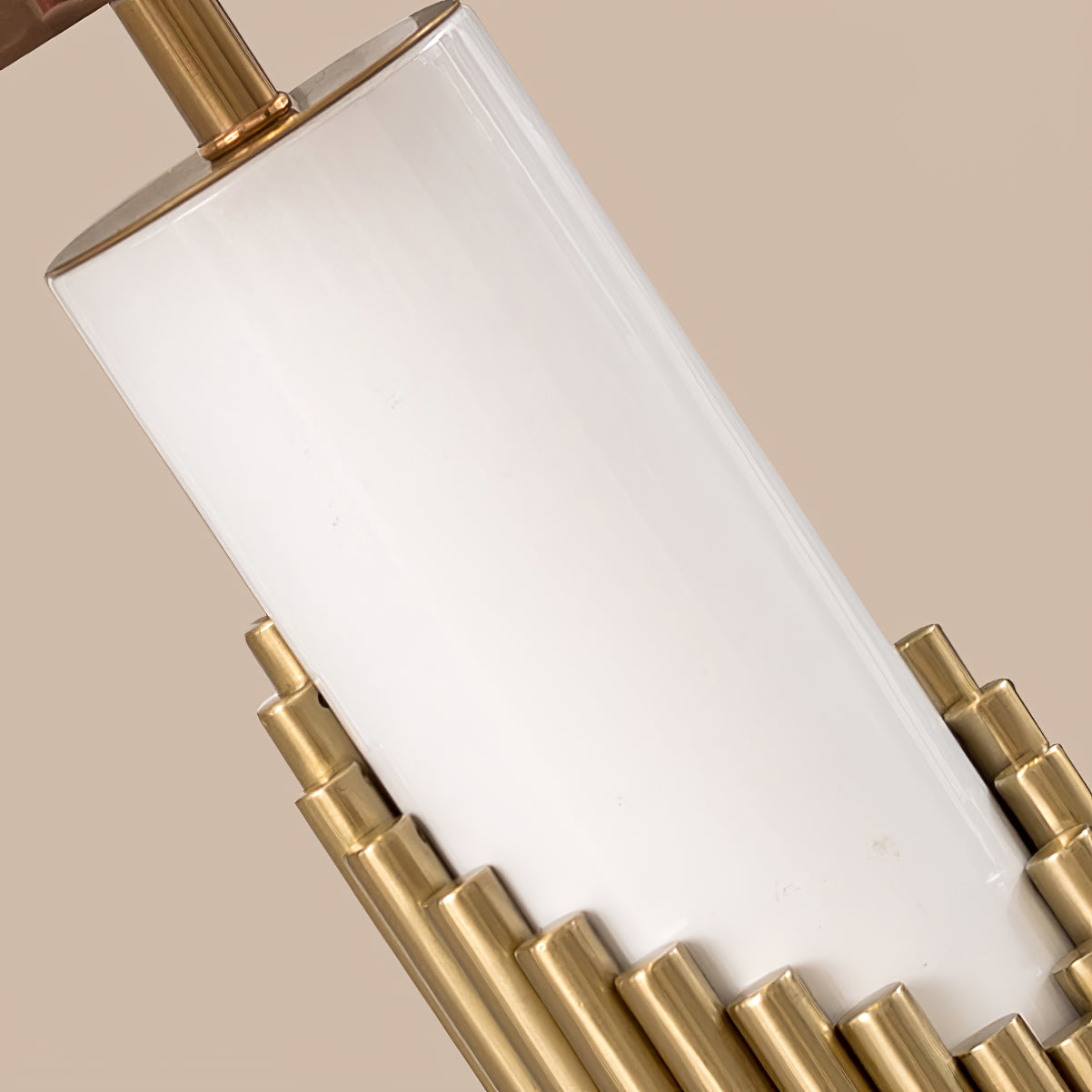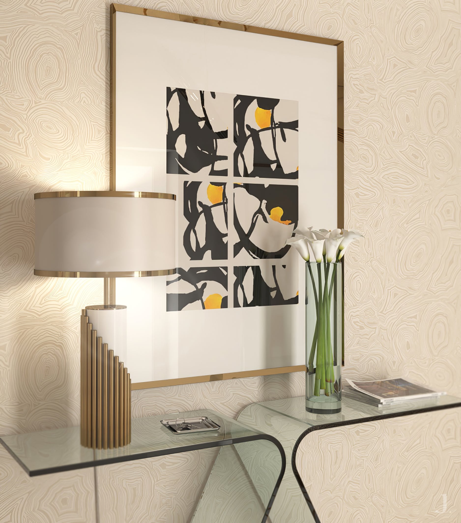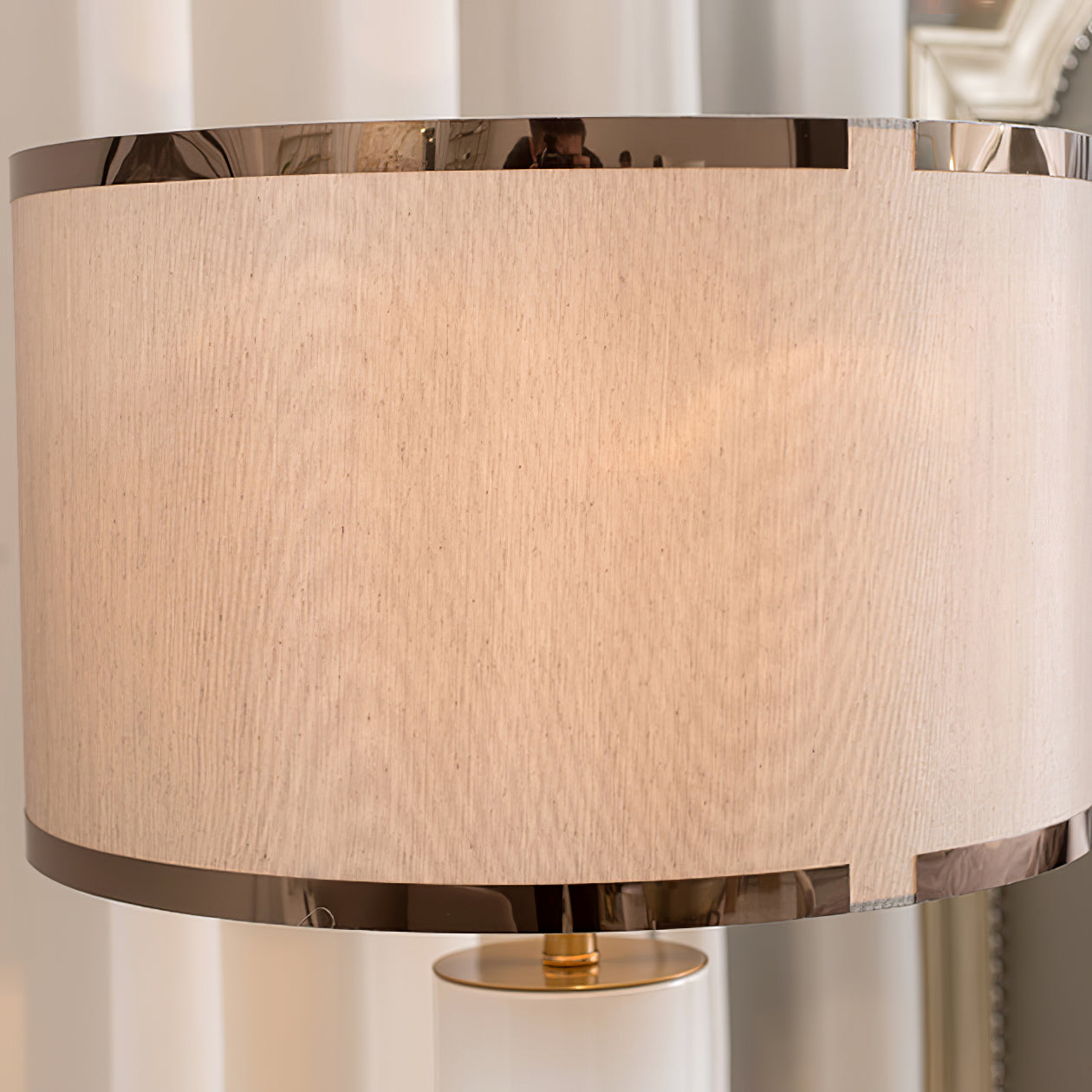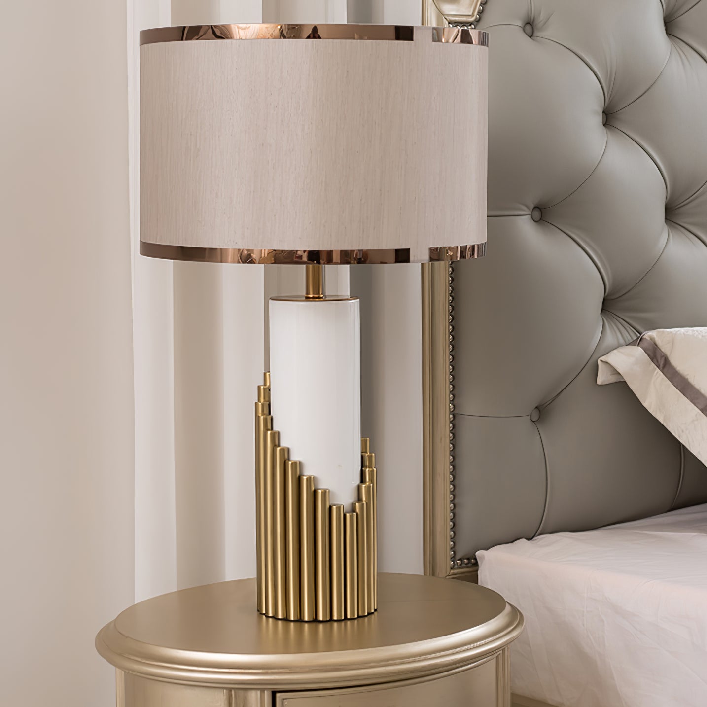 - Lampshade: Gold and Brown.