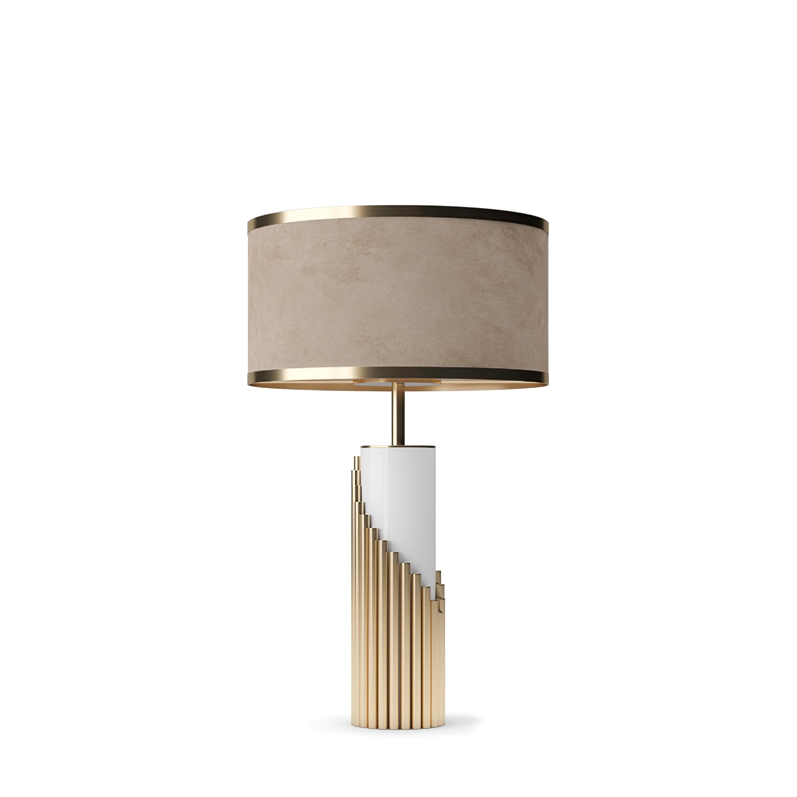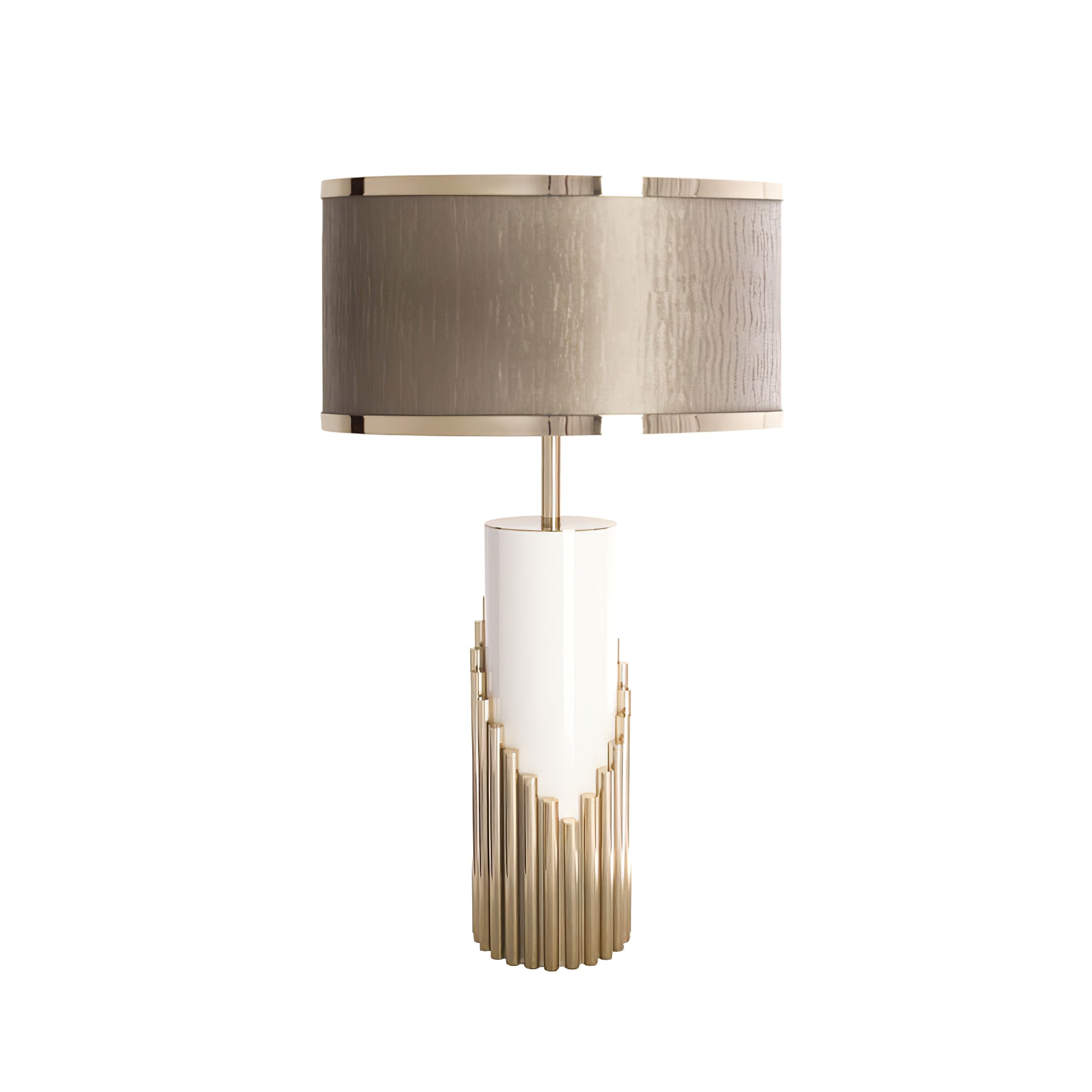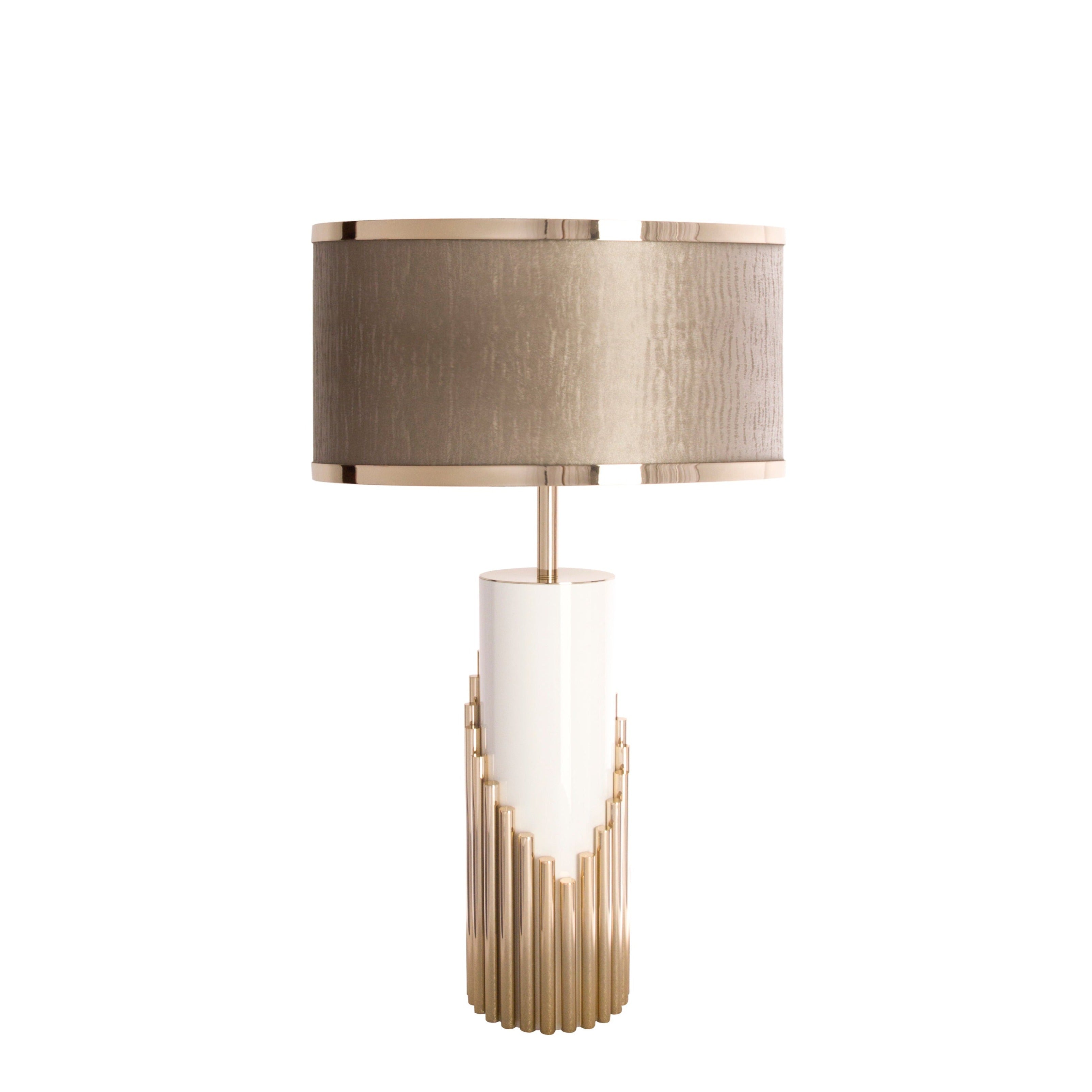 This elegant table lamp features a white lacquered structure with gold plated brass tubes that give the design a whole exclusive and deluxe look, setting another level with its distinctive appearance. This recipe of rich materials and sleek lines inspired by art-deco architecture make the Streamline table lamp desirable.