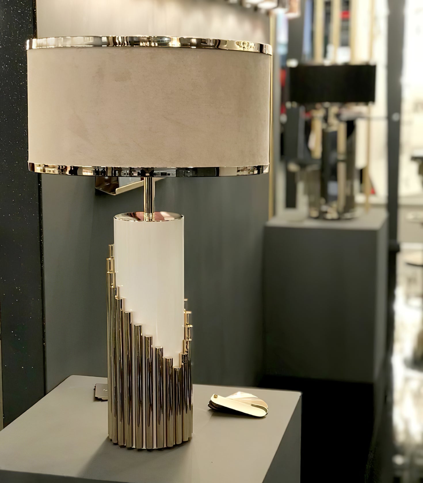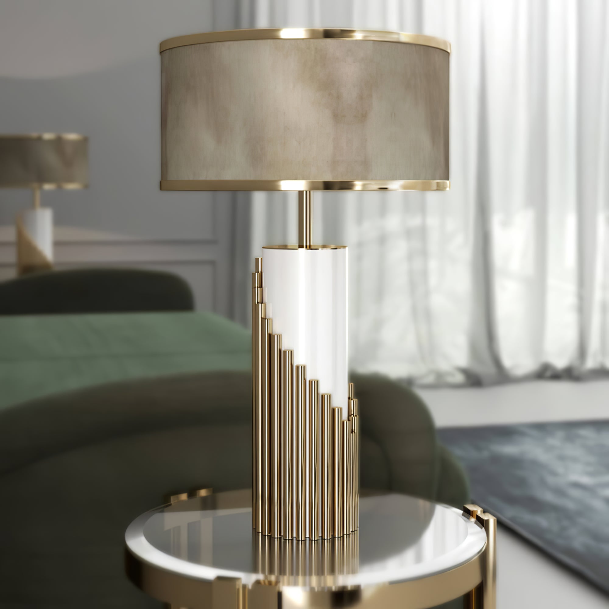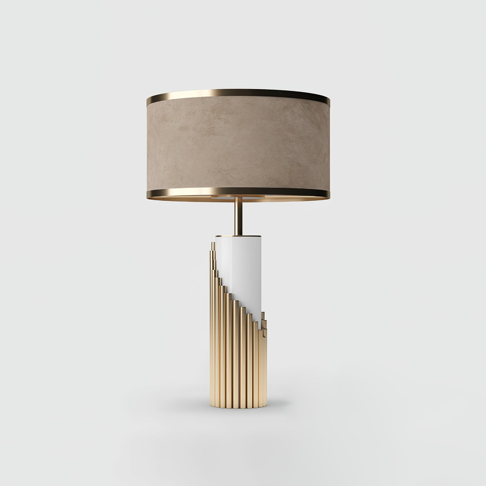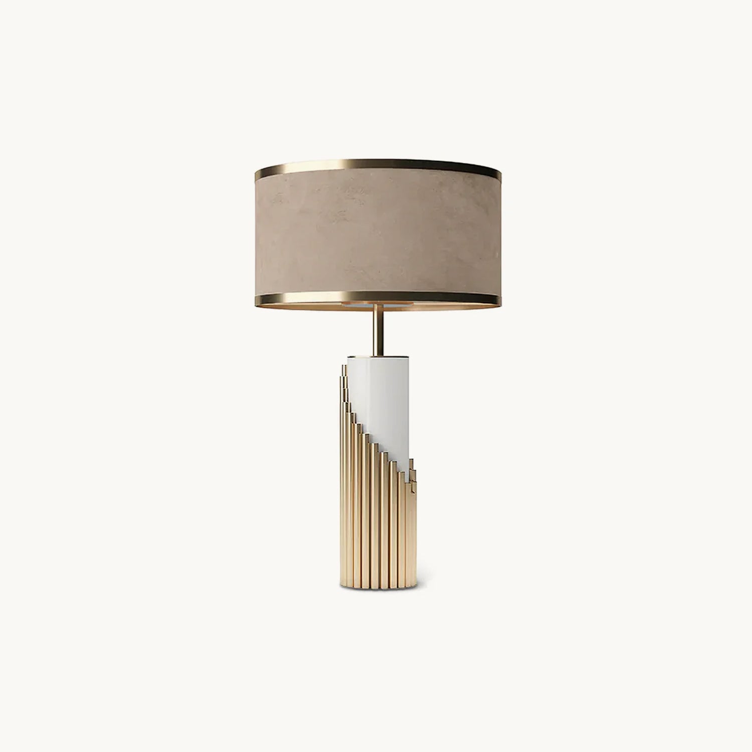 This elegant table lamp features a white lacquered structure with gold plated brass tubes that give the design a whole exclusive and deluxe look, setting another level with its distinctive appearance. This recipe of rich materials and sleek lines inspired by art-deco architecture make the Streamline table lamp desirable.