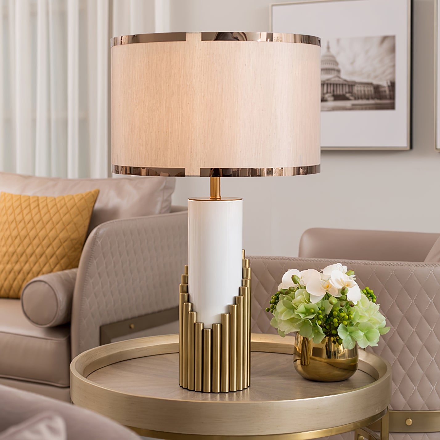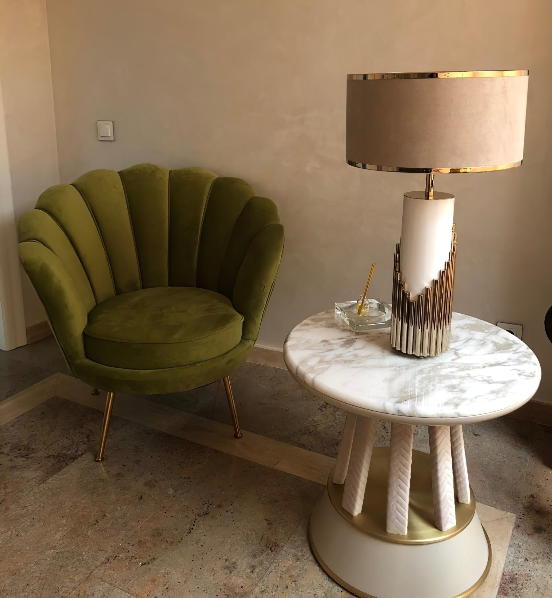 - Material: Metal, Marble, Fabric.