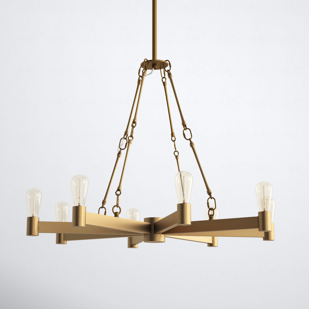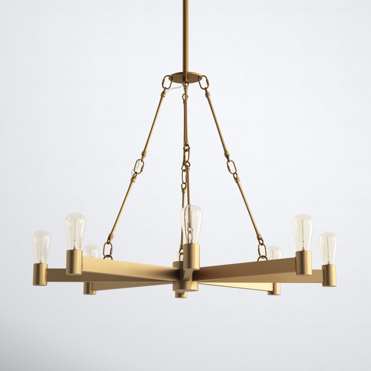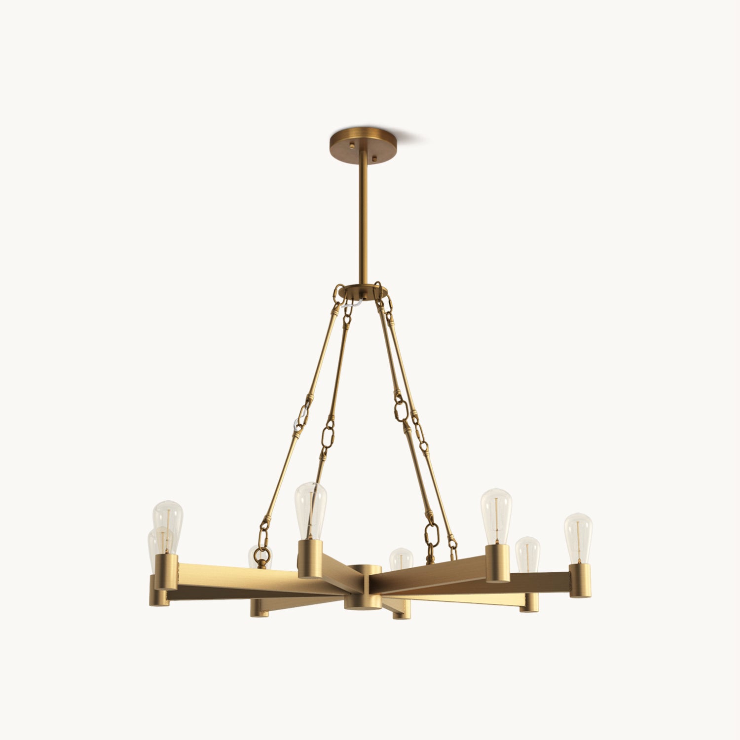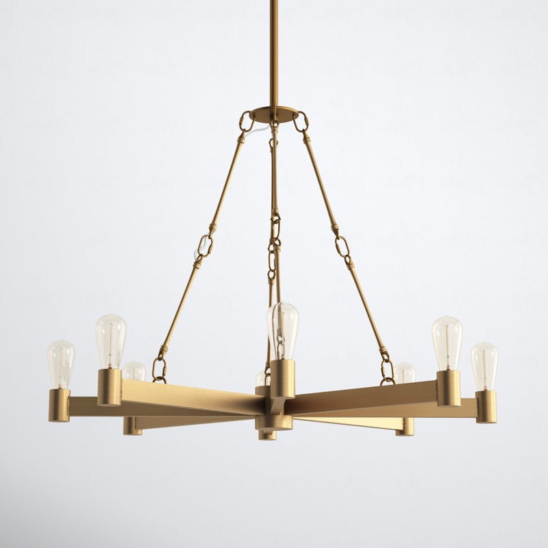 The Sullivan Chandelier by Mooijane features a streamlined design with timeless appeal. Eight rounded sockets rest on angular metal rods, arranged in a circular pattern to create an artful focal point. Perfect for adding elegance to entryways or dining rooms, this chandelier brings both style and sophistication to any space.