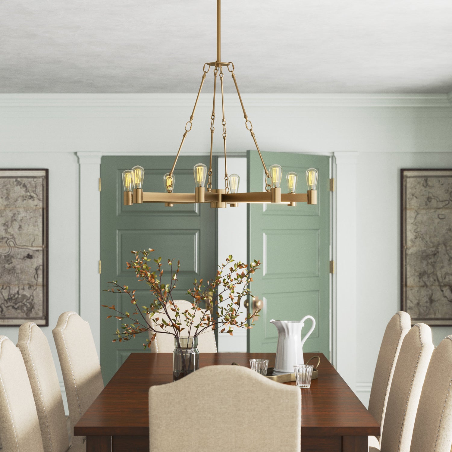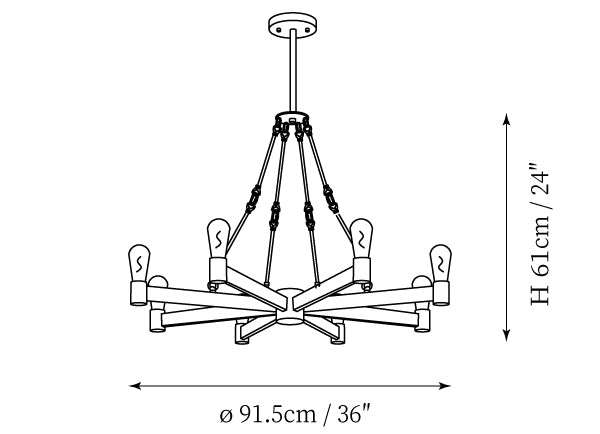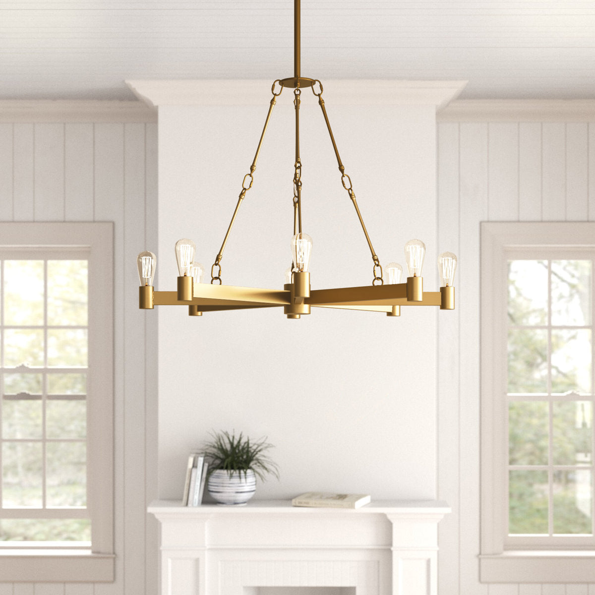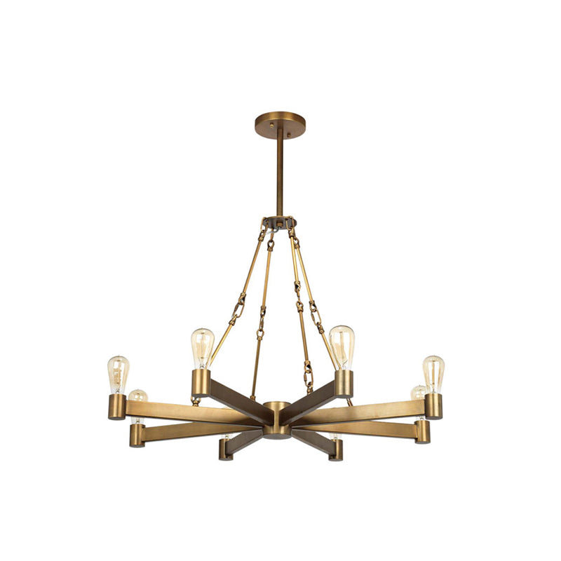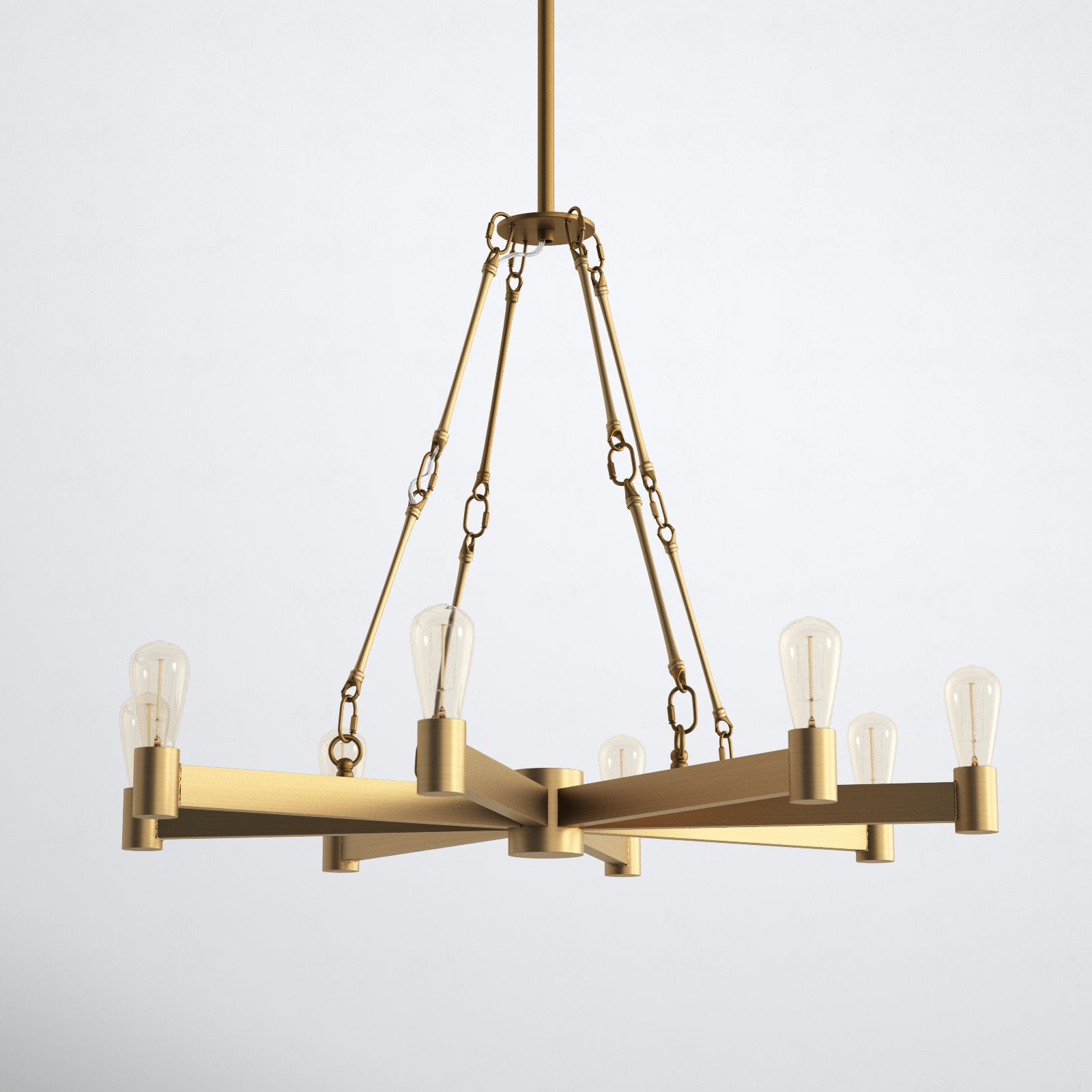 The Sullivan Chandelier by Mooijane features a streamlined design with timeless appeal. Eight rounded sockets rest on angular metal rods, arranged in a circular pattern to create an artful focal point. Perfect for adding elegance to entryways or dining rooms, this chandelier brings both style and sophistication to any space.