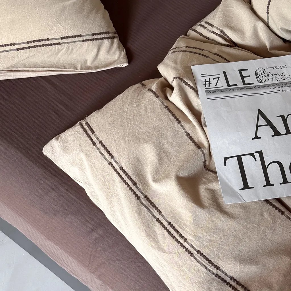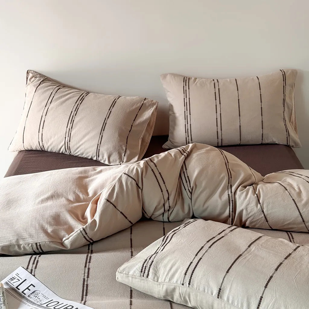 Like wrapping up in the last light of day, this duvet cover brings all the warm, mellow vibes of golden hour straight to your bed. The duvet cover features woven stripes in dreamy sunset shades—think hazy skies, faded peach, and that peaceful end-of-day glow.