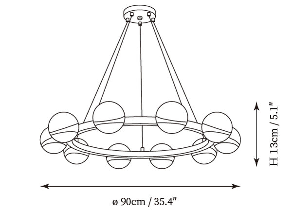 - 10-Lights Size: Dia 90cm x H 13cm / ∅ 35.4″ x H 5.1″