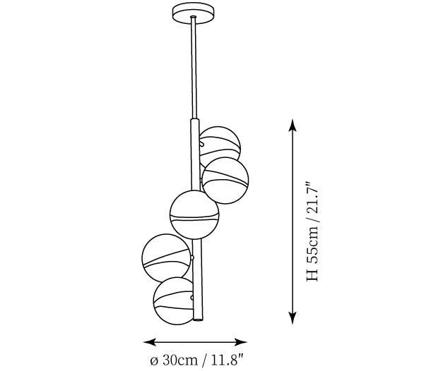 - 5-Lights Size: Dia 30cm x H 55cm / ∅ 11.8″ x H 21.7″