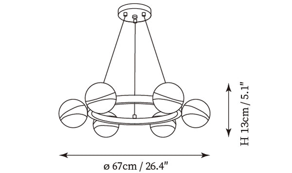 - 6-Lights Size: Dia 67cm x H 13cm / ∅ 26.4″ x H 5.1″