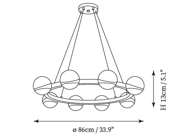 - 8-Lights Size: Dia 86cm x H 13cm / ∅ 33.9″ x H 5.1″