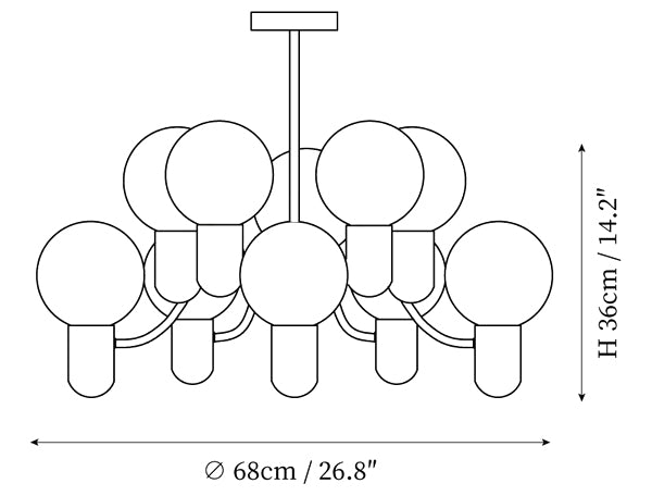 - 10 heads Size: Dia 68cm x H 36cm / ∅ 26.8″ x H 14.2″