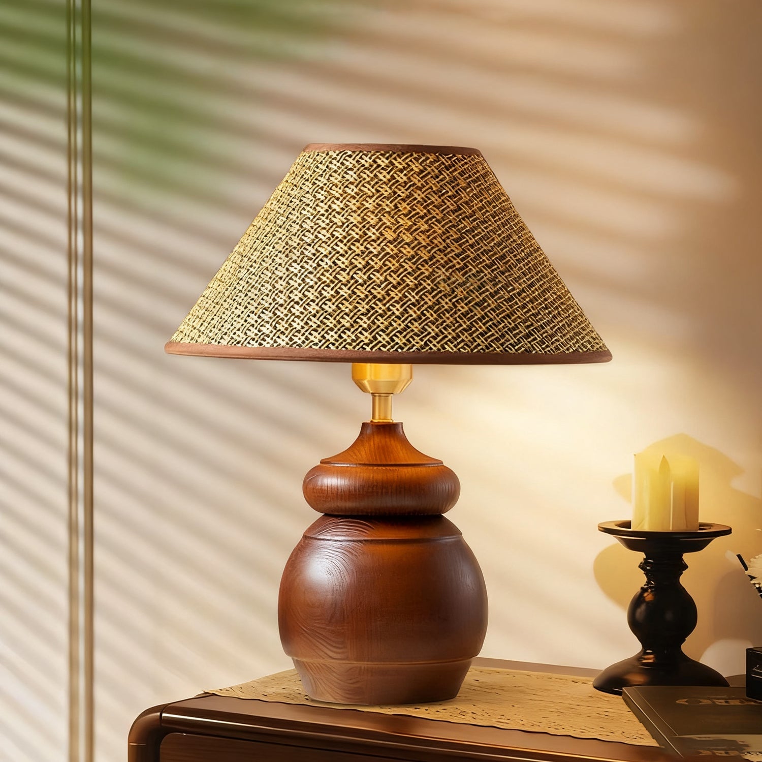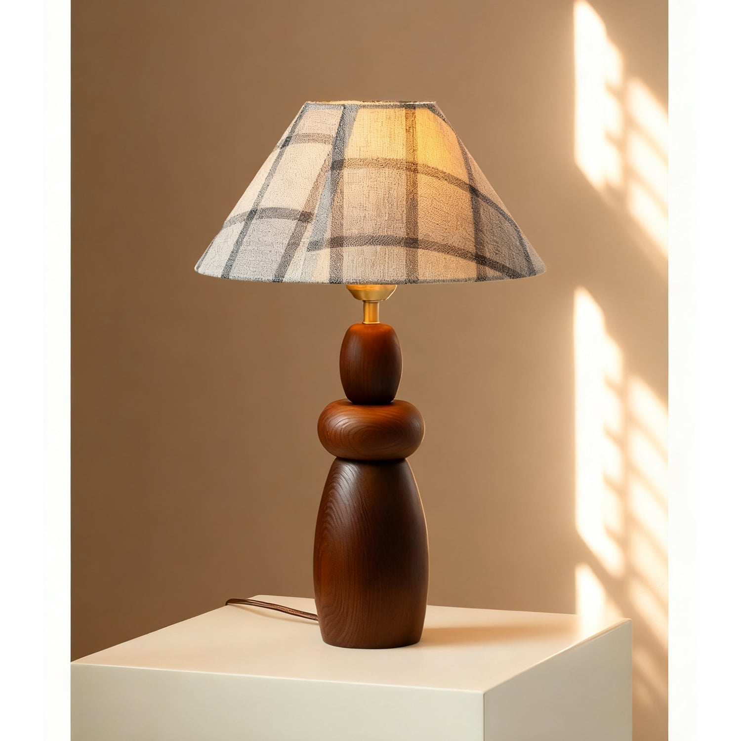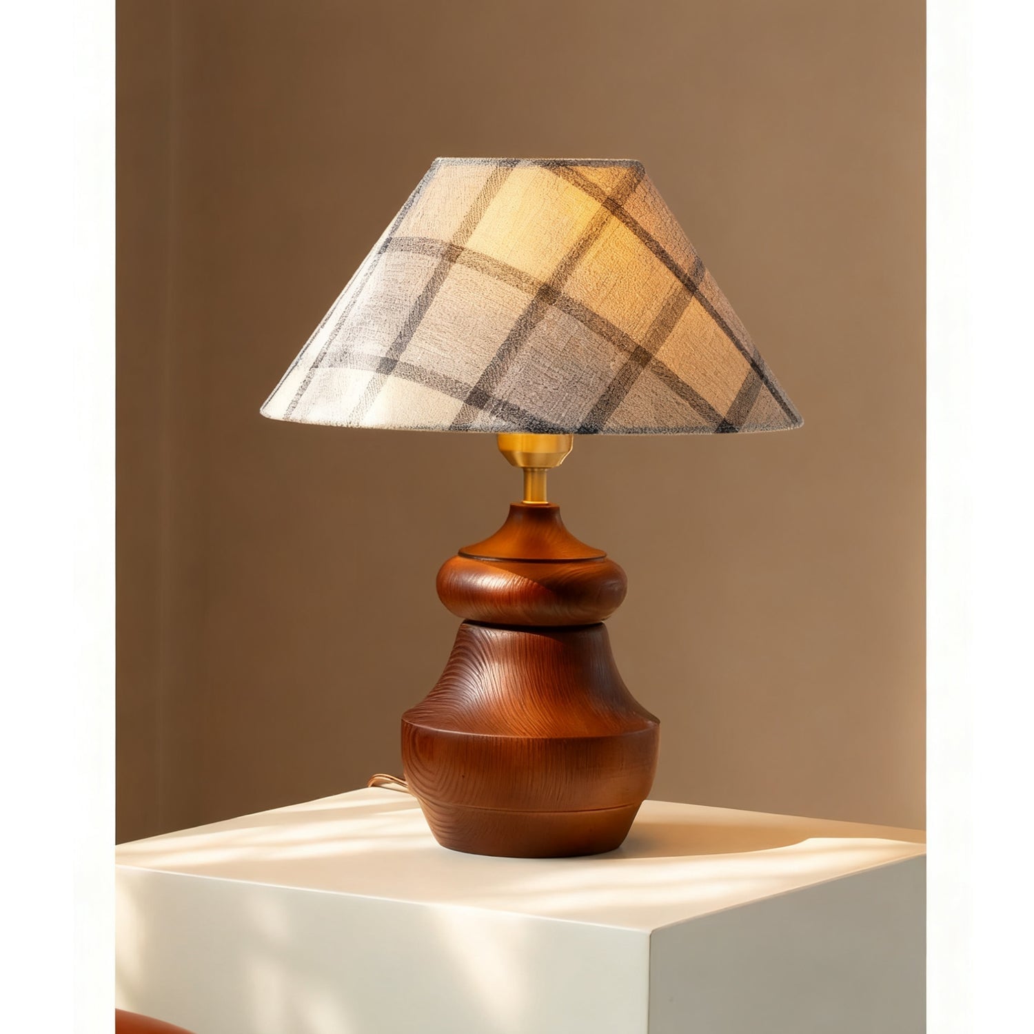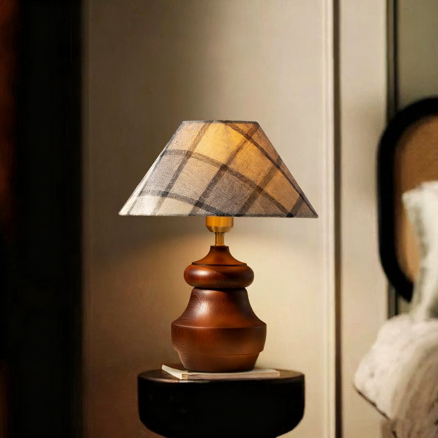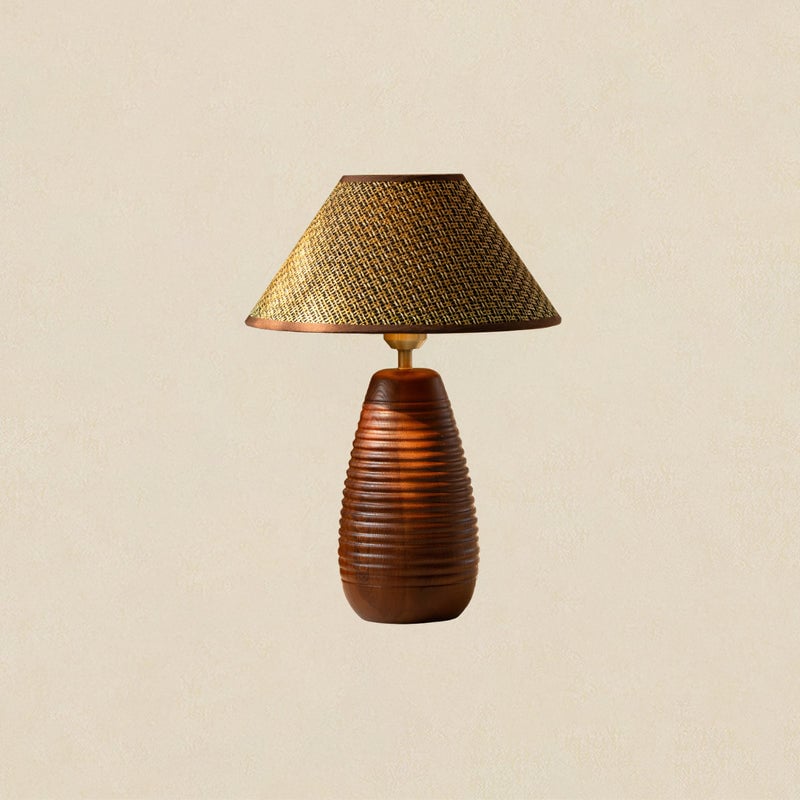 The Tatania Table Lamp from Mooijane blends natural elements with refined craftsmanship, offering both style and function. Its solid wooden base features a smooth, full-bodied form with rich grain patterns that add warmth and stability. Available with two distinct shades—a subtle plaid fabric for modern simplicity or a woven grass option for rustic charm—it highlights the beauty of natural textures.