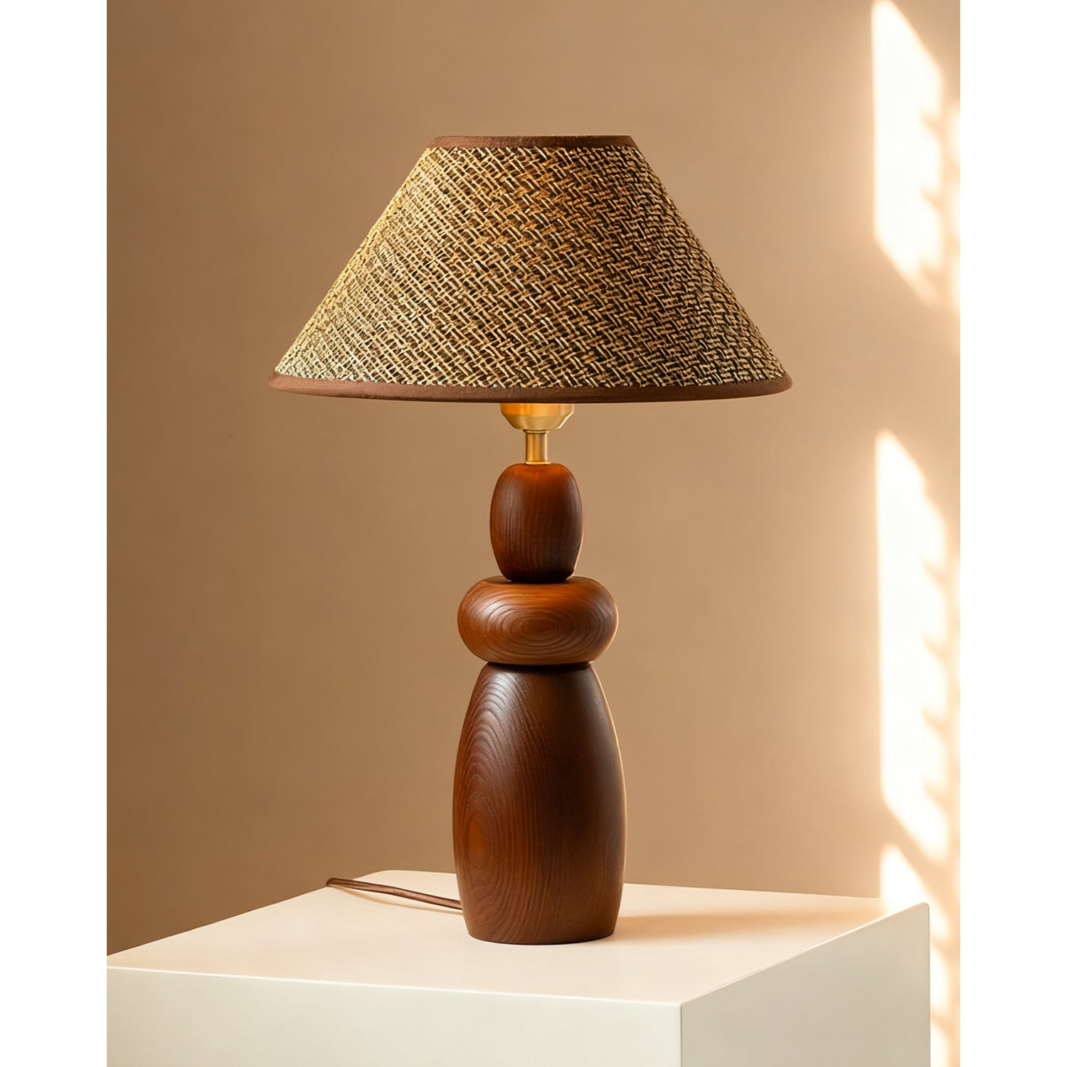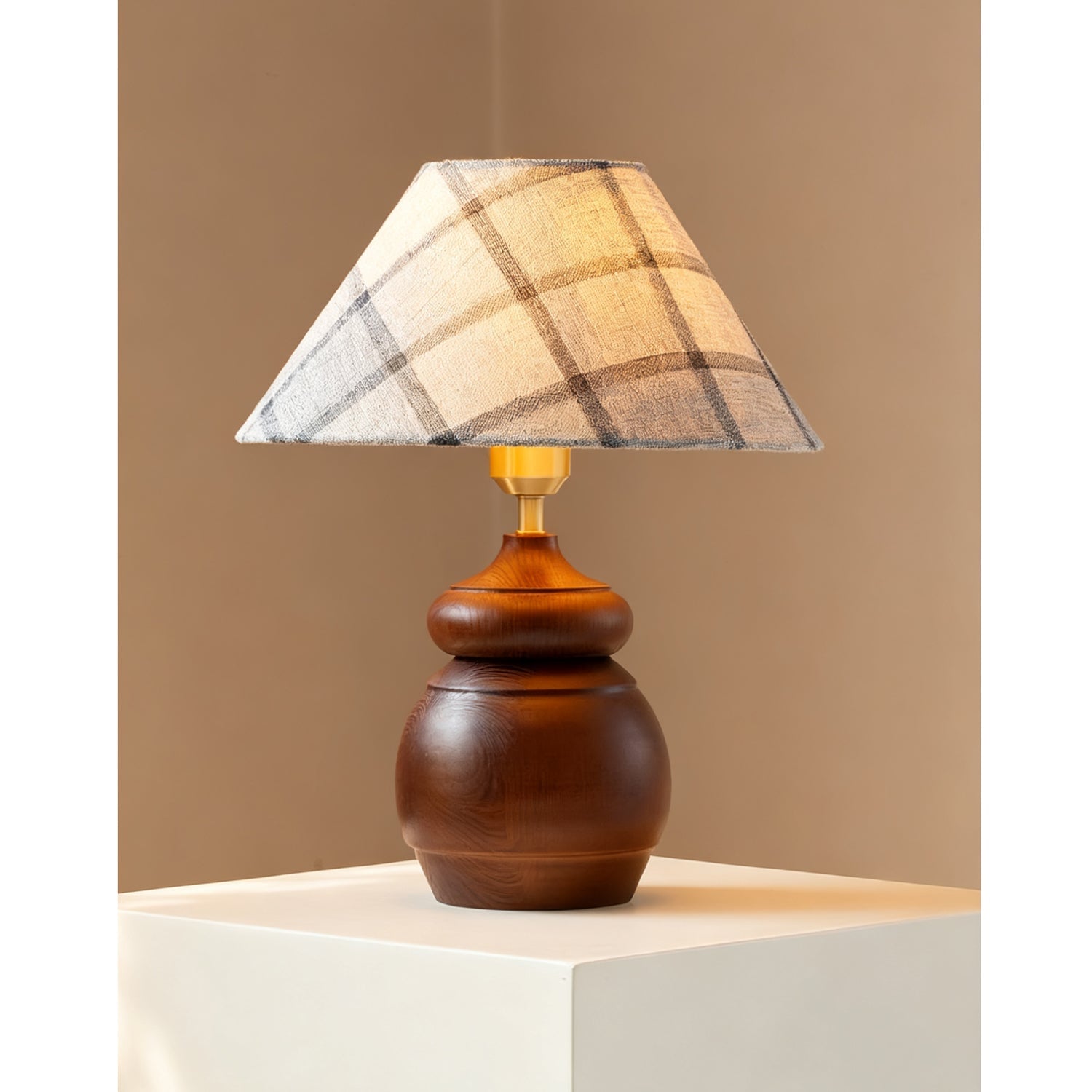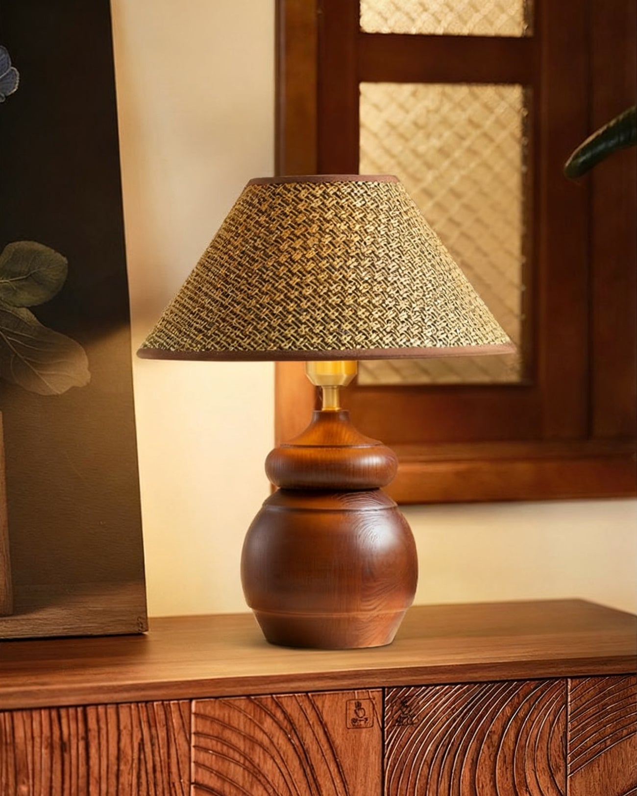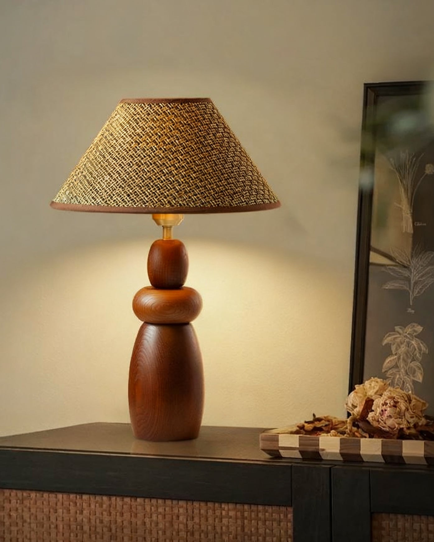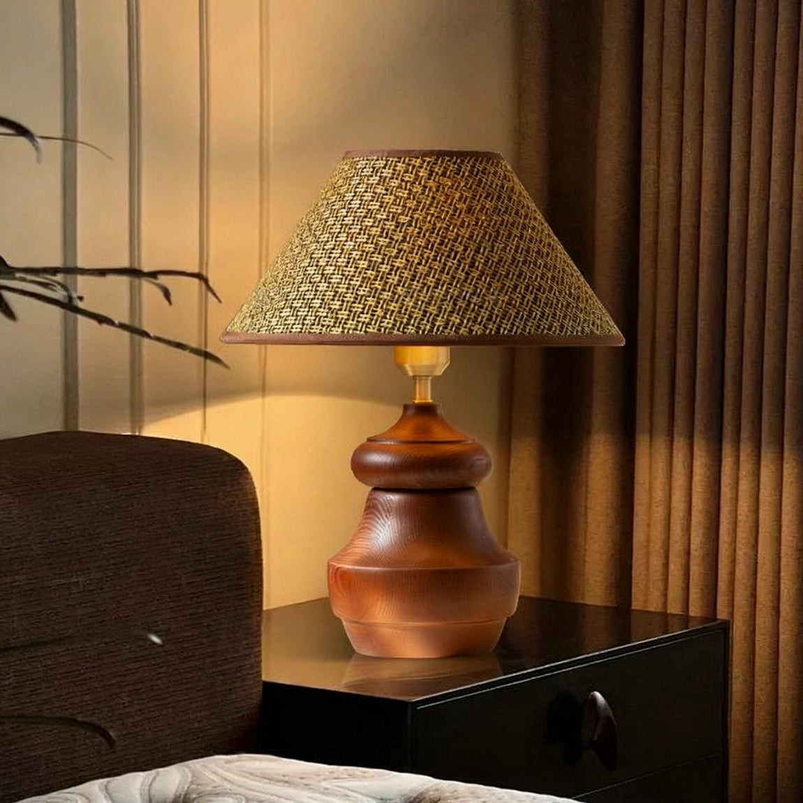 The Tatania Table Lamp from Mooijane blends natural elements with refined craftsmanship, offering both style and function. Its solid wooden base features a smooth, full-bodied form with rich grain patterns that add warmth and stability. Available with two distinct shades—a subtle plaid fabric for modern simplicity or a woven grass option for rustic charm—it highlights the beauty of natural textures.