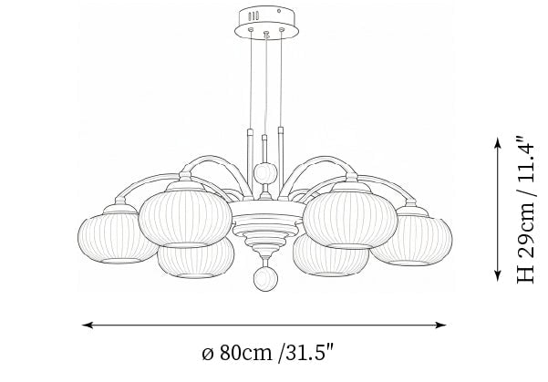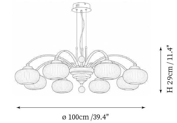 - 8-Lights Size: Dia 100cm x H 29cm / ∅ 39.4″ x H 11.4″