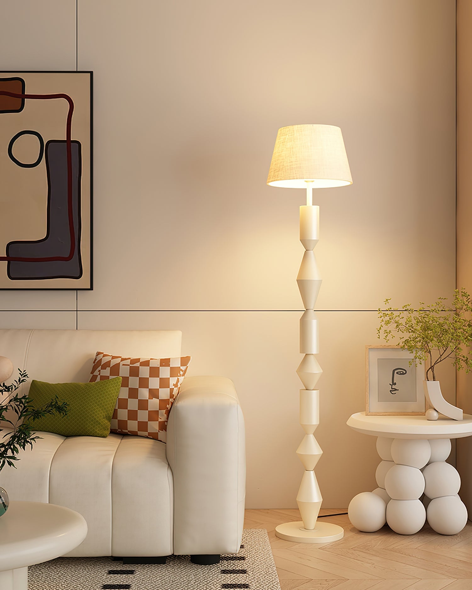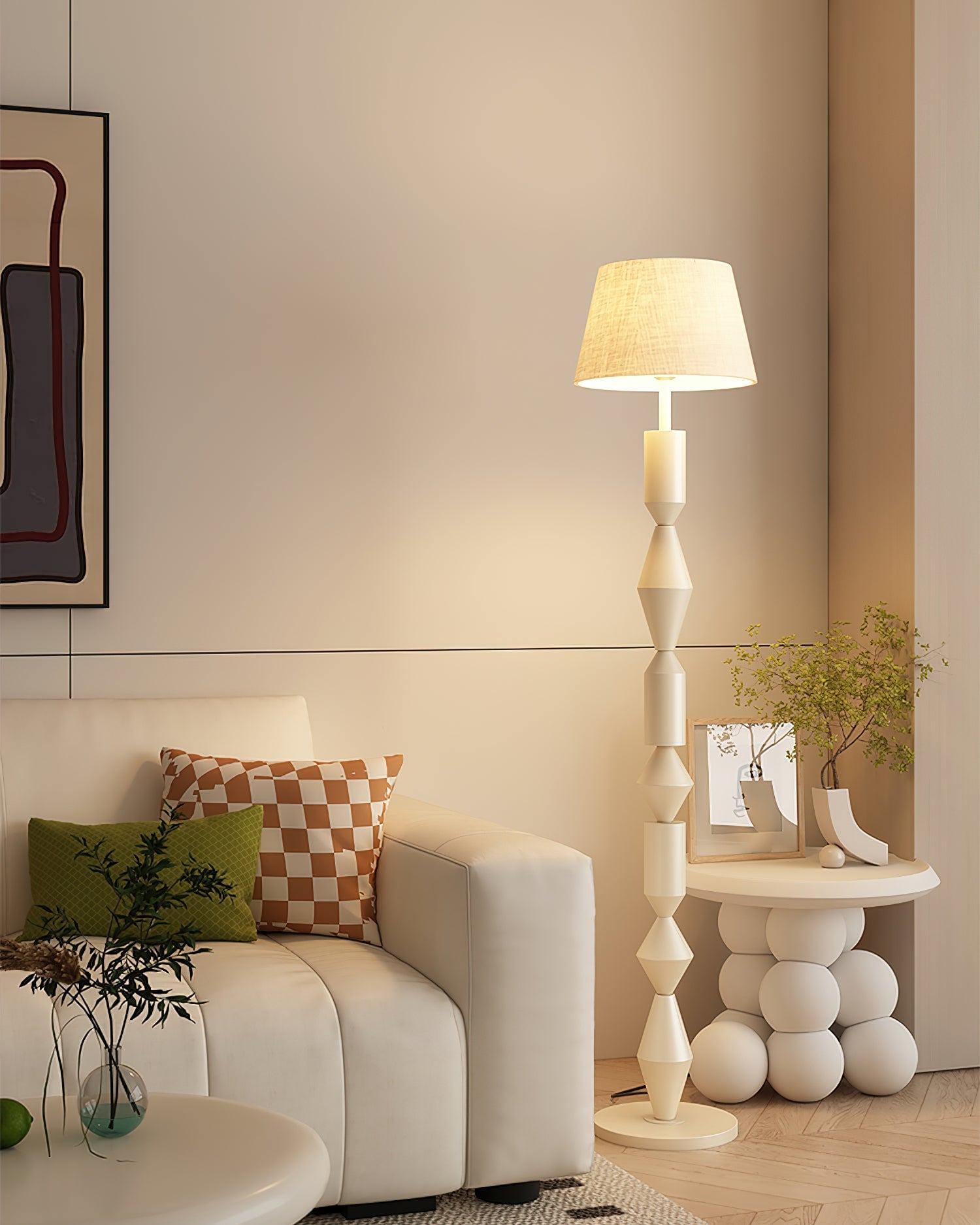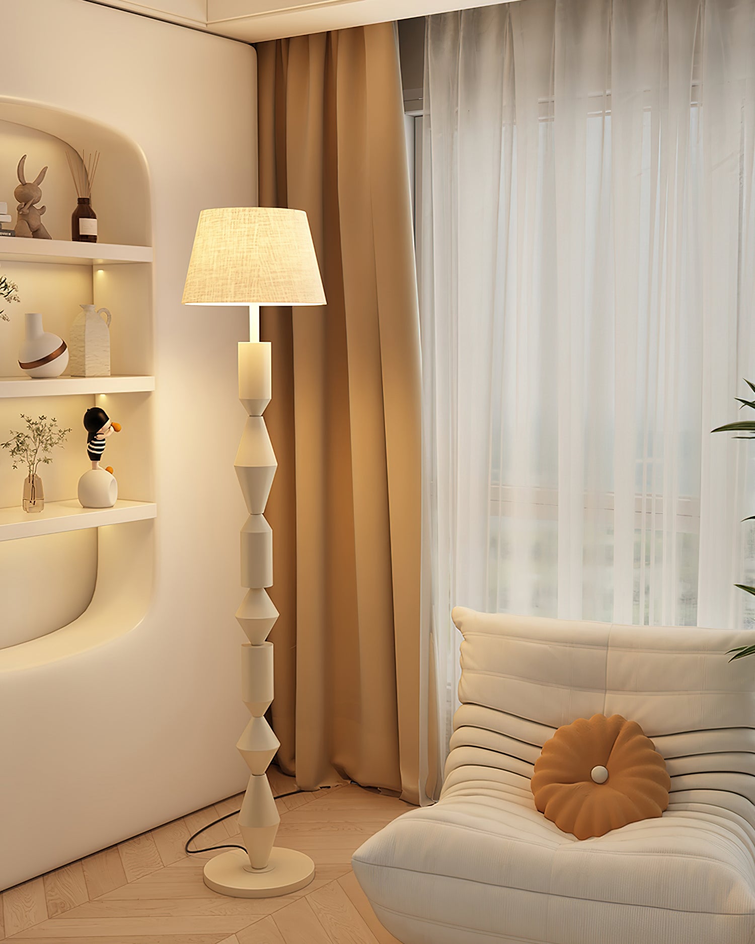 The Tavira Floor Lamp by Mooijane stands out with its sculptural silhouette and bold geometric rhythm. Made from durable metal and paired with a tactile fabric shade, it brings structure and softness to any space. Available in different colors, each version has its own personality, making it ideal for the living room, bedroom or reading corner. It's a stunning combination of artistic shape and warm atmosphere.