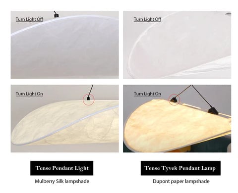 The Tense Tyvek Pendant Lamp is made from sturdy yet flexible DuPont paper. To protect it during shipping, the shade may be folded, so some pieces can arrive with light creases. This is normal and temporary—the creases will gradually fade after installation as the material relaxes and smooths out under use and light.