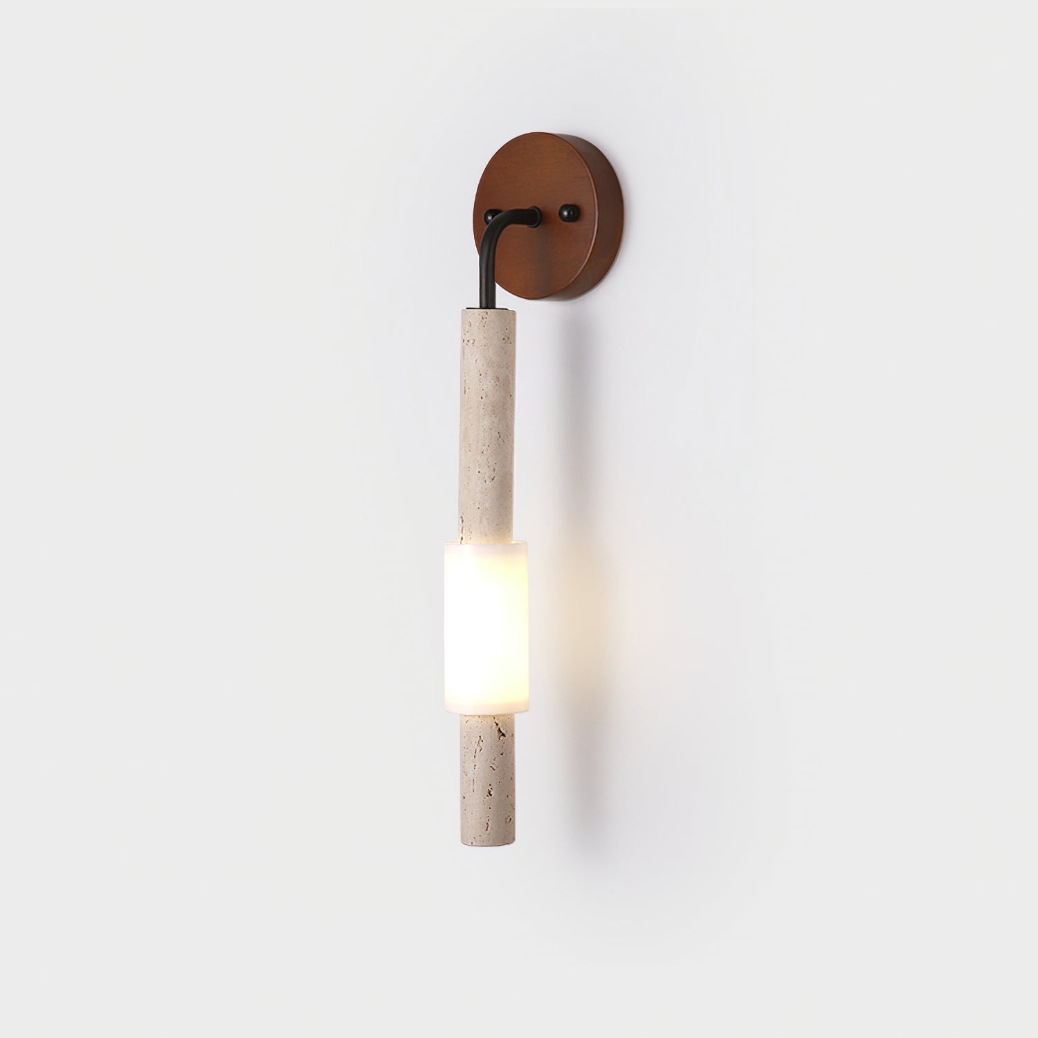 The Tersus Wall Light by Mooijane features a slim, sculptural form that pairs warm yellow travertine with rich wood. A vertical travertine rod is suspended from a rounded wooden backplate, with a softly illuminated center that evokes a modern lantern effect. Clean and minimal in profile, the natural stone texture adds depth and warmth. Ideal for hallways, bedside walls, or living room corners, this wall light provides gentle ambient illumination without overwhelming the space.