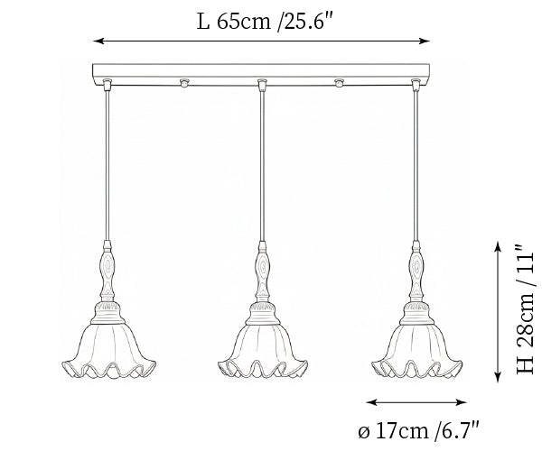 - 3-Lights Size: L 65cm x H 28cm / L 25.6″ x H 11″