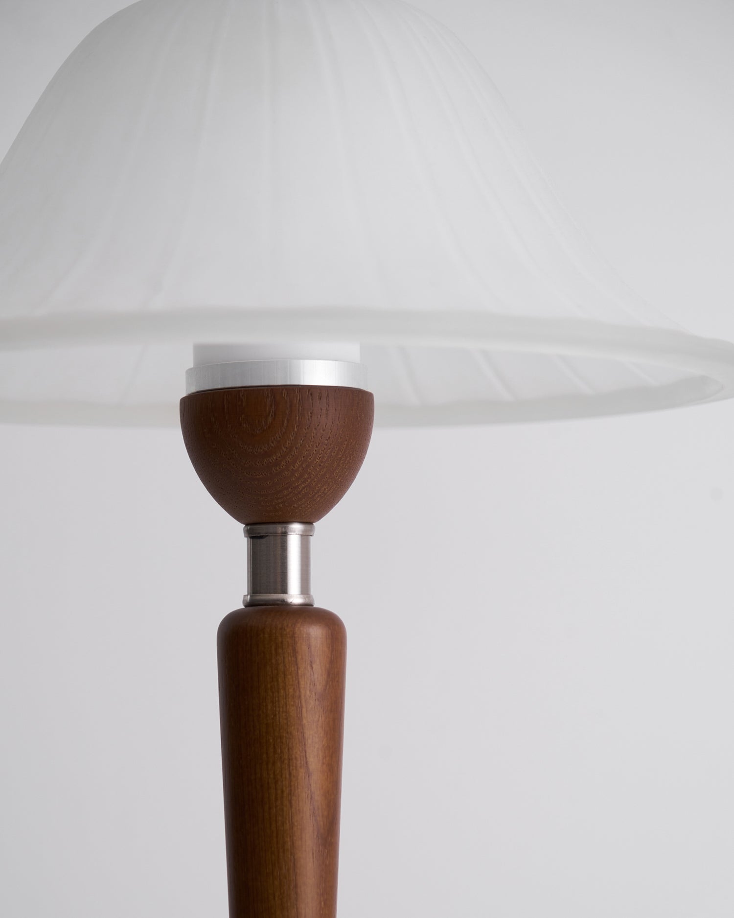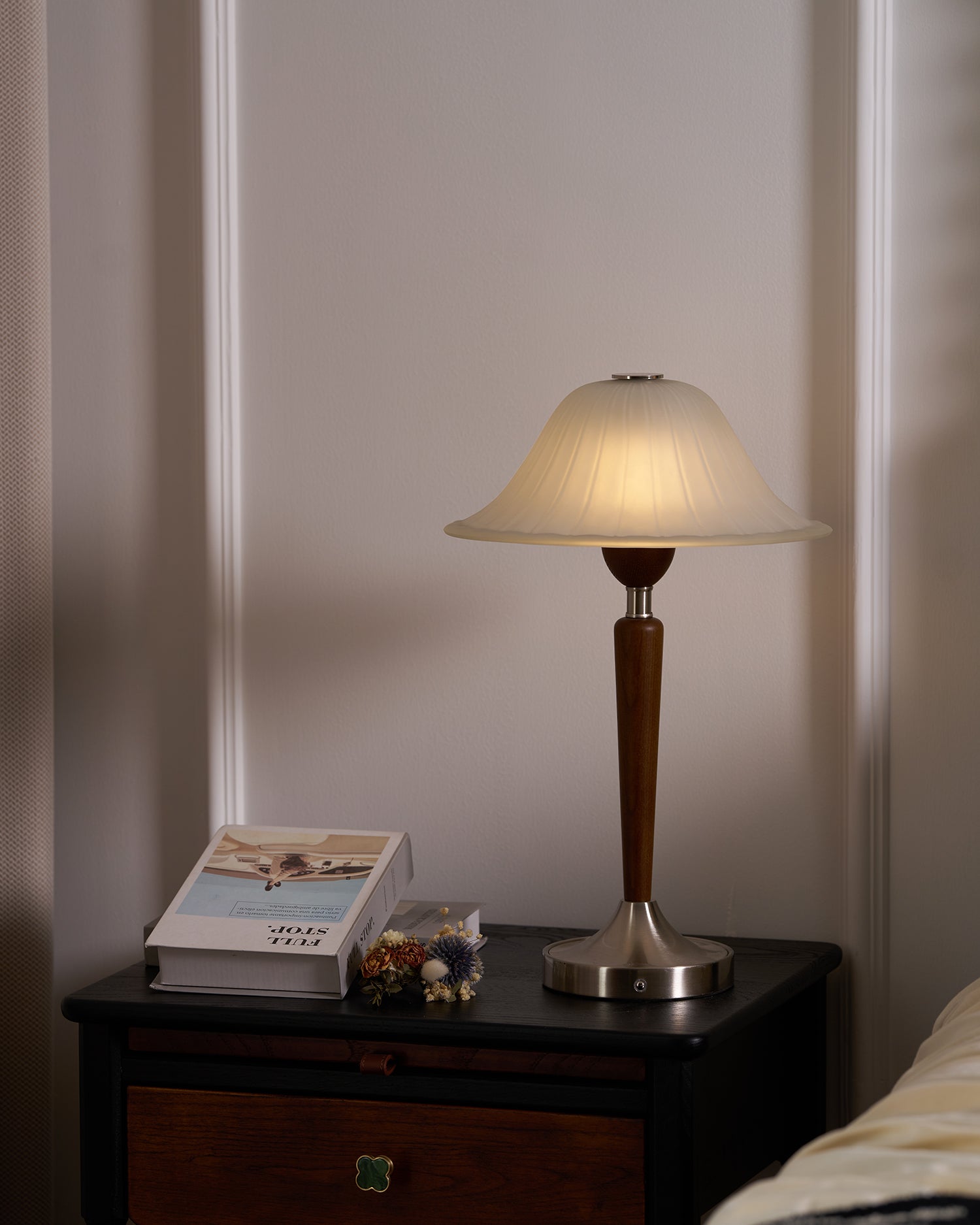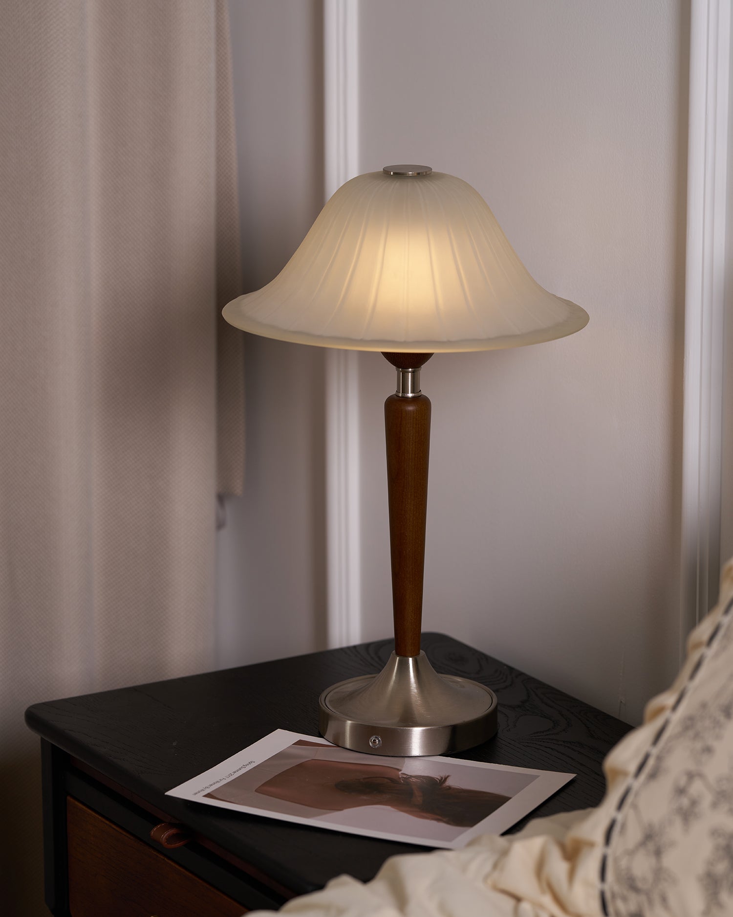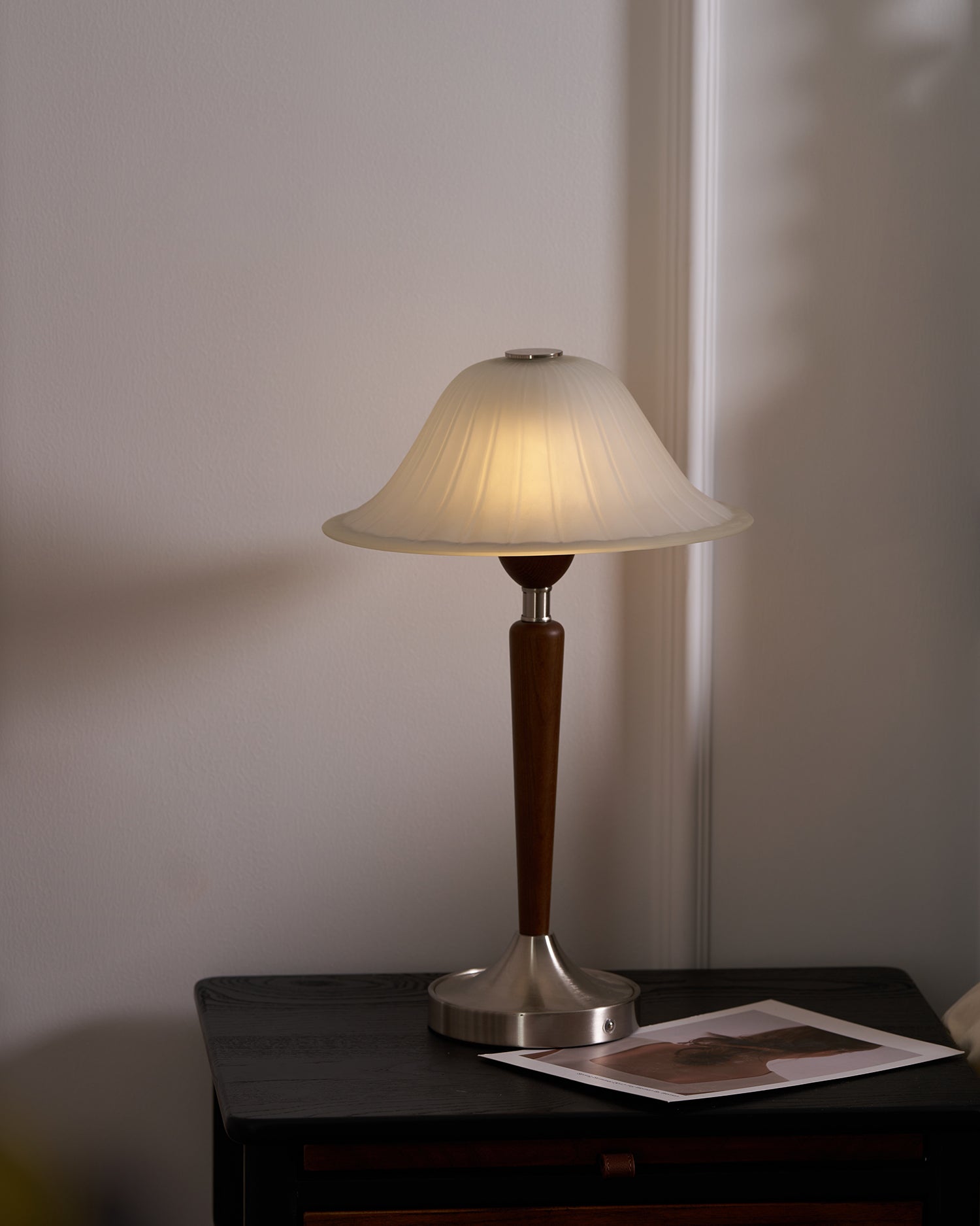The Tibby Table Lamp from Mooijane combines timeless craftsmanship with modern elegance. Its fluted frosted glass shade creates a warm, inviting glow, while the tapered wooden stem and brushed metal base add mid-century charm. Ideal for bedside tables, reading nooks, or office desks, it’s a perfect blend of function and style.