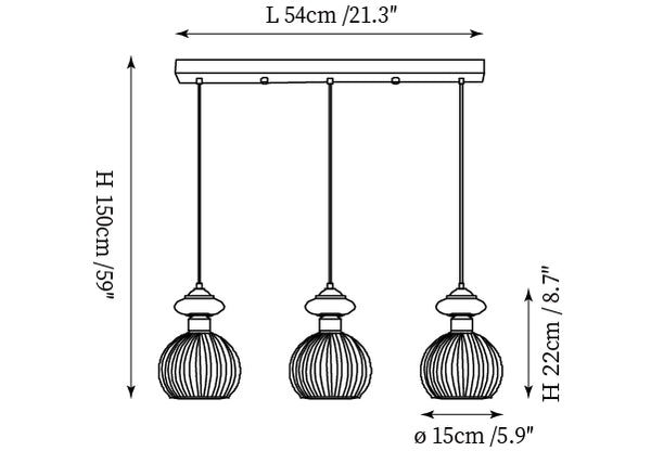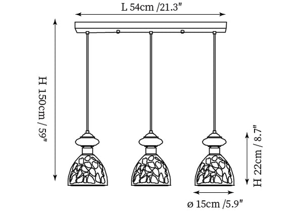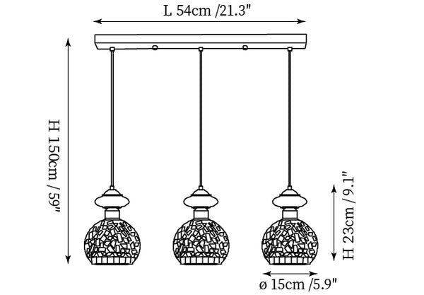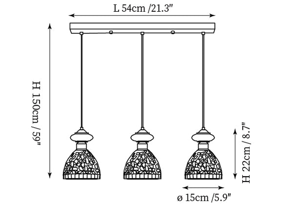 - 3-Lights Model A Size: L 54cm x H 150cm / L 21.3″ x H 59"