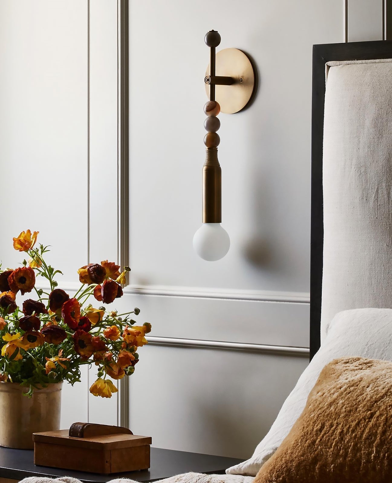 Experience ancient elegance with the Toam Wall Lamp. Handcrafted with marble stone and finished with a brass pin, this lamp beautifully blends classical beauty with modern design. The brass structure adds a touch of sophistication, making it a statement piece in any space. Illuminate your room with timeless charm.